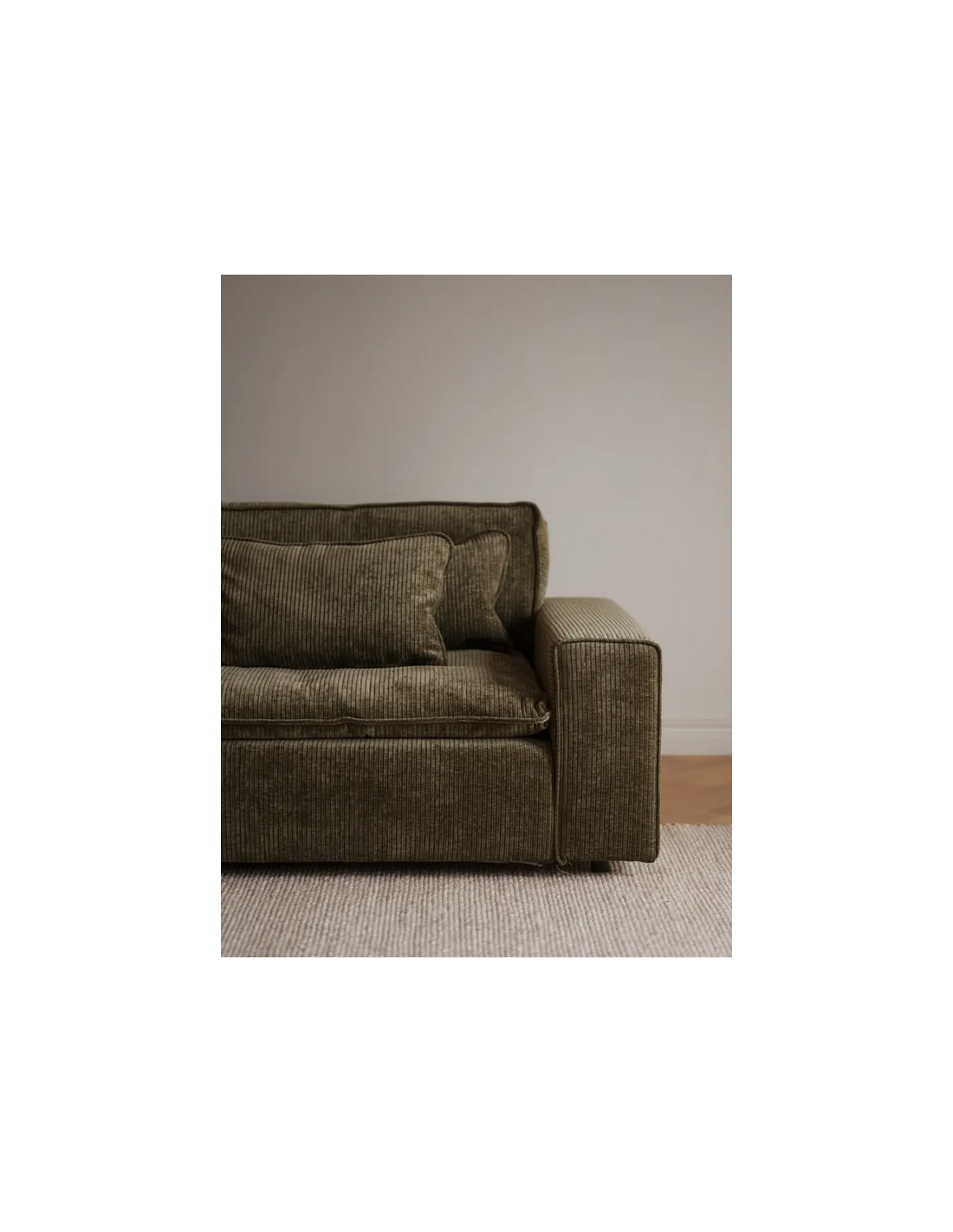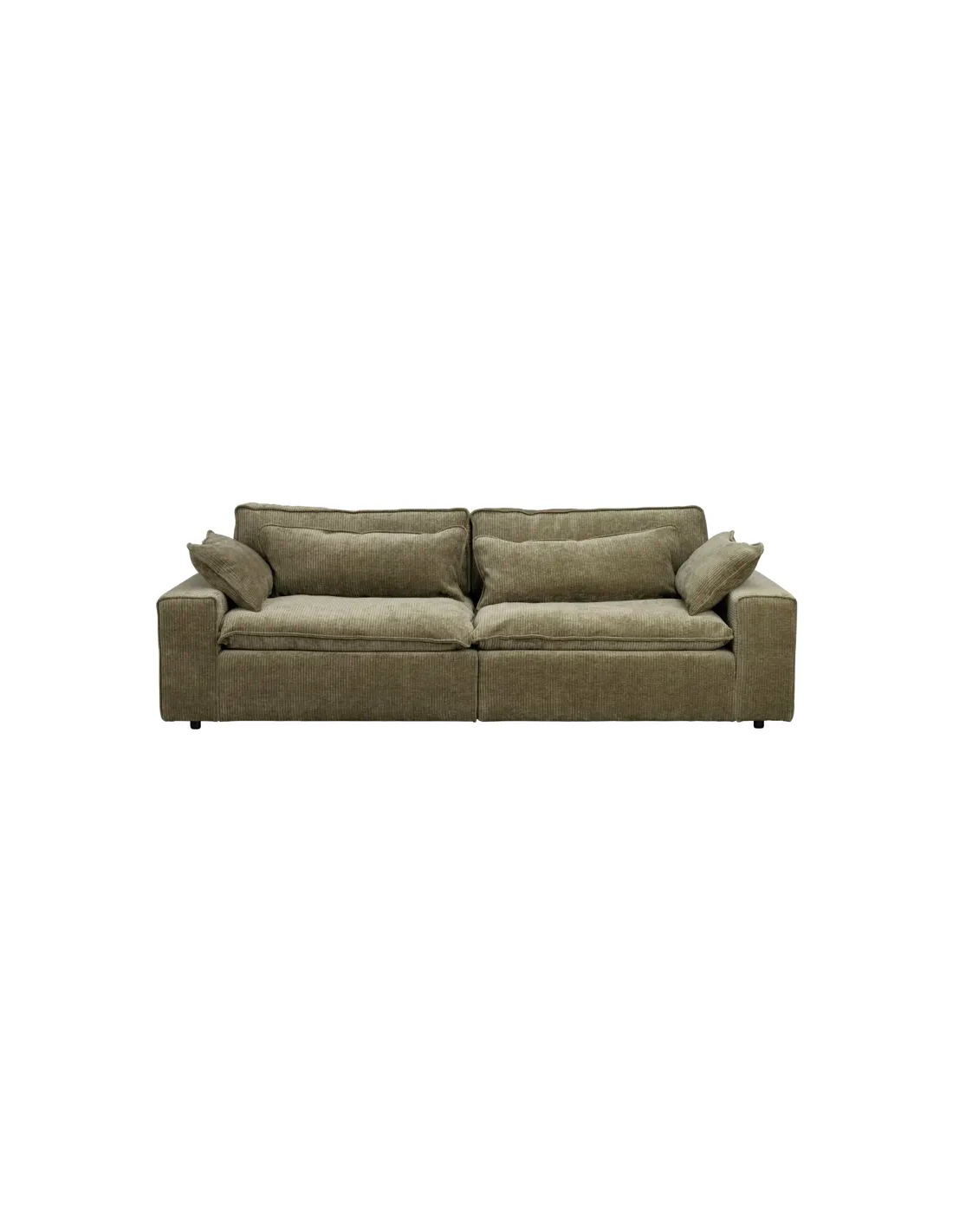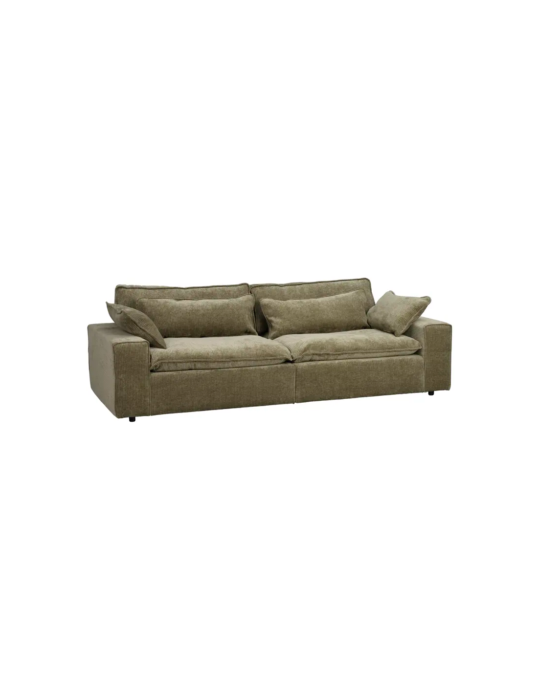 Rowico Rawlins 3-personers sofa udført i et moderne design fra Svenske Rowico Home, fremstillet med ben i sort kunststof og sæde i grønt rillet polyester. Sofaen måler 85 cm i højden over ryggen og med siddehøjde på 45 cm. Sofaens bredde og dybde er 259 x 116 cm.