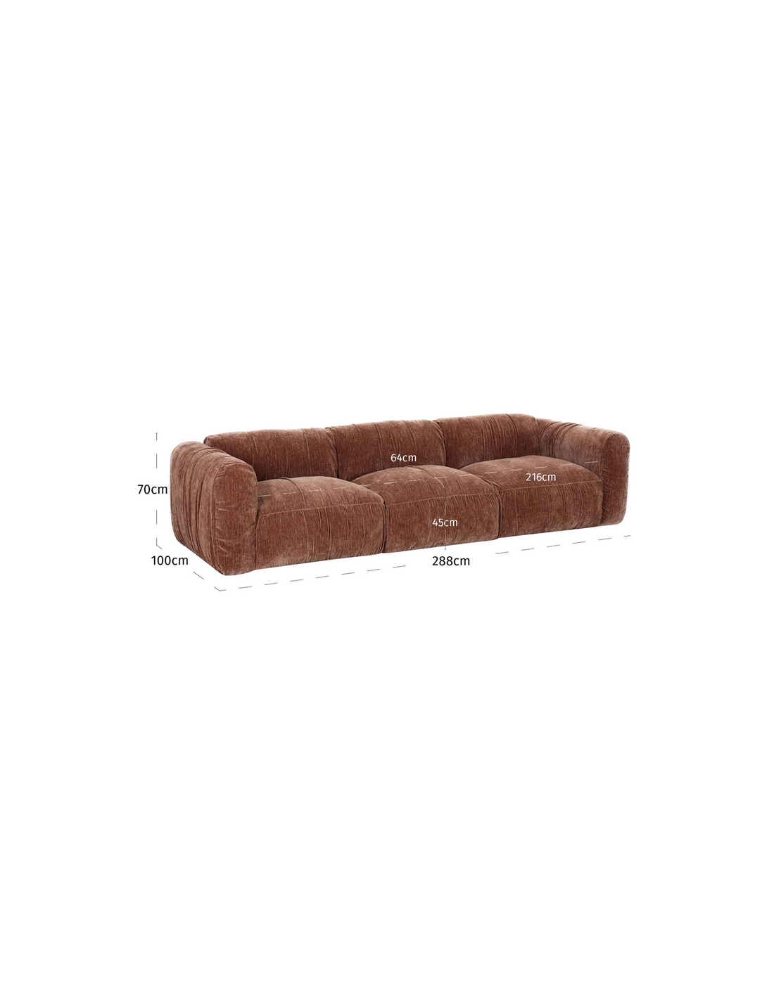MONTY 4-personers sofa i polyester 288 x 100 cm - Kaffebrun