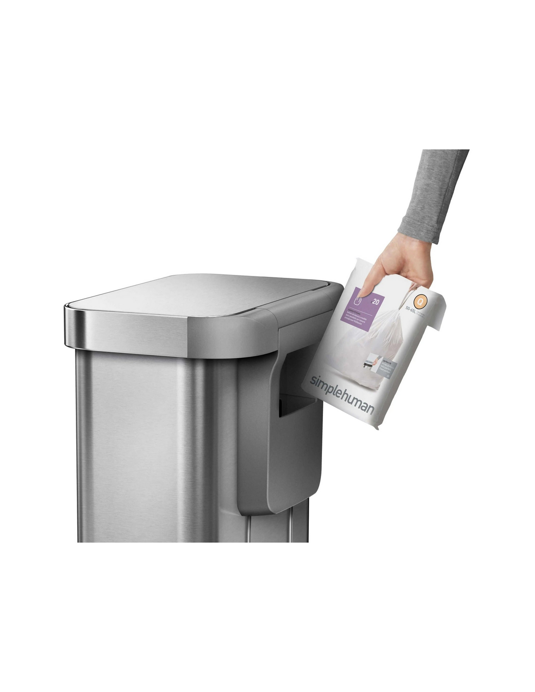 • Med den indbyggede affaldsposedispenser/holder kan du nemt opbevare og dispensere affaldsposer direkte fra spanden
