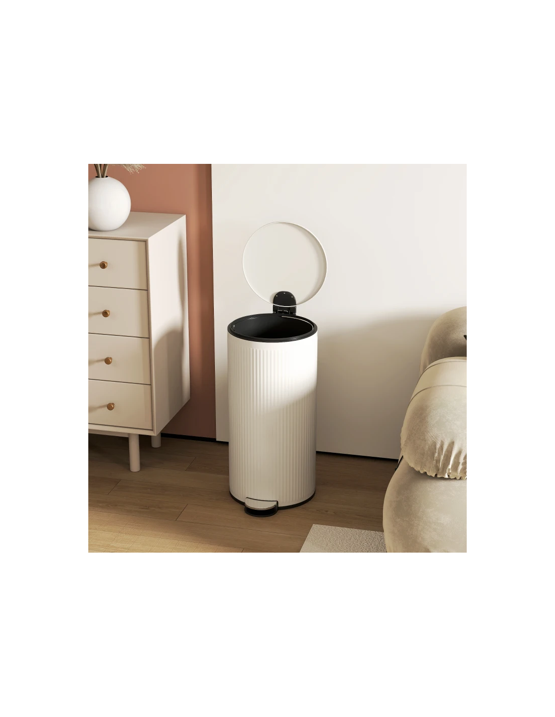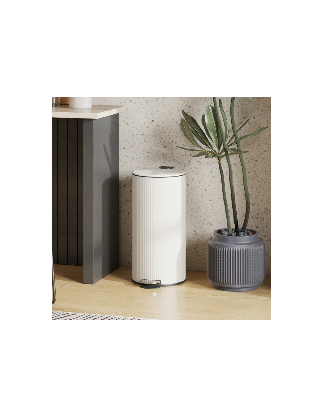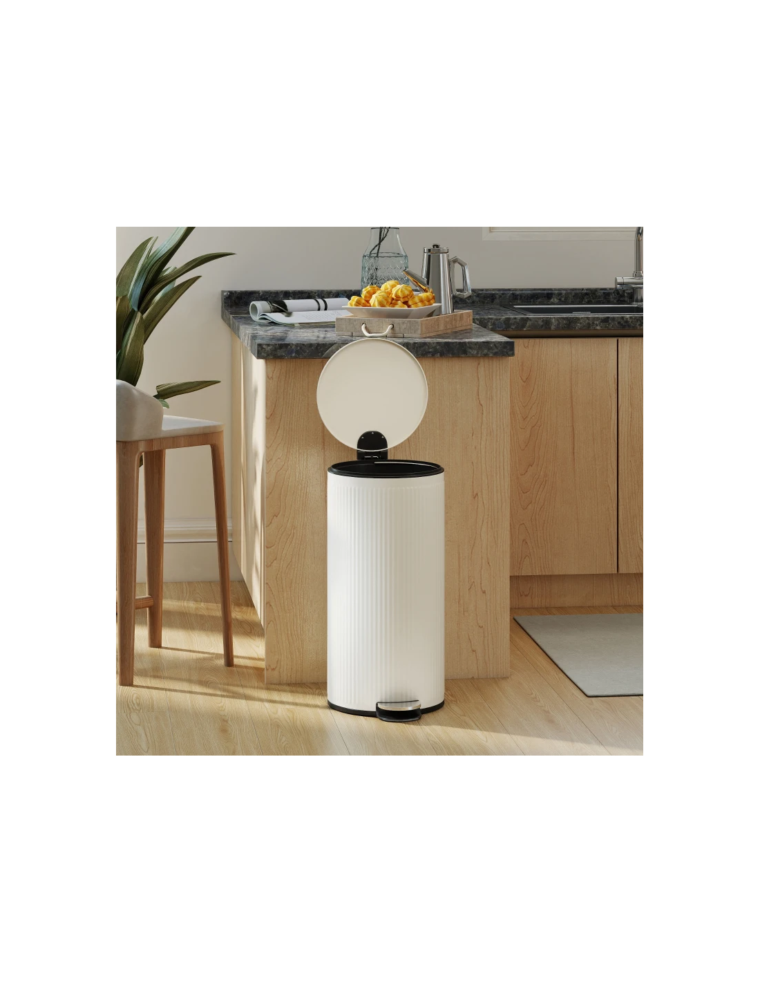 Affaldsspand udført i et stilrent design af cremehvid metal og kunststof med fodpedal og soft-close. Affaldsspanden rummer 30 liter og måler 60,5 cm i højden og 30 x 36 cm i bredde og dybde.