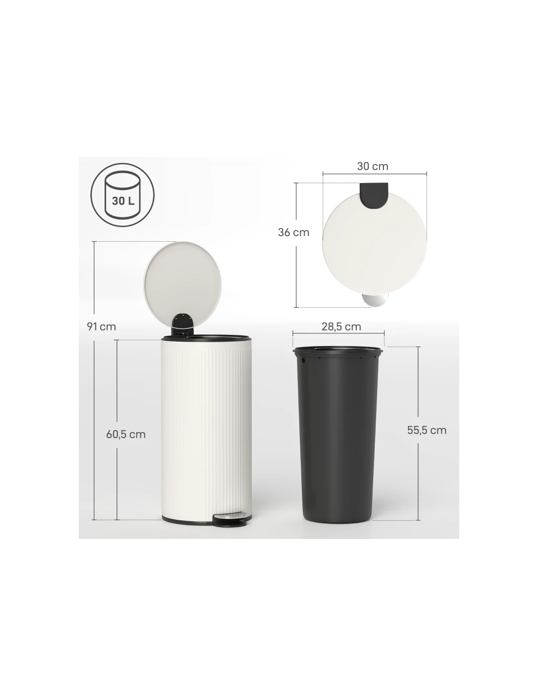 Affaldsspand i metal og kunststof 30 liter H60,5 x B30 x D36 cm - Cremehvid