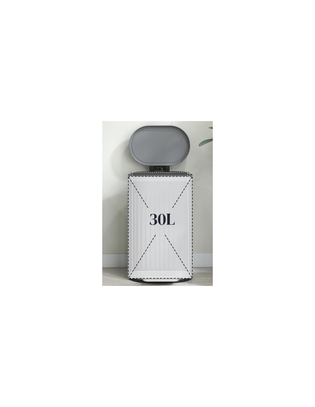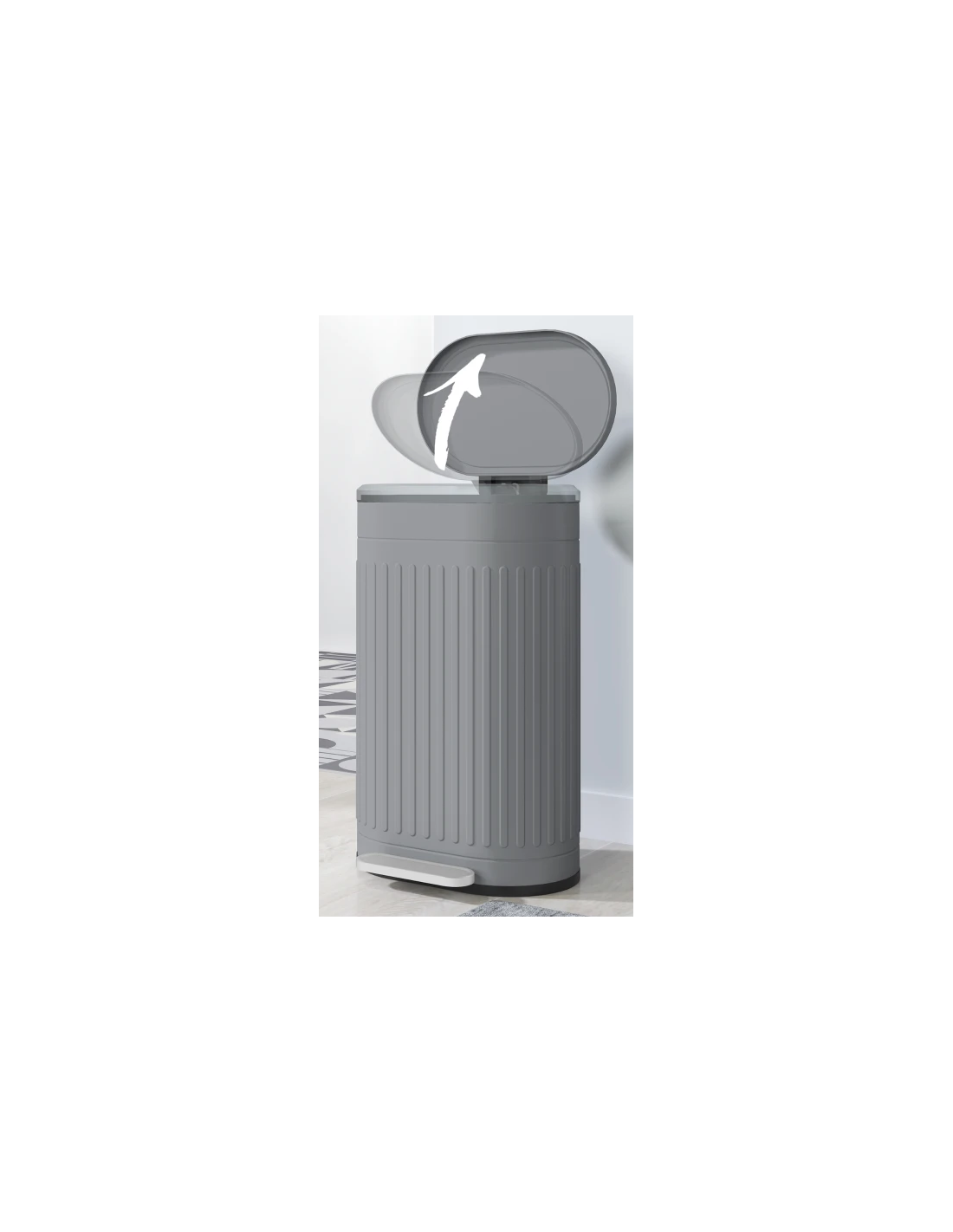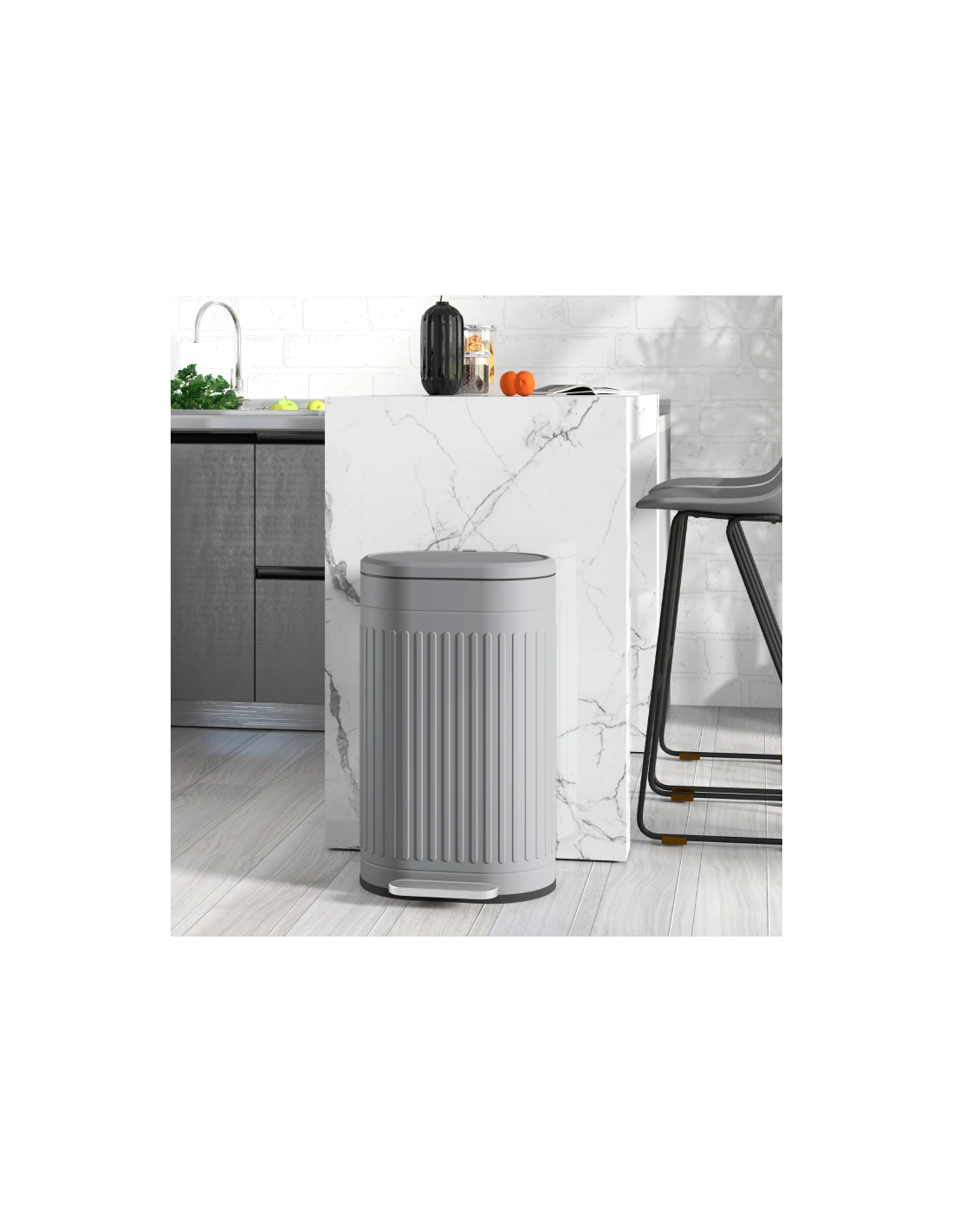 Affaldsspand udført i et stilrent design af grå metal og kunststof med fodpedal og soft-close. Affaldsspanden rummer 30 liter og måler 60,8 cm i højden og 36,5 x 31,2 cm i bredde og dybde. Den indre spand kan tages ud.