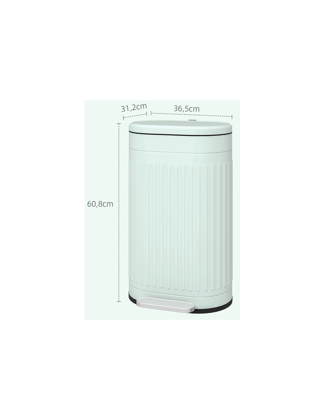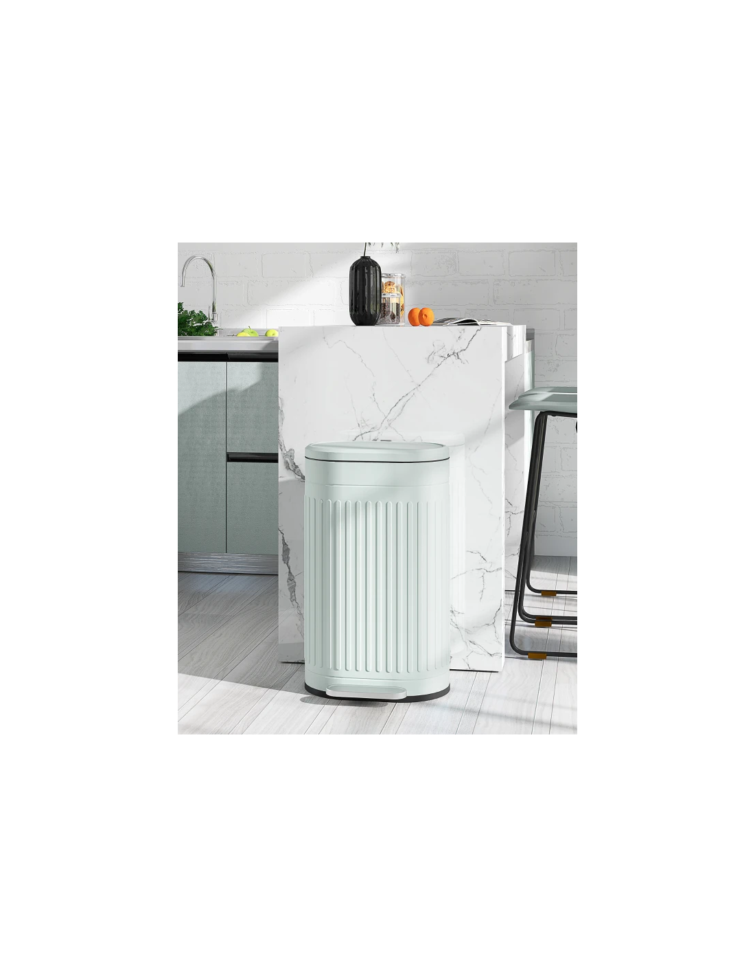 Affaldsspand udført i et stilrent design af grøn metal og kunststof med fodpedal og soft-close. Affaldsspanden rummer 30 liter og måler 60,8 cm i højden og 36,5 x 31,2 cm i bredde og dybde. Den indre spand kan tages ud.