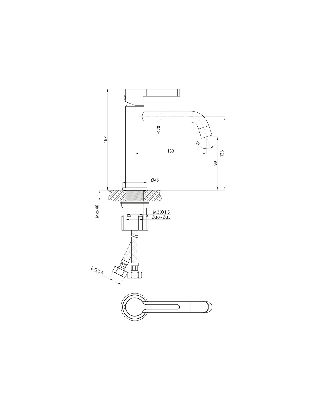 • Fleksible slanger inklusiv (3/8")