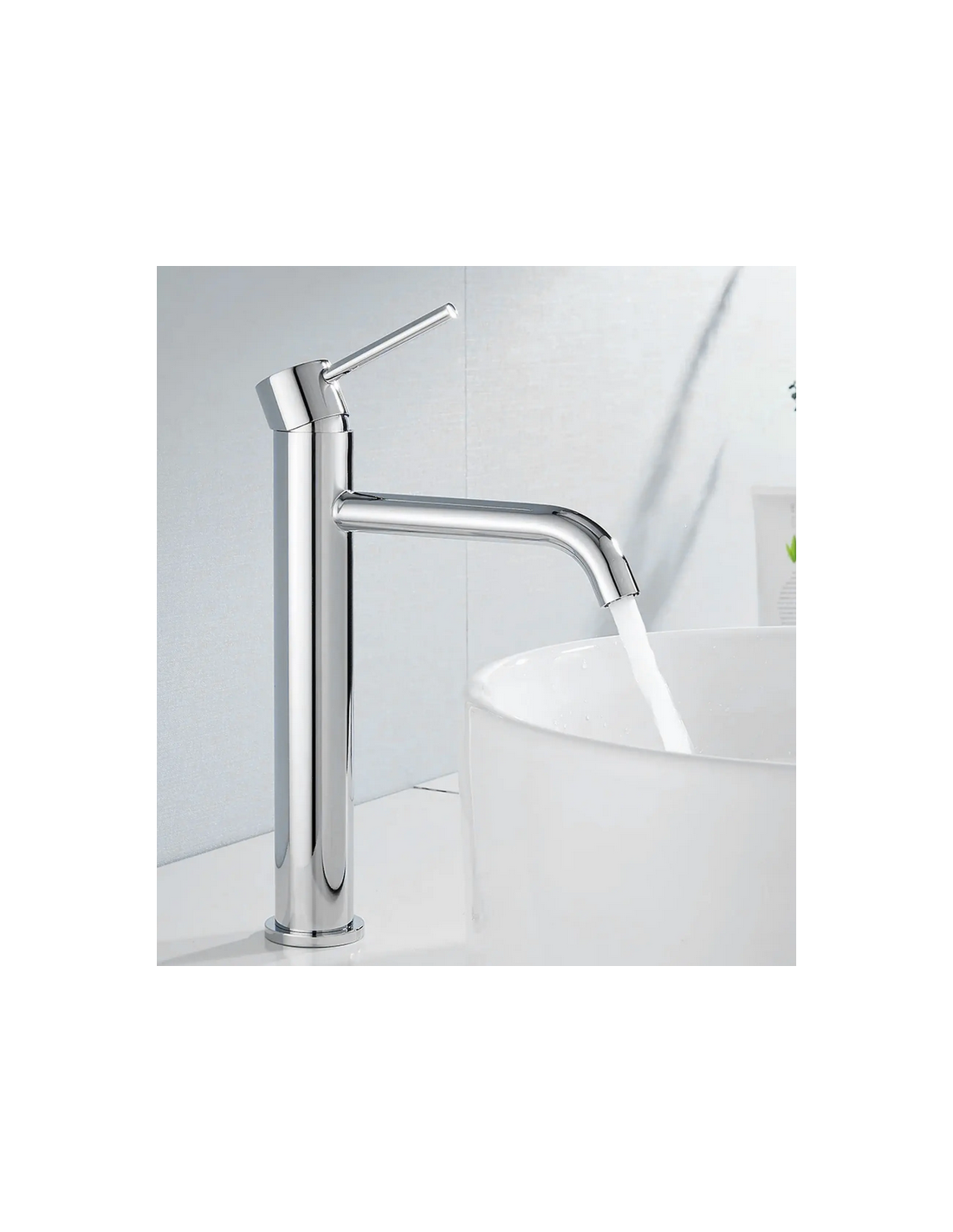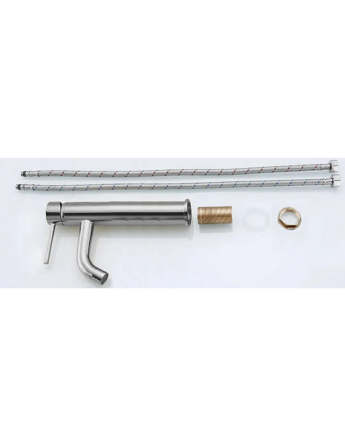 LUNGO Armatur til håndvaske, udført i et moderne design af kromlakeret messing. Armaturet måler 28 cm i højden og er med fleksible slanger (3/8“). Armaturet har drejbart termostat.