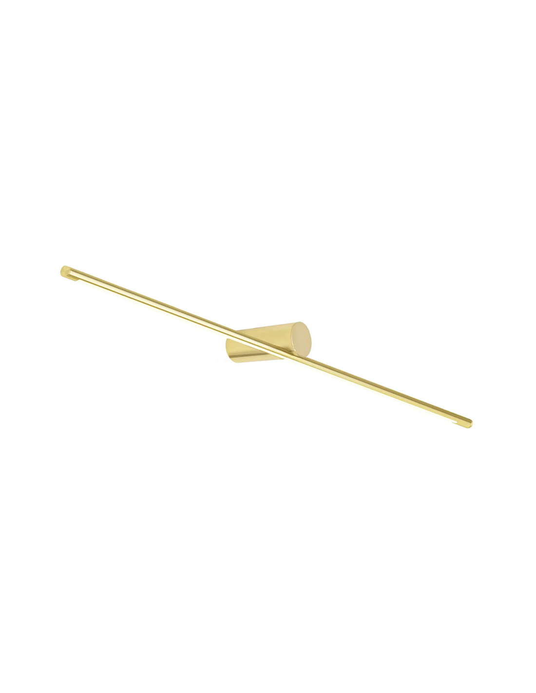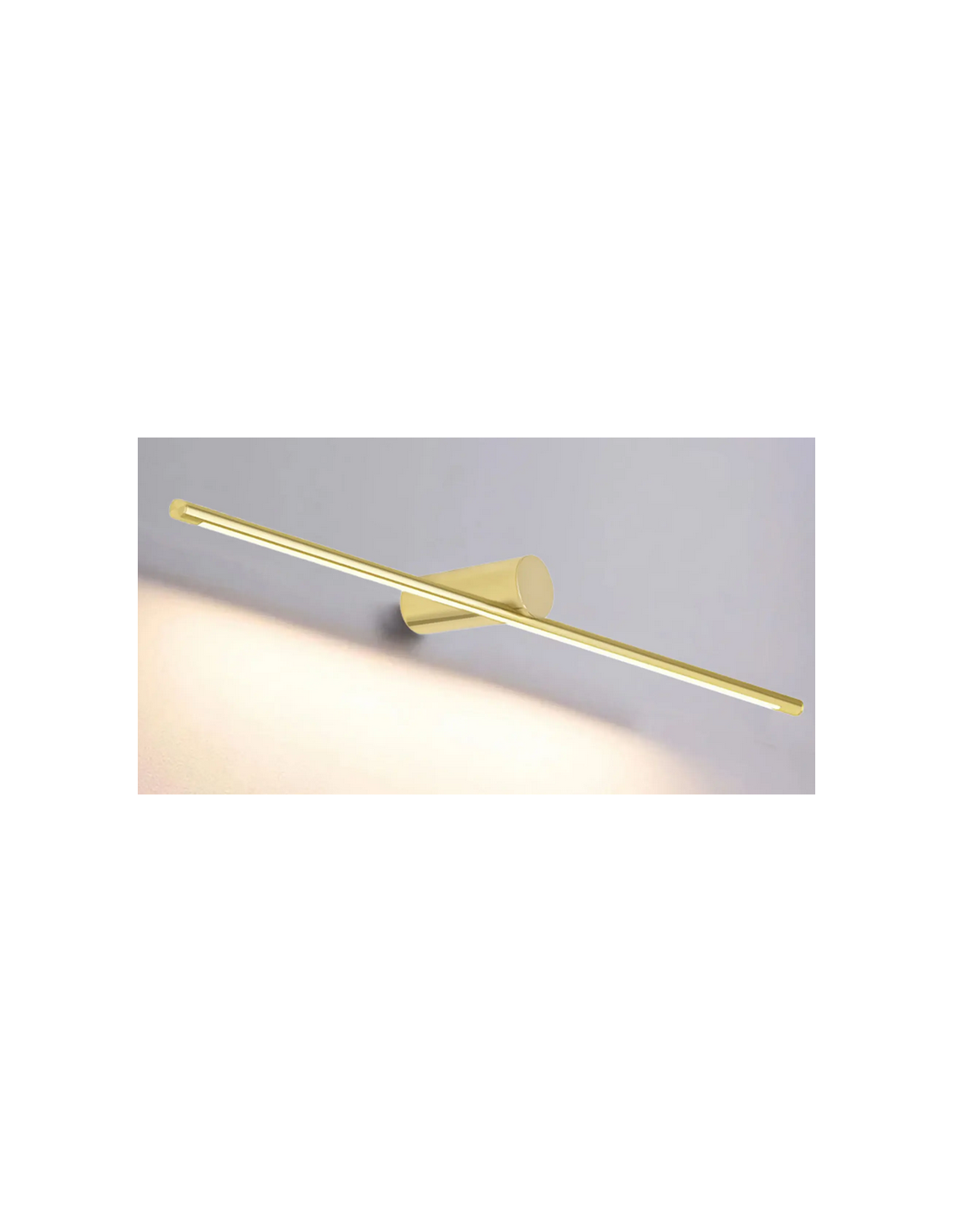 Badeværelseslampe fremstillet i et design af guldfarvet lakeret aluminium og klart kunststof. Lampen måler 5,5 cm i højden og 81,5 x 13 cm i bredde og dybde/fremspring og anvender 16W LED indbygget lyskilde (Inkl.). Denne lampe er med farvetemperatur på 4000K kold hvid.