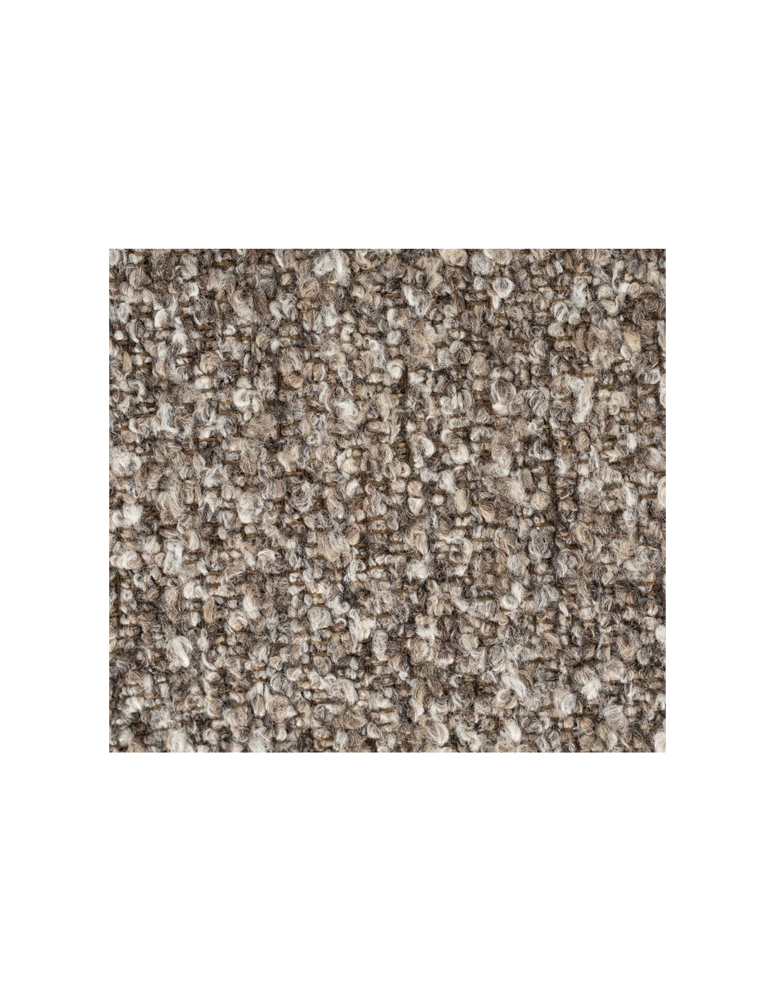 GEORGE Bænk udført i et moderne design, fremstillet af egetræsfinér og taupefarvet bouclé polyester. Bænken måler 47 cm i højden og 133 x 50 cm i bredde og dybde.