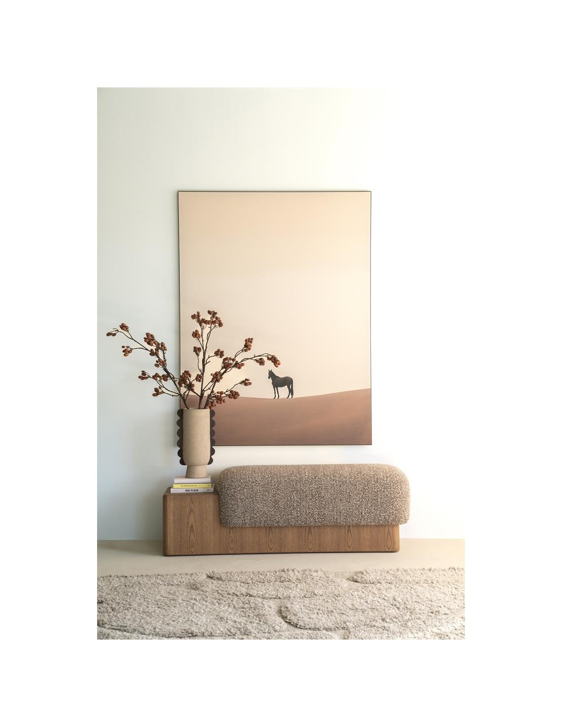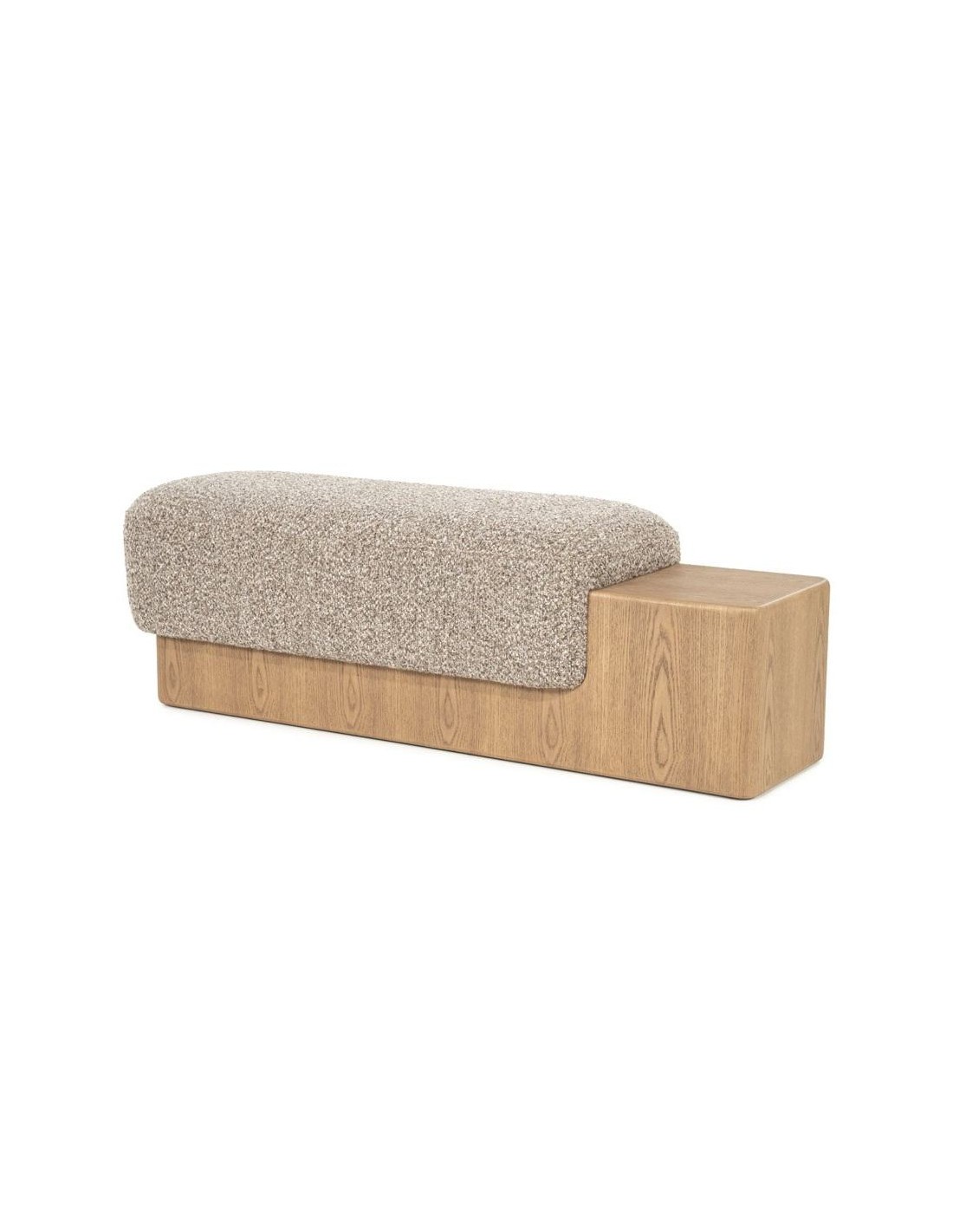 GEORGE Bænk i egetræsfinér og bouclé polyester 133 x 50 cm - Eg/Taupe