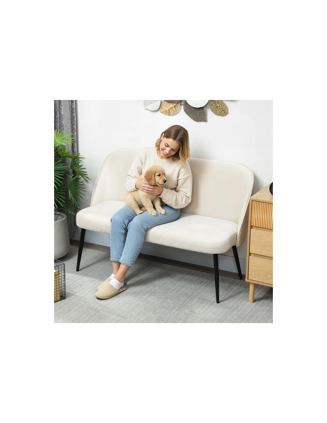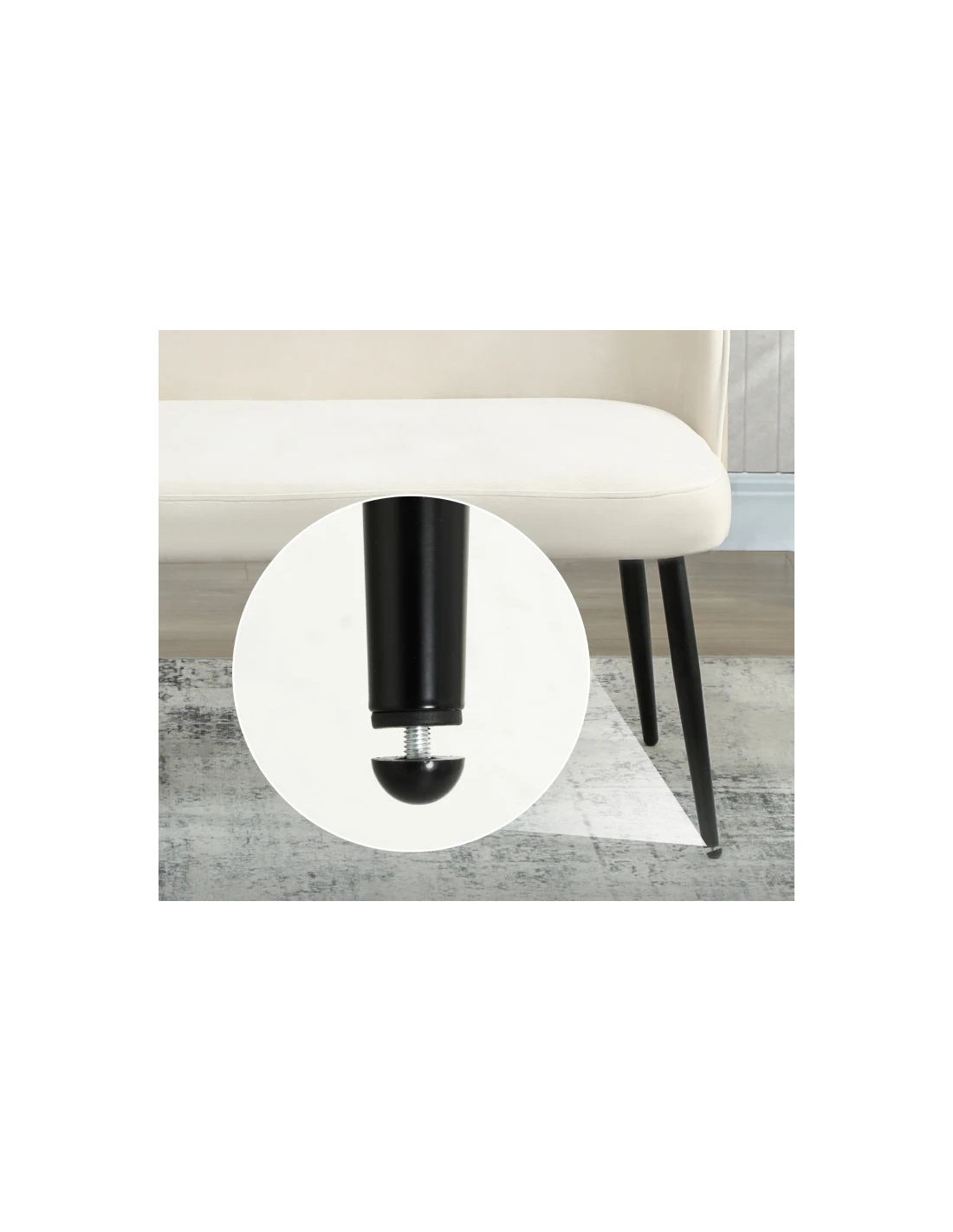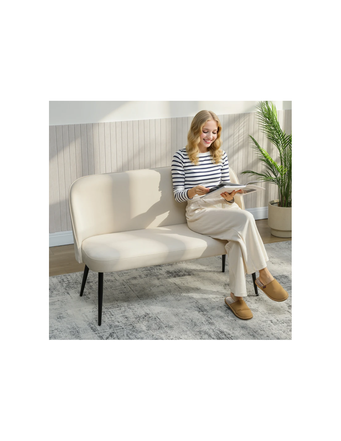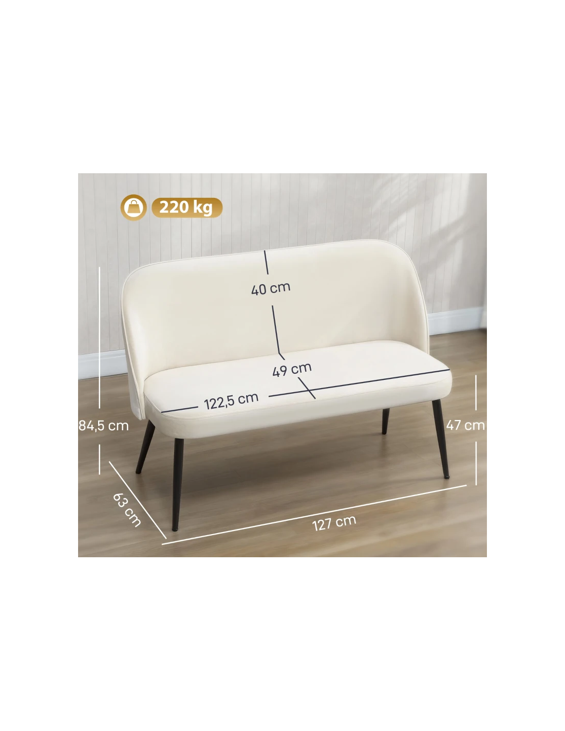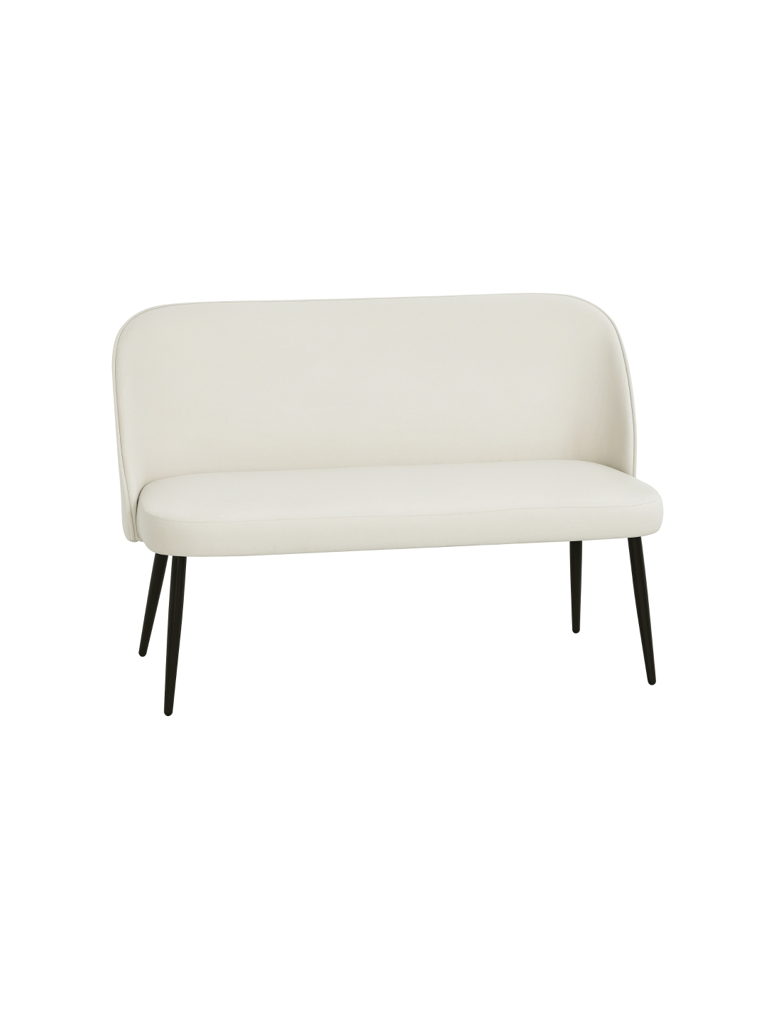 Bænk udført i et stilrent design fremstillet af sortlakeret metal og beige velour. Bænken måler 84,5 cm i højden over ryggen og 127 x 63 cm i bredde og dybde.