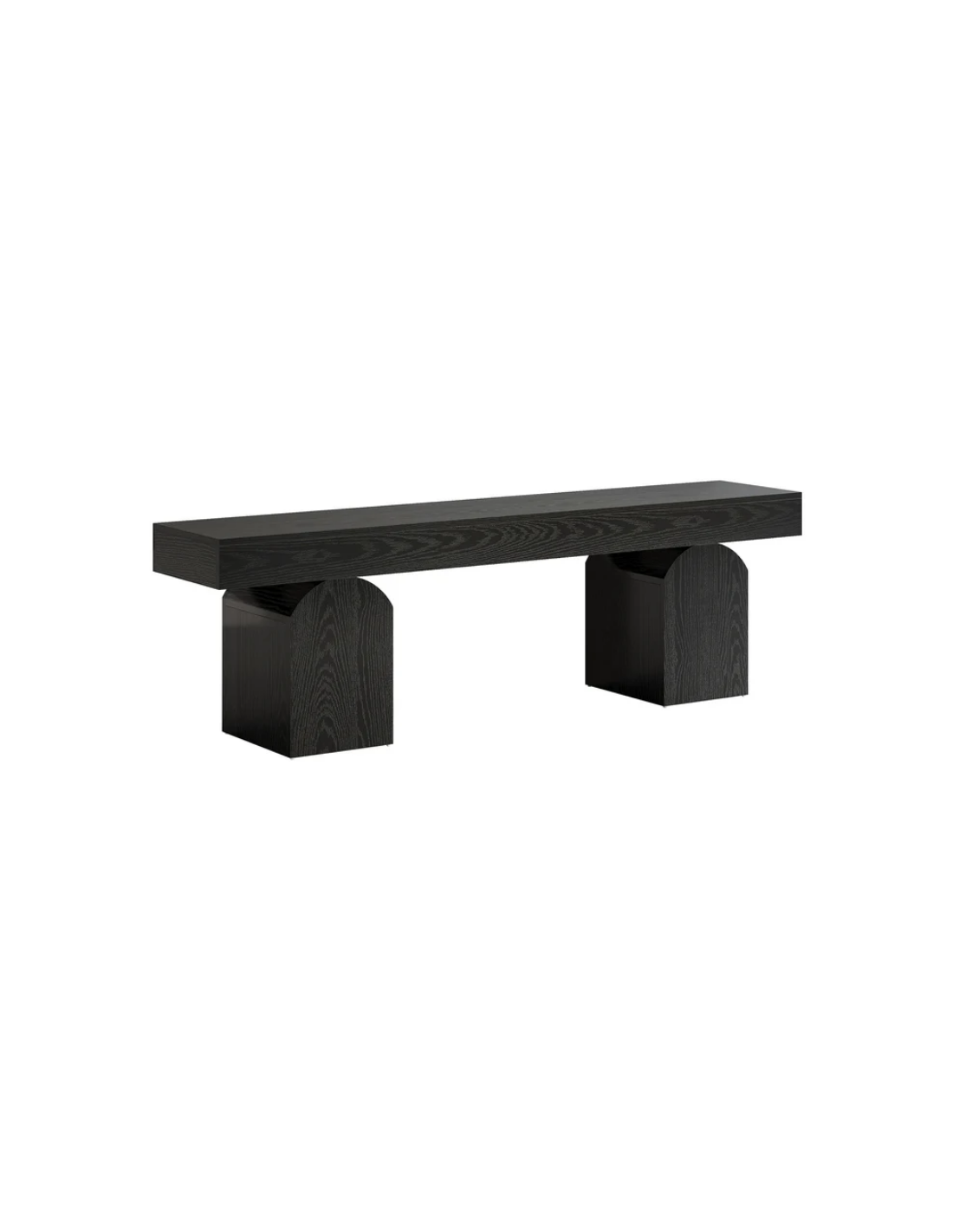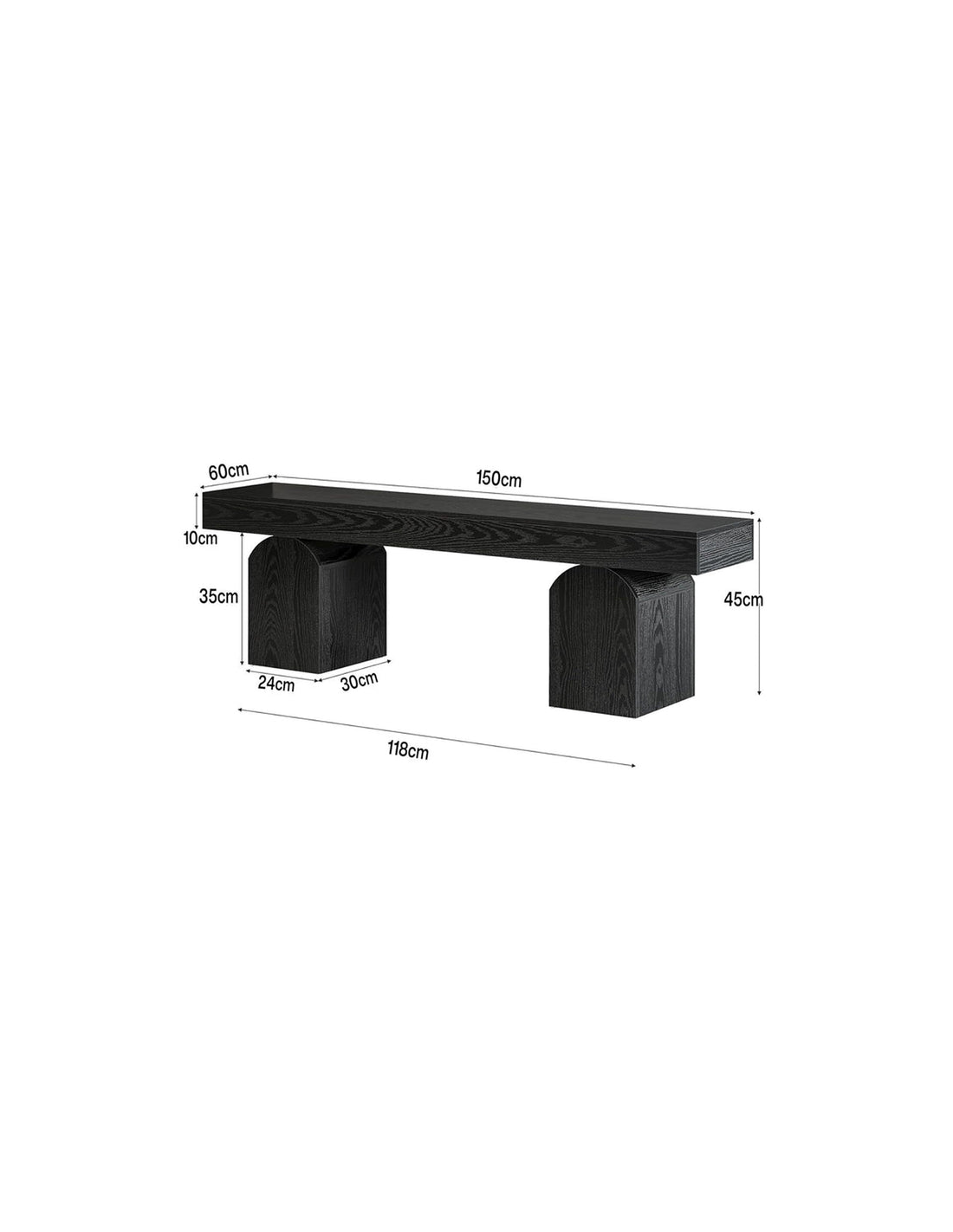 Spisebænk udført i et stilrent design fremstillet af MDF i sort træstruktur. Bænken måler 45 cm i højden og 150 x 30 cm i bredde og dybde.