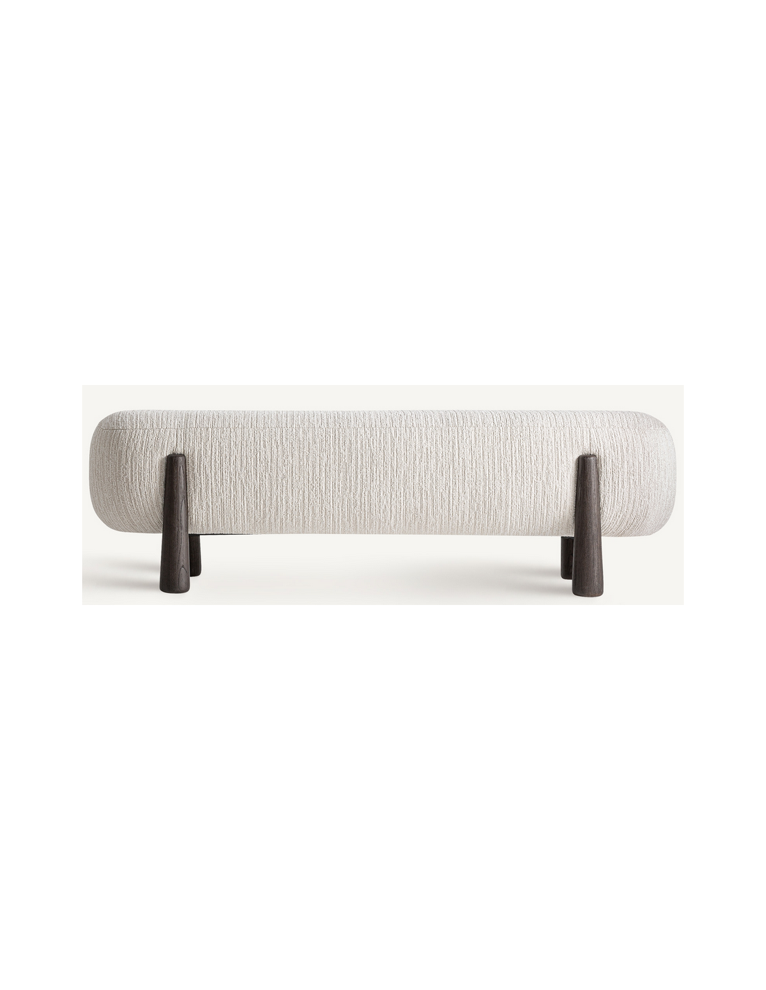 Bænk i fyrretræ og chenille polyester 153 x 44 cm - Mørkebrun/Gråhvid