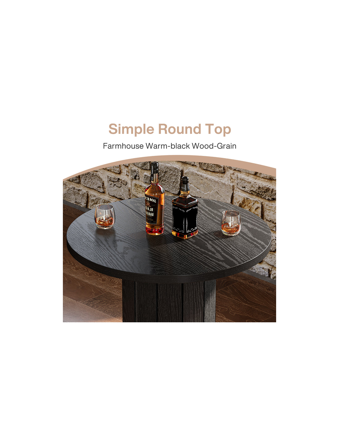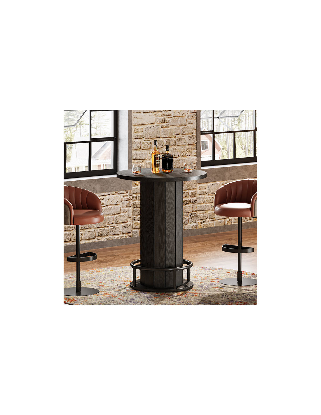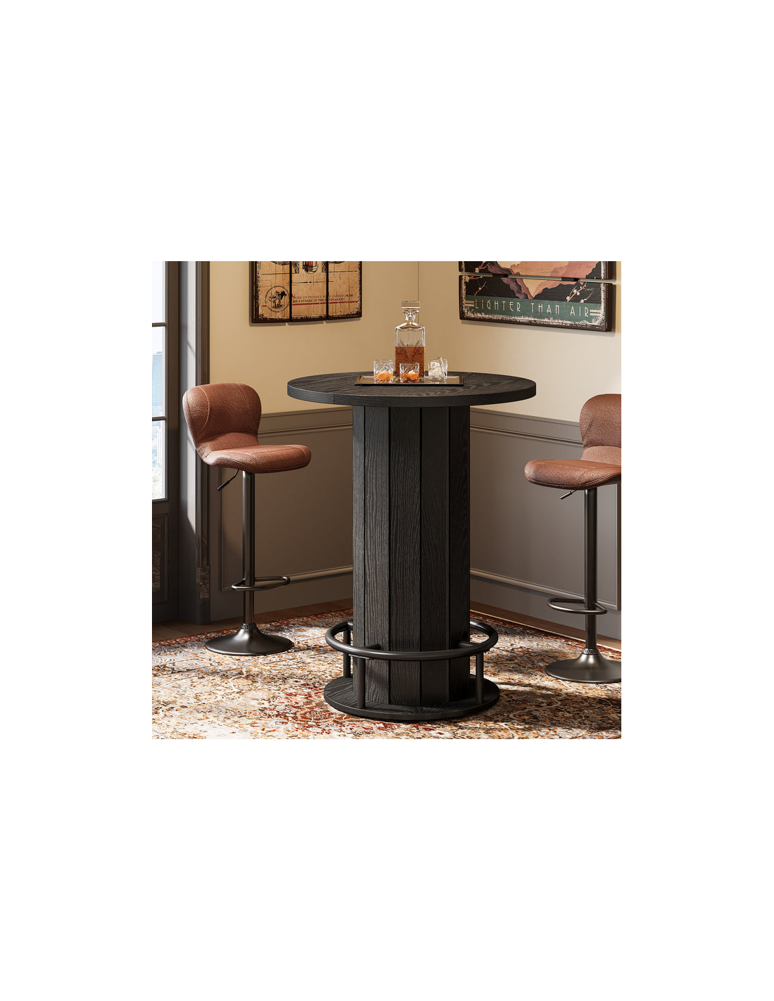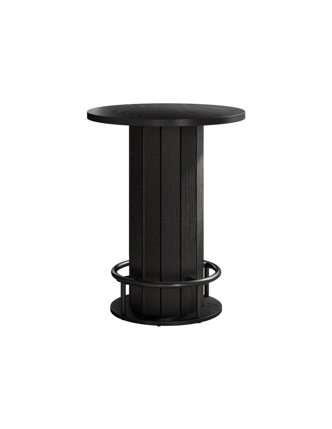 Barbord eller højt spisebord, udført i et design af sortlakeret metal og rustikt sortlakeret træ. Bordet måler 100 cm i højden og 80 cm i diameter.