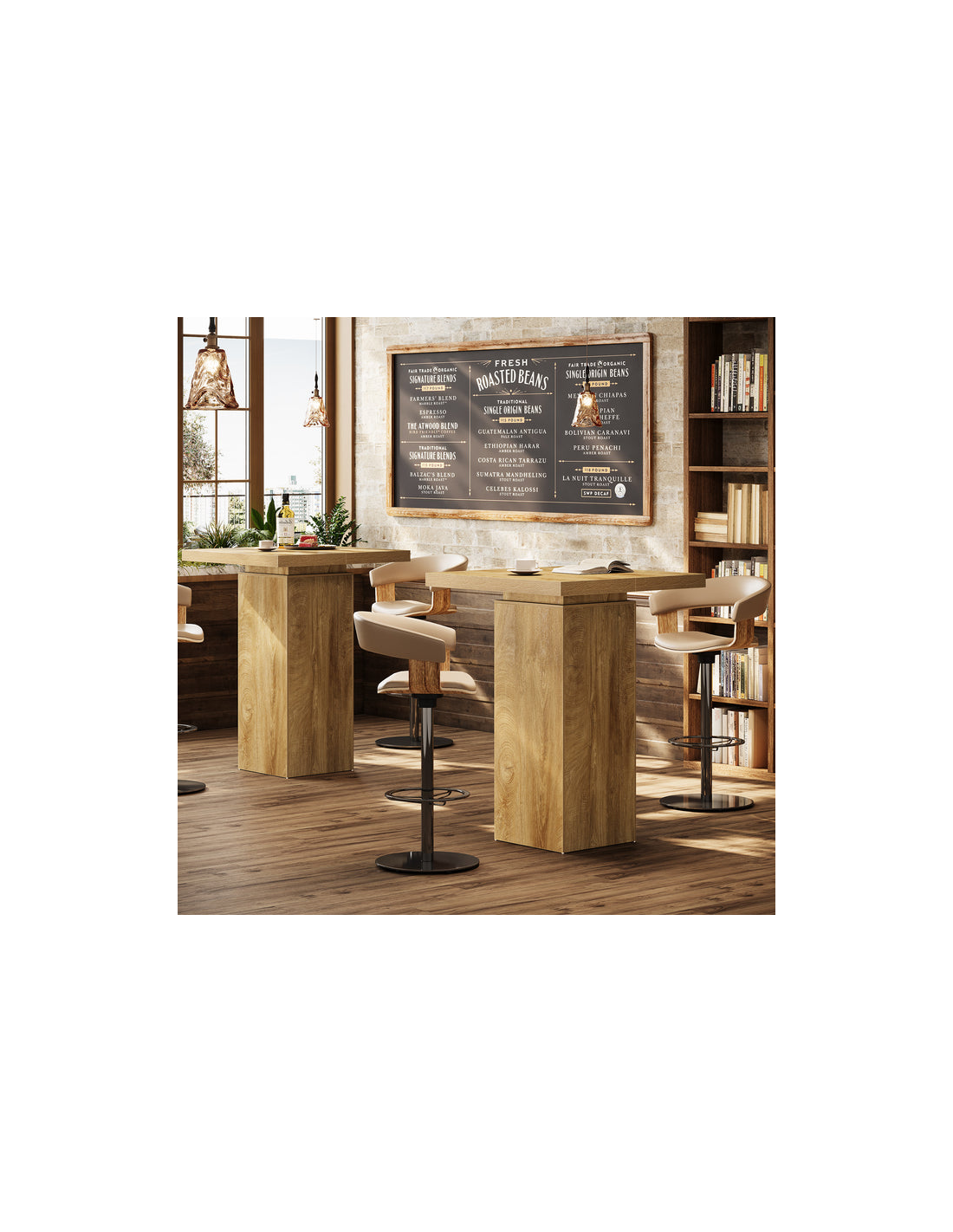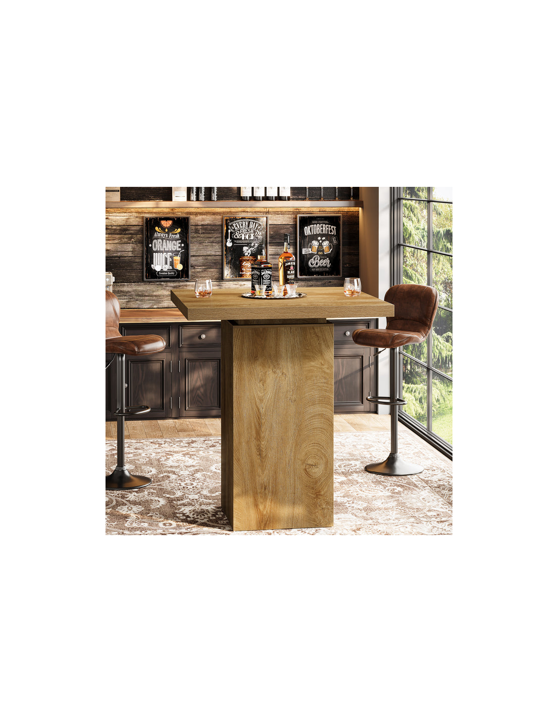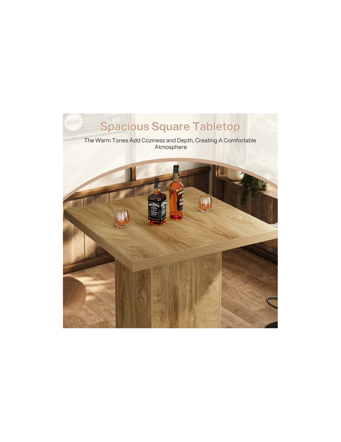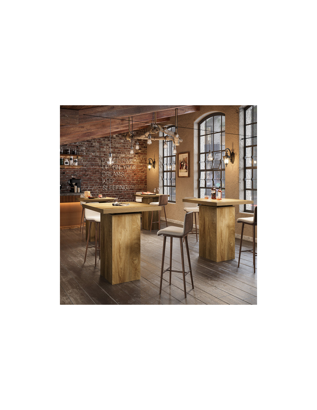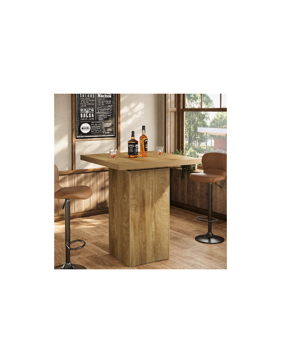 Barbord eller højt spisebord, udført i et design af naturbrun møbelplade. Bordet måler 100 cm i højden og 79 x 79 cm i bredde og dybde.