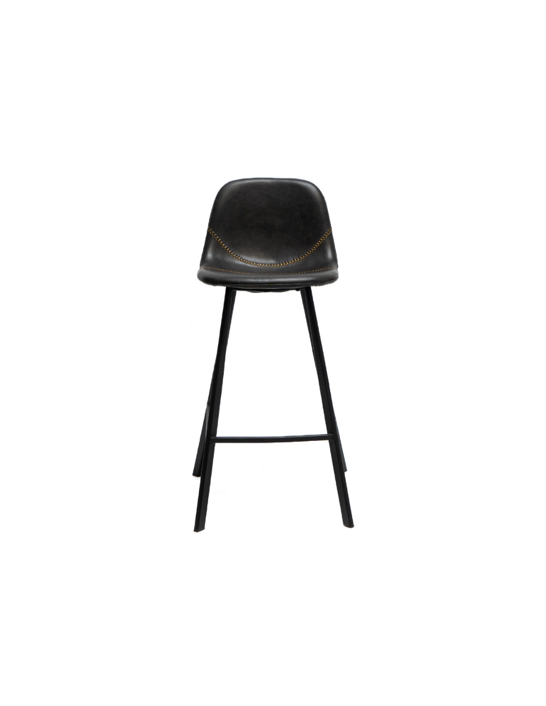 LOGAN Barstol udført i et Skandinavisk design af sortlakeret metal og vintage antracit læder (70% læder/30% polyester coating). Barstolen måler 96,5 cm i højden over ryggen og med en siddehøjde på 70 cm.