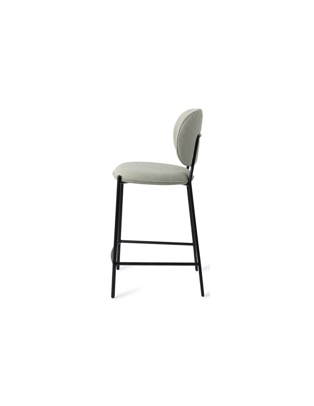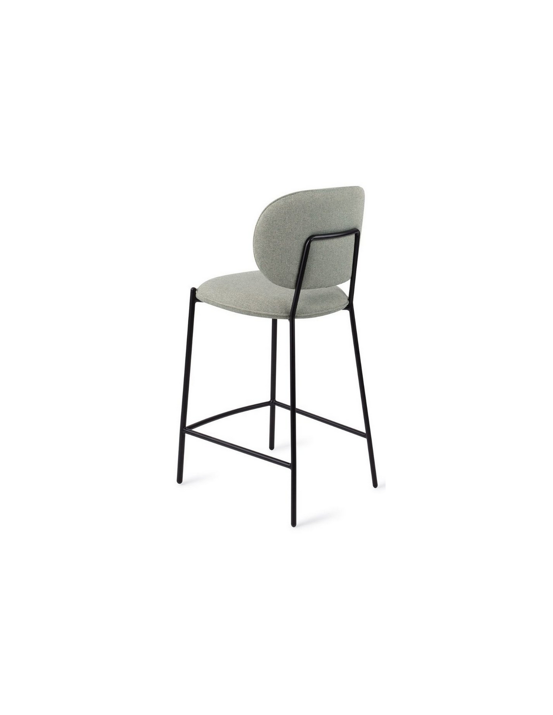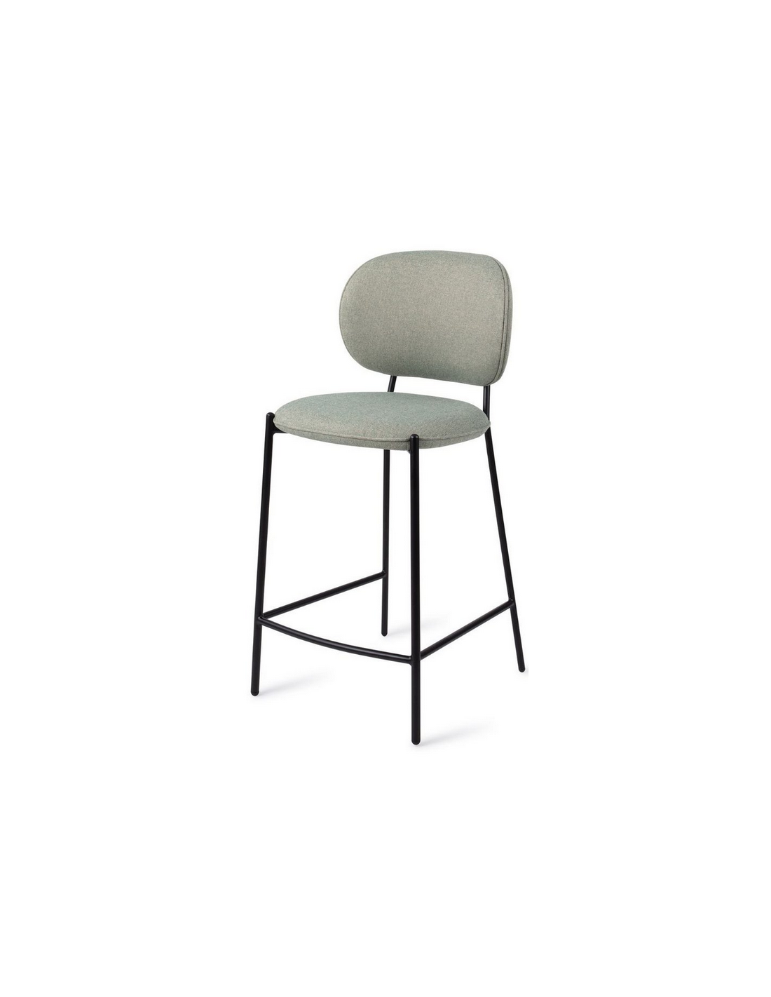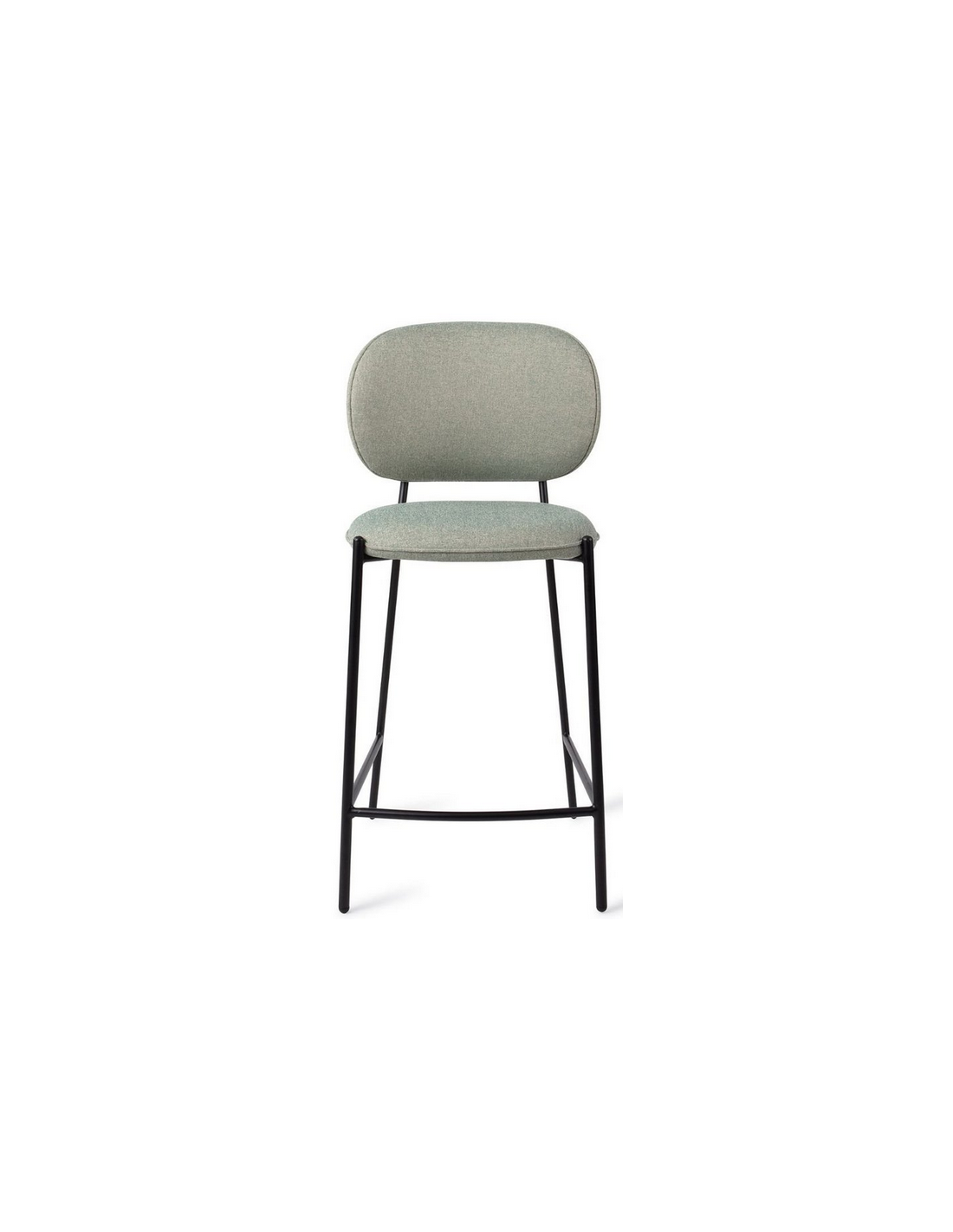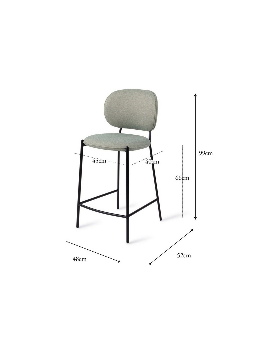 YOICHI Barstol udført i et moderne design, fremstillet med stel i sortlakeret metal og sæde i grøn polyester. Barstolen måler 99 cm i højden over ryggen og med siddehøjde på 66 cm.