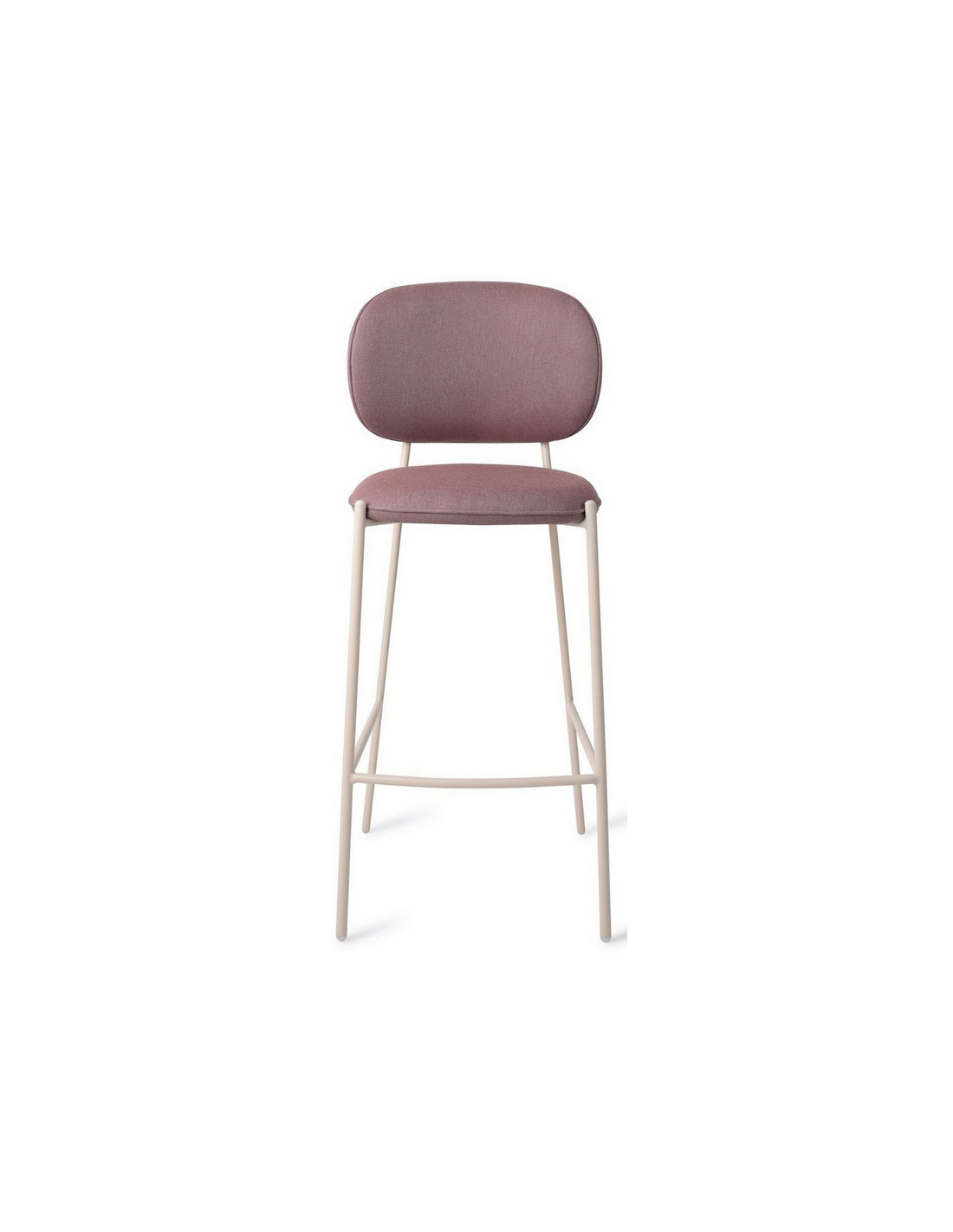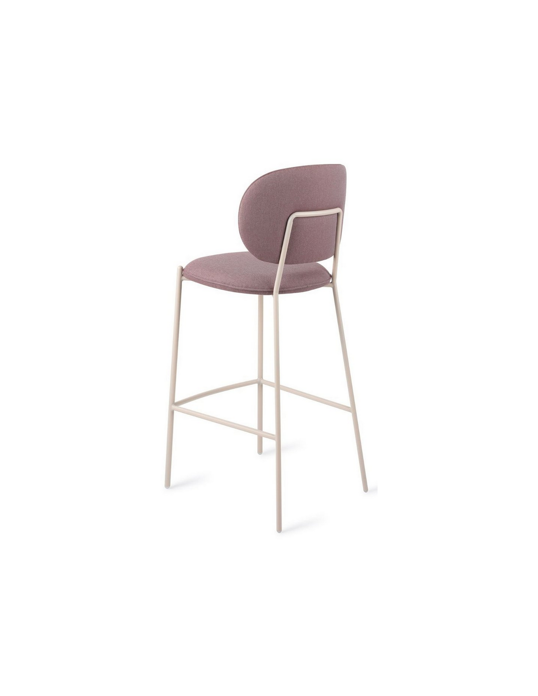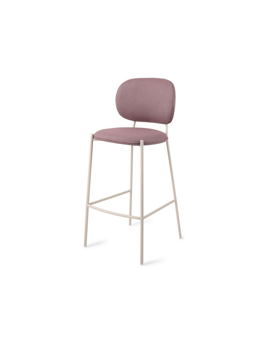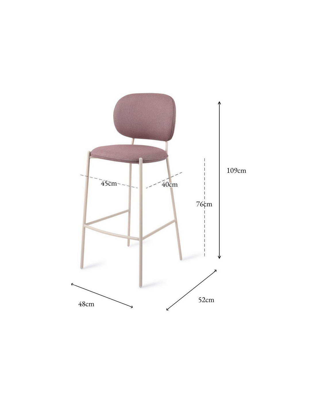 YOICHI Barstol udført i et moderne design, fremstillet med stel i beigelakeret metal og sæde i lilla polyester. Barstolen måler 109 cm i højden over ryggen og med siddehøjde på 76 cm.