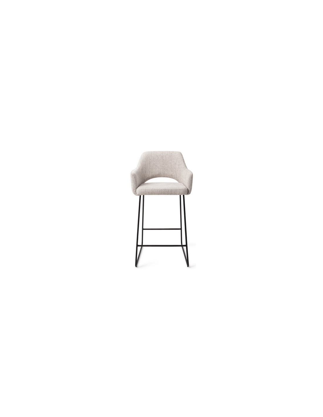YANAI Barstol udført i et moderne design, fremstillet med stel i sortlakeret metal og sæde i lysegrå polyester. Barstolen måler 89 cm i højden over ryggen og med siddehøjde på 65 cm.