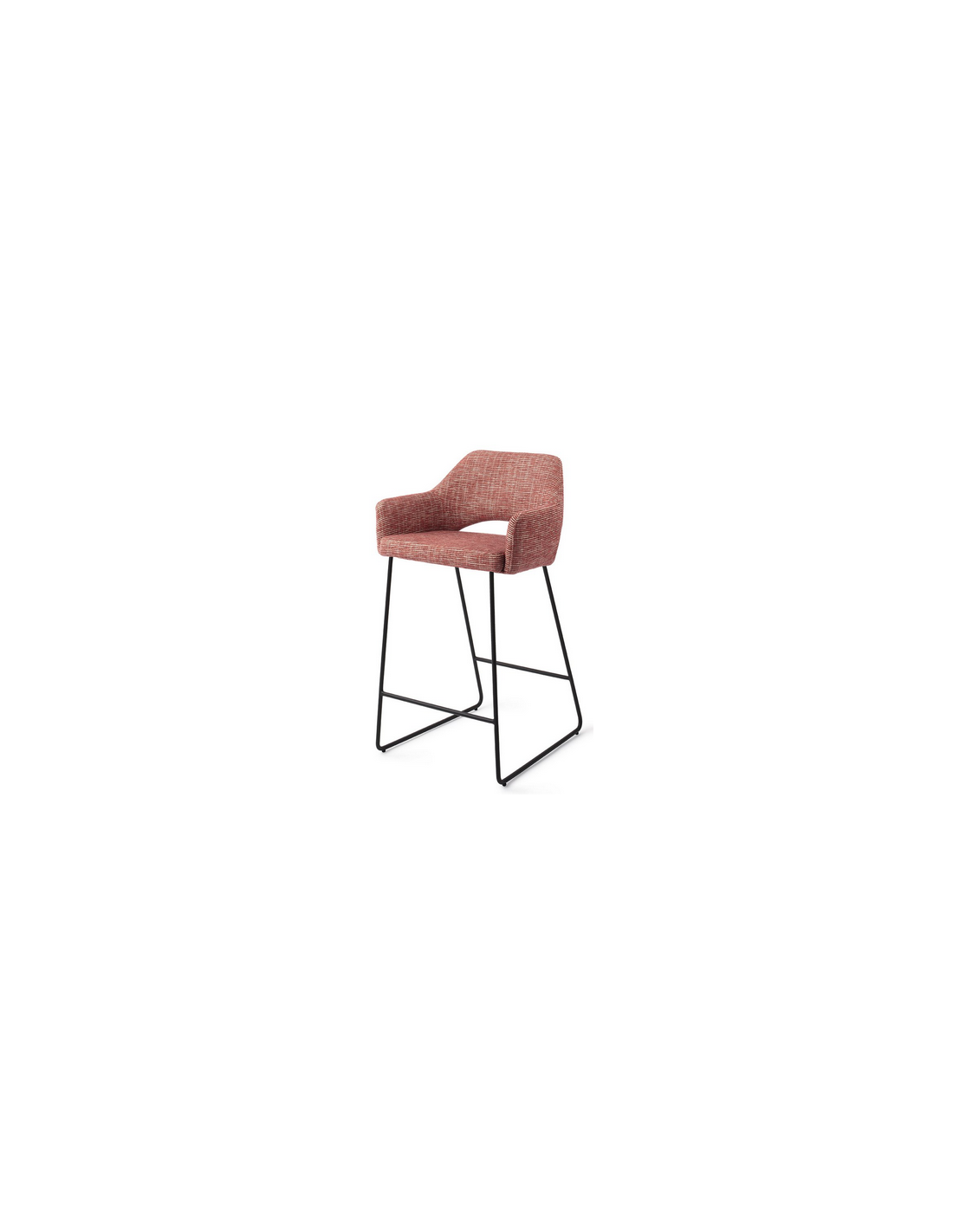 YANAI Barstol udført i et moderne design, fremstillet med stel i sortlakeret metal og sæde i bær rød polyester. Barstolen måler 89 cm i højden over ryggen og med siddehøjde på 65 cm.