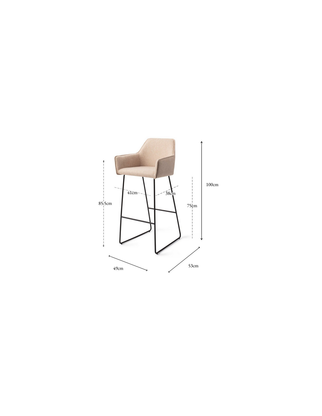 HOFU Barstol i metal og polyester H100 cm - Sort/Lys beige