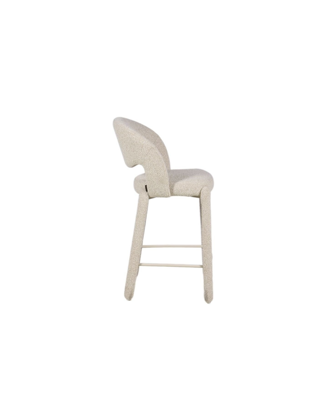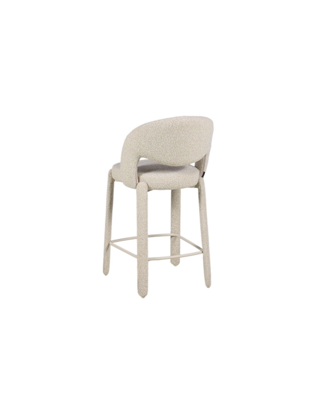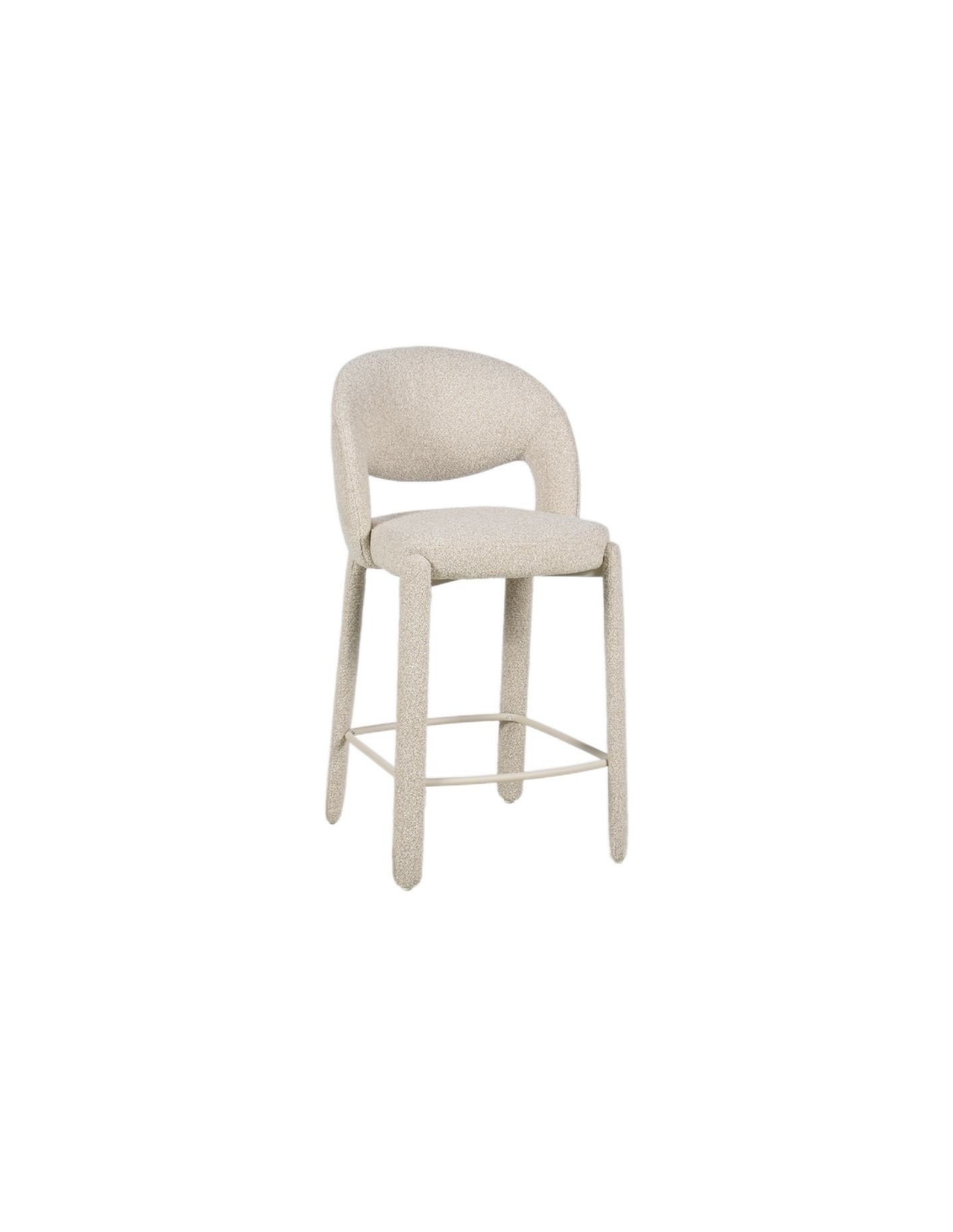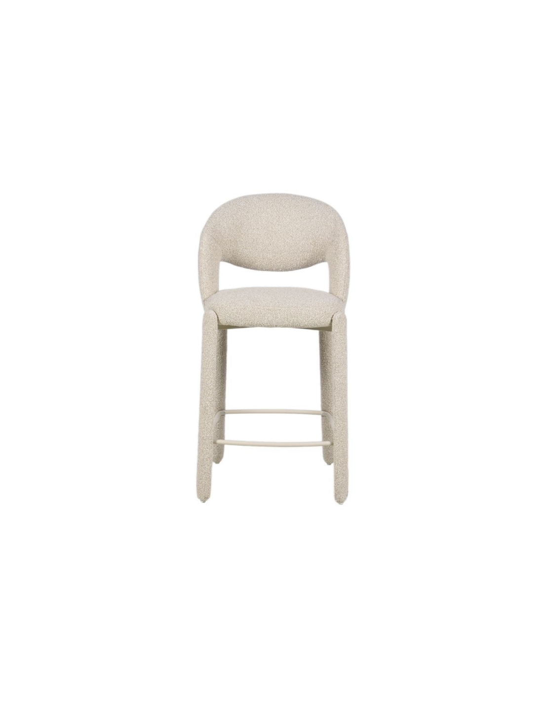 JUNE Barstol udført i et Skandinavisk design af beigelakeret stål og meleret taupefarvet bouclé polyester. Barstolen måler 100 cm i højden over ryggen og med en siddehøjde på 70 cm.