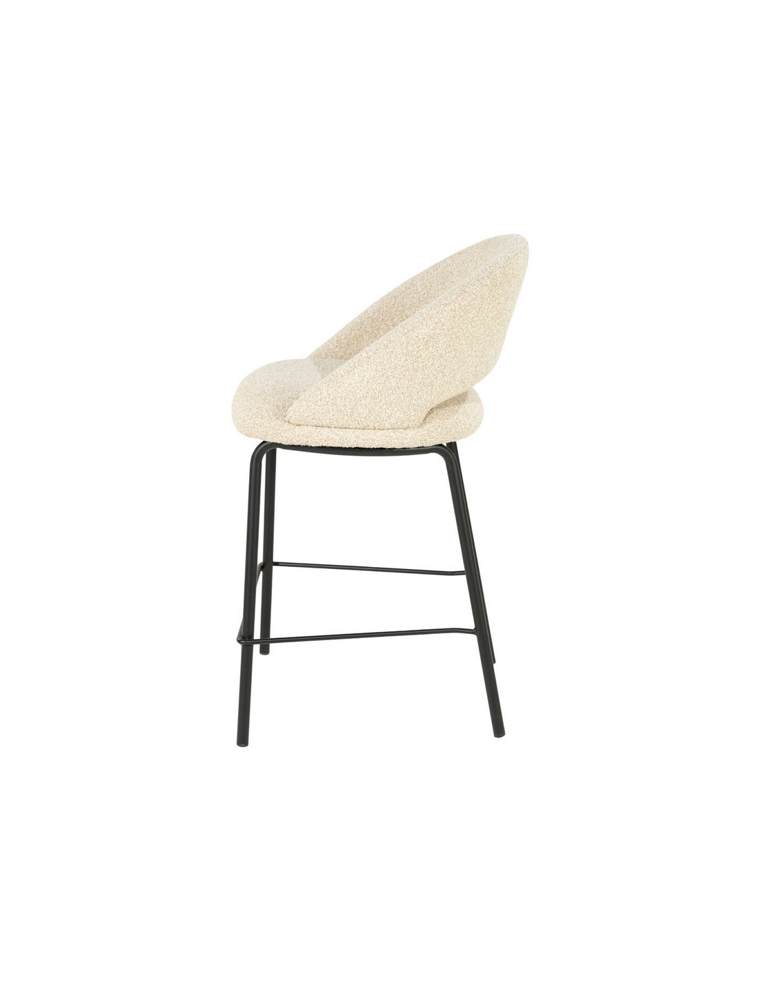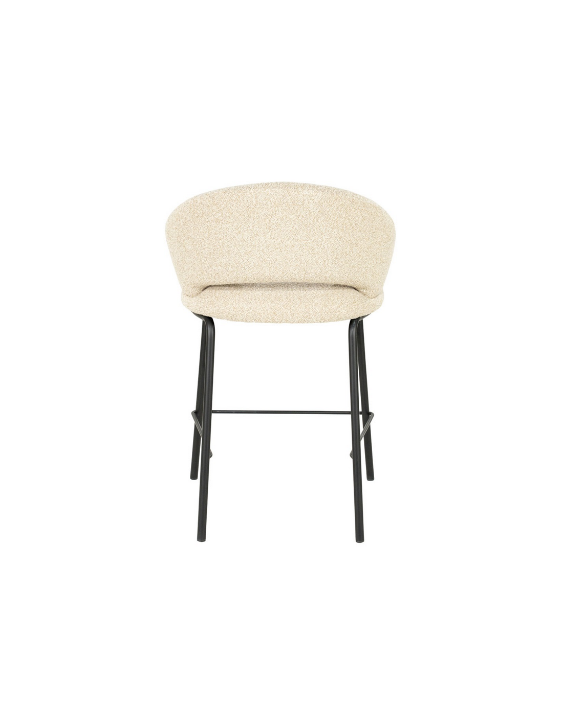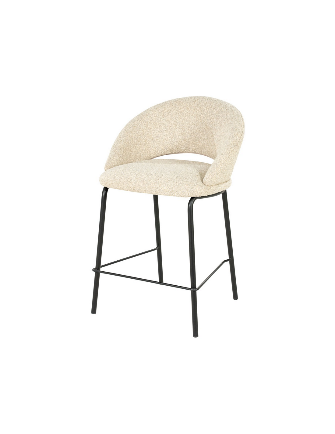 NIDO Barstol med ryg, udført i et moderne design med stel i sortlakeret stål og sæde og ryglæn i beige bouclé polyester. Stolen måler 92 cm over ryggen og med en siddehøjde på 65 cm.