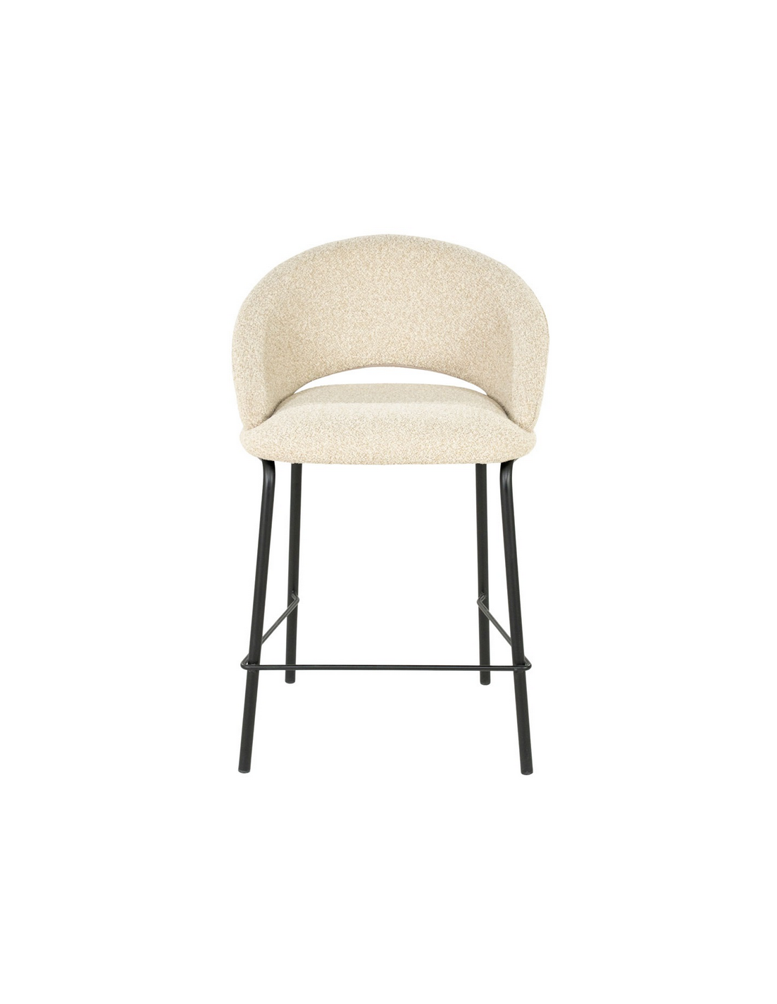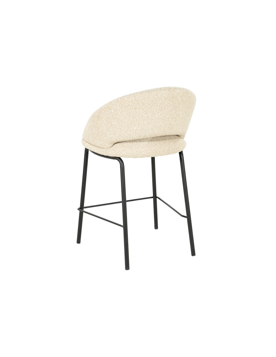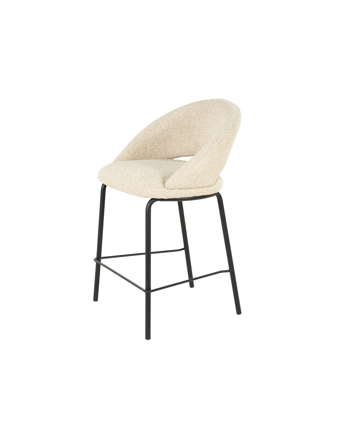 NIDO Barstol med ryg, udført i et moderne design med stel i sortlakeret stål og sæde og ryglæn i beige bouclé polyester. Stolen måler 92 cm over ryggen og med en siddehøjde på 65 cm.