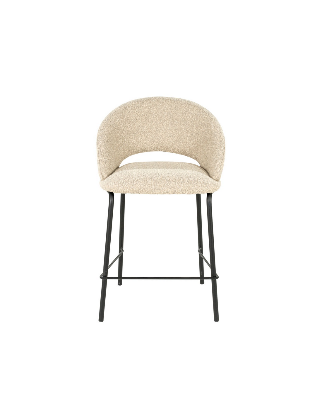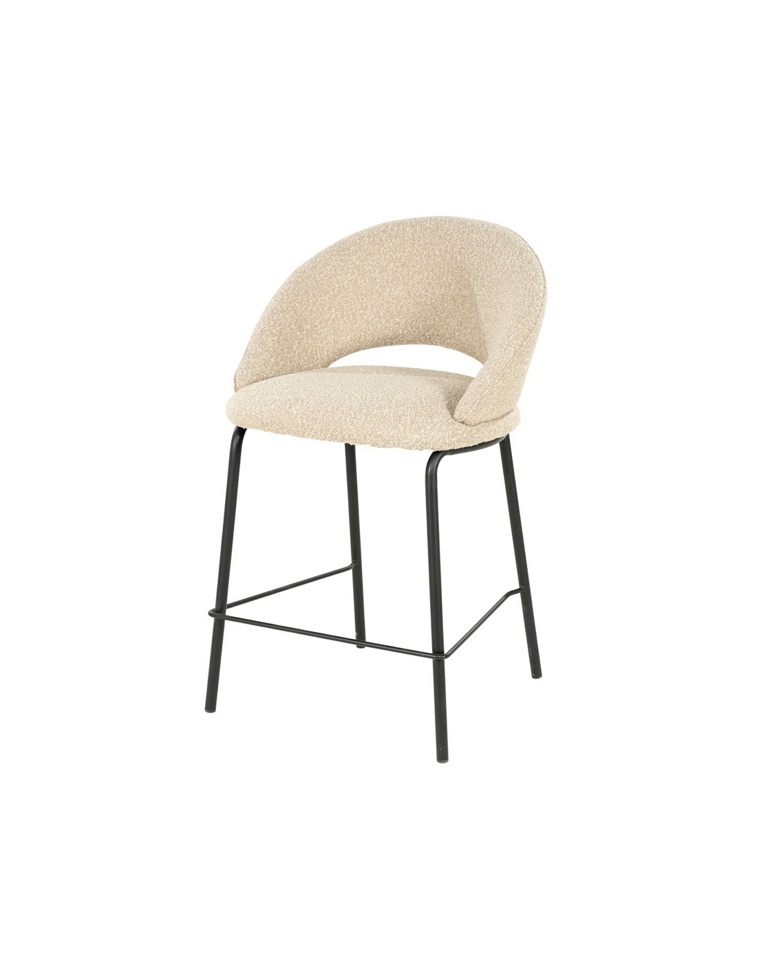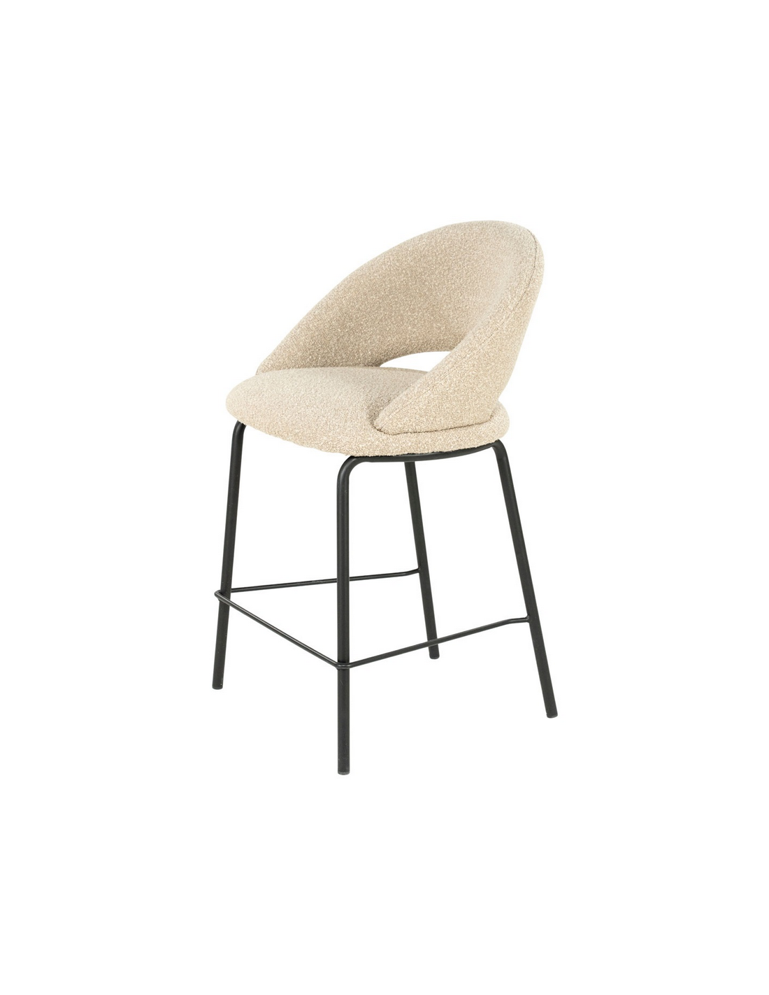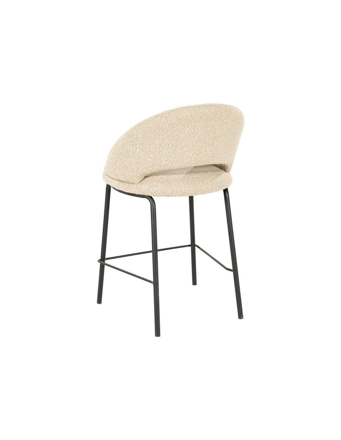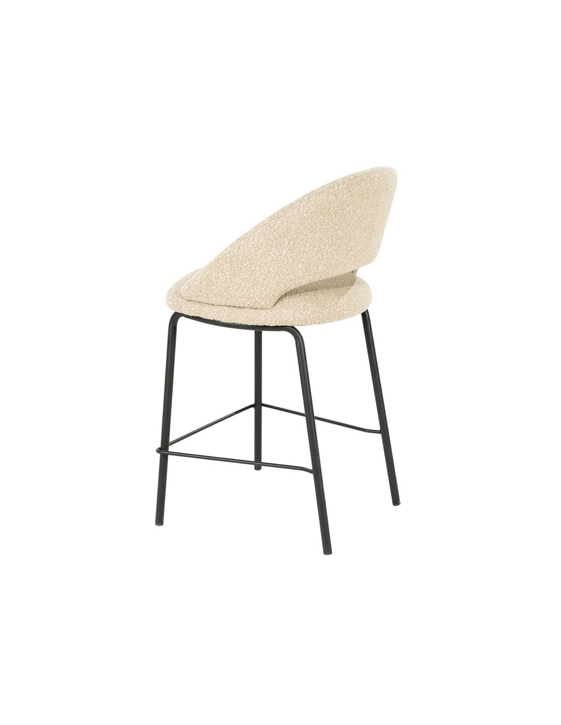 NIDO Barstol med ryg, udført i et moderne design med stel i sortlakeret stål og sæde og ryglæn i taupefarvet bouclé polyester. Stolen måler 92 cm over ryggen og med en siddehøjde på 65 cm.