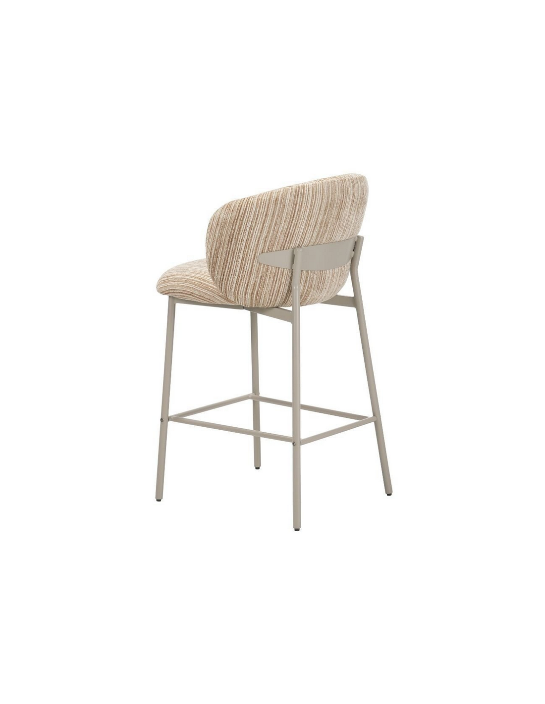 MILO Barstol udført i et Skandinavisk design af gråbeige lakeret stål og meleret taupefarvet chenille polyester. Barstolen måler 96,5 cm i højden over ryggen og med en siddehøjde på 70 cm.
