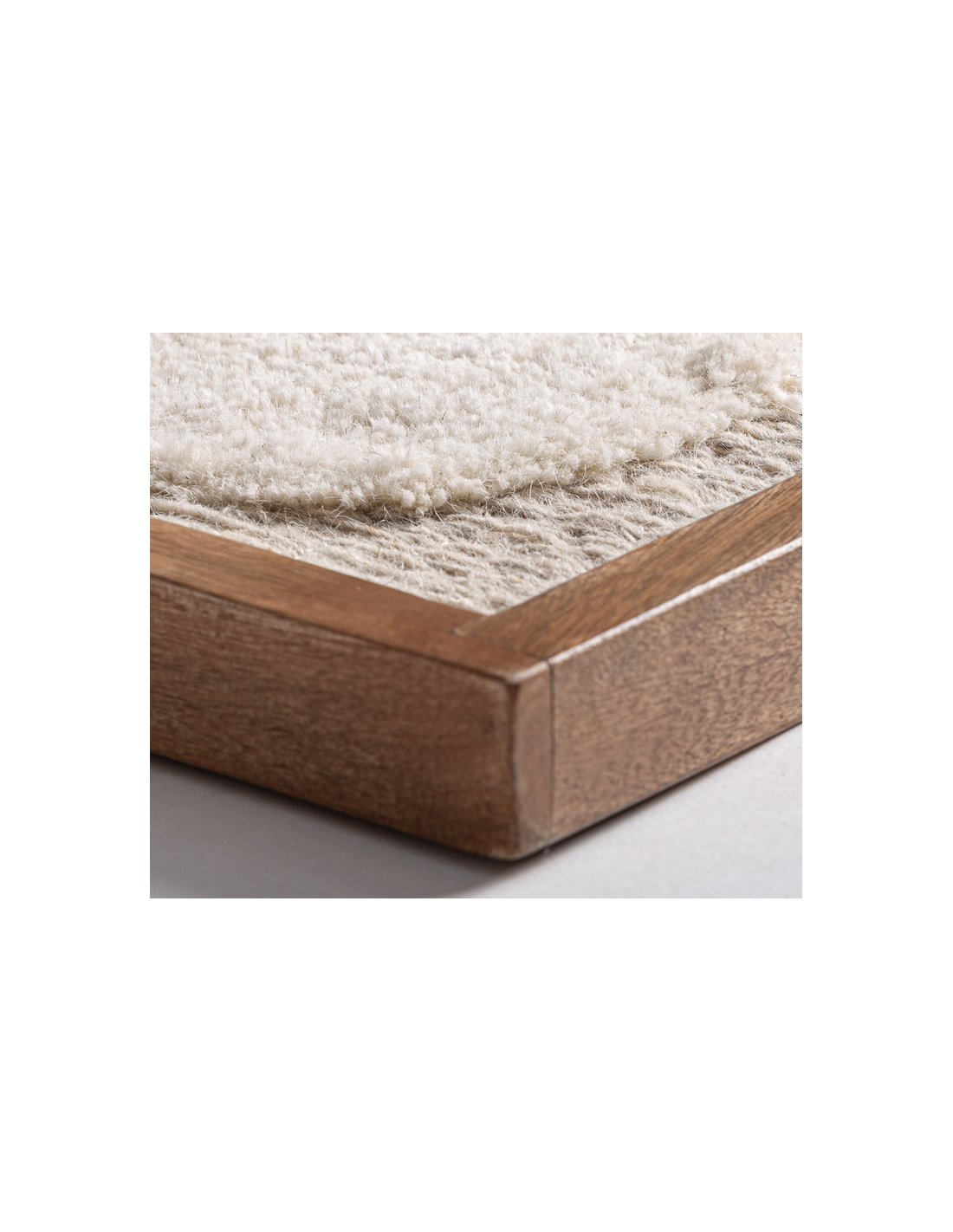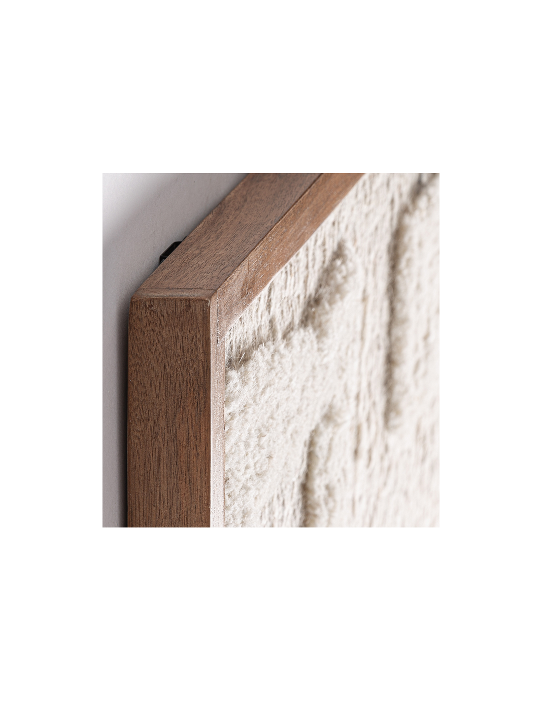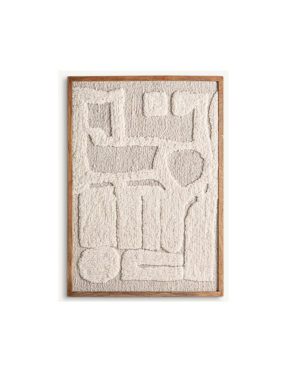 TRITON Abstrakt billede med ramme udført i naturbrun rustikt mangotræ og med motiv i beige bomuld. Billedet måler 107 cm i højden og 76 x 4 cm i bredde og dybde.