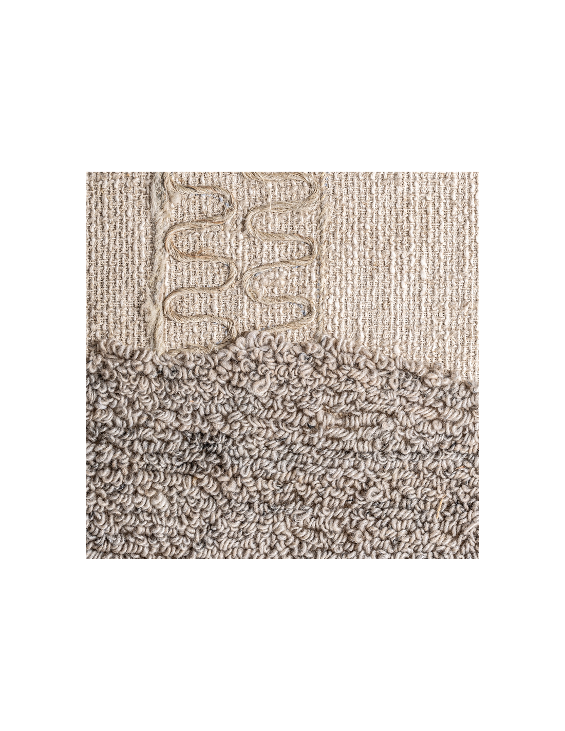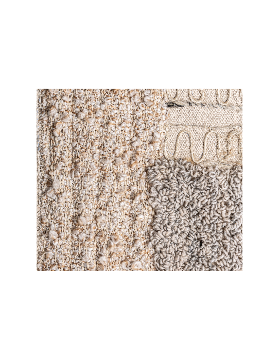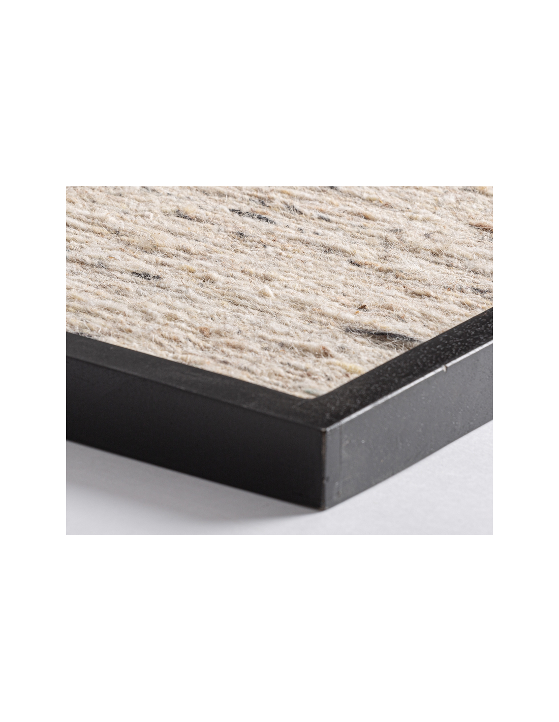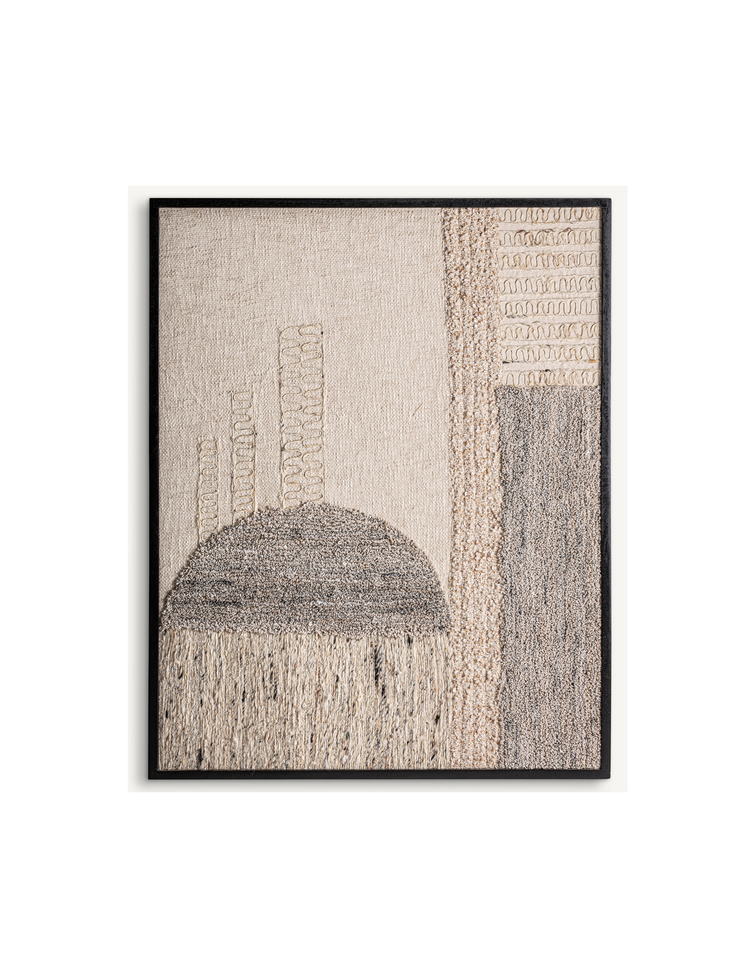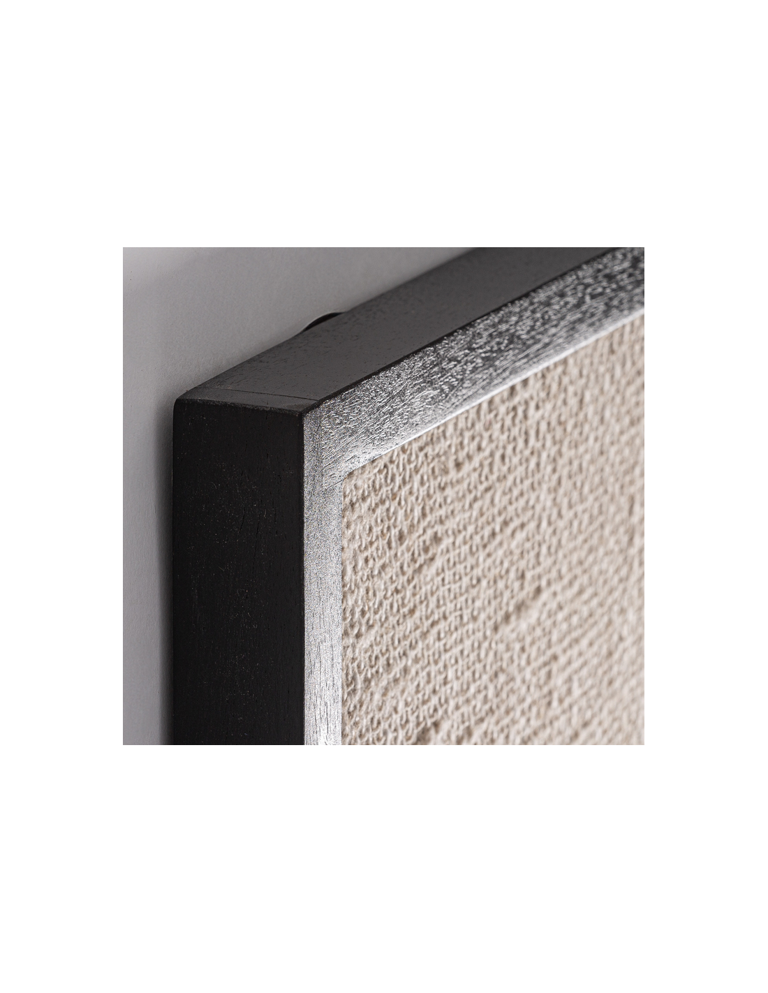 URZUR Abstrakt billede med ramme udført i rustikt sortlakeret mangotræ og med motiv i naturfarvet bomuld. Billedet måler 150 cm i højden og 120 x 4 cm i bredde og dybde.