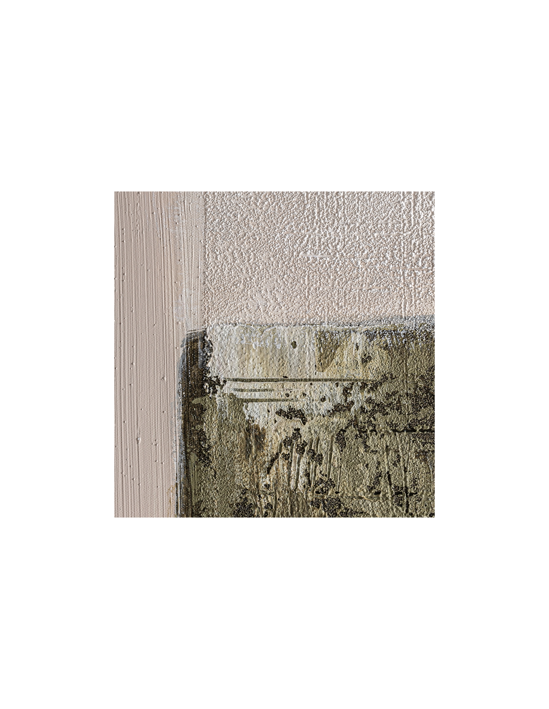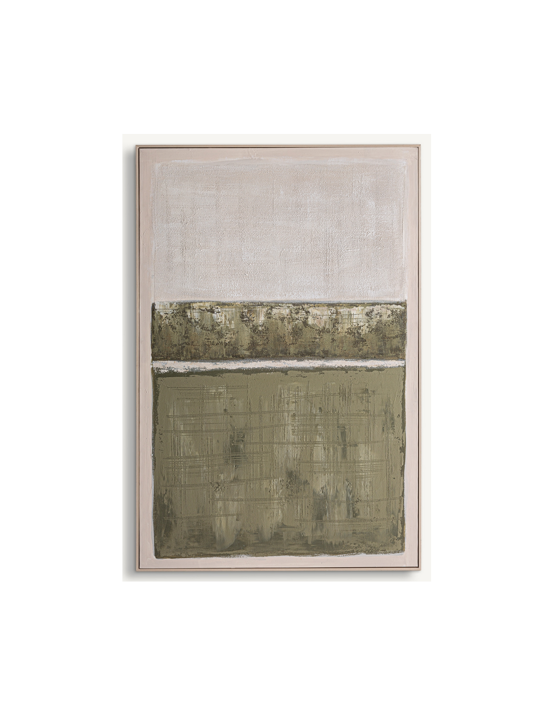 KAIN Abstrakt billede med ramme udført i lysebrun lakeret fyrretræ og med motiv i grønt og brunt canvas. Billedet måler 150 cm i højden og 100 x 4 cm i bredde og dybde.