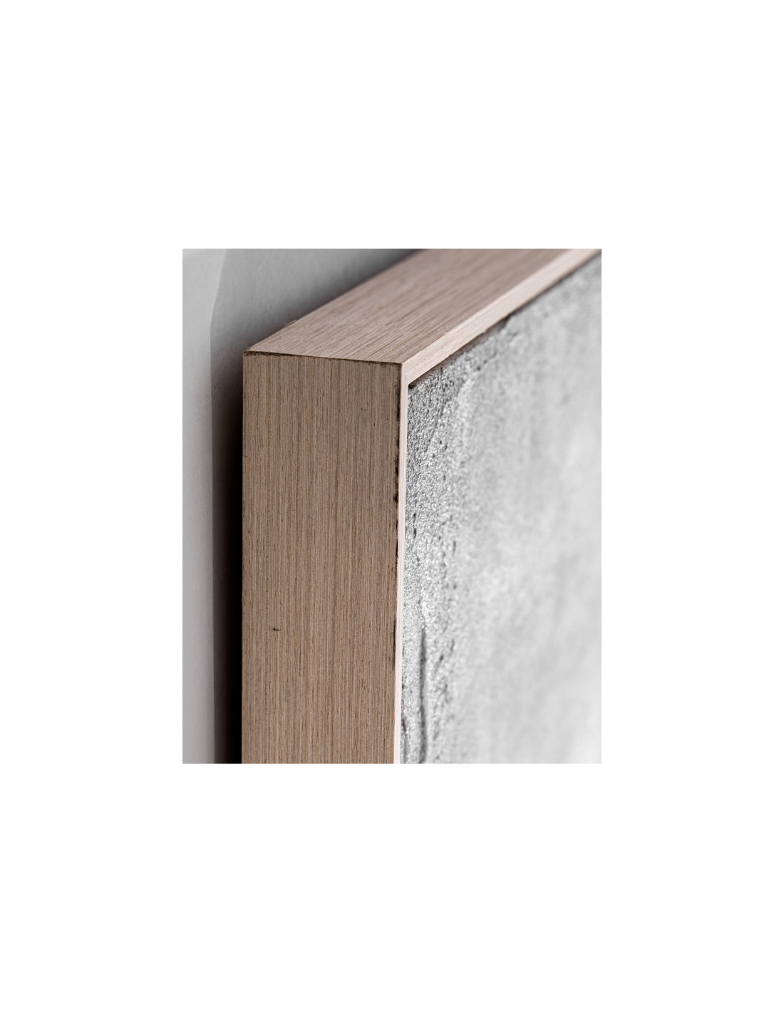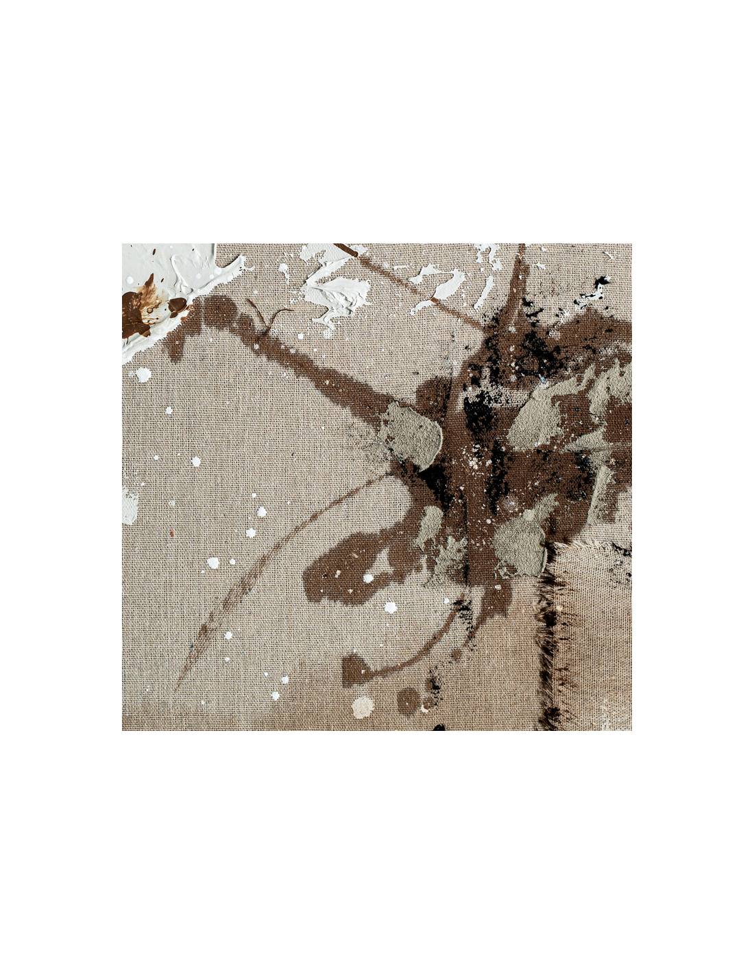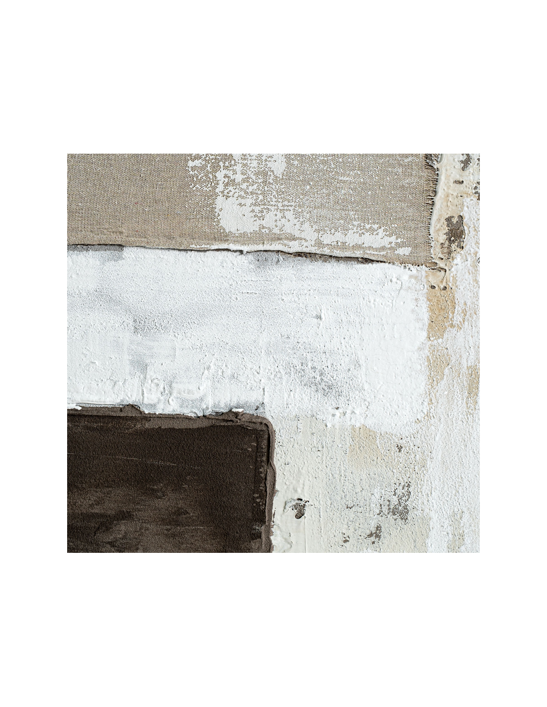 RADELLE Abstrakt billede med ramme udført i rustikt brunlakeret fyrretræ og med motiv i canvas og tekstil i neutrale farver. Billedet måler 220 cm i højden og 150 x 5 cm i bredde og dybde.