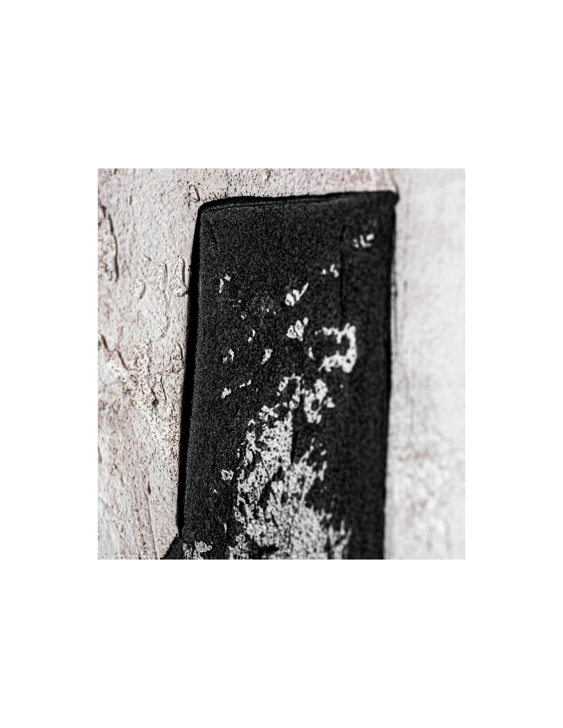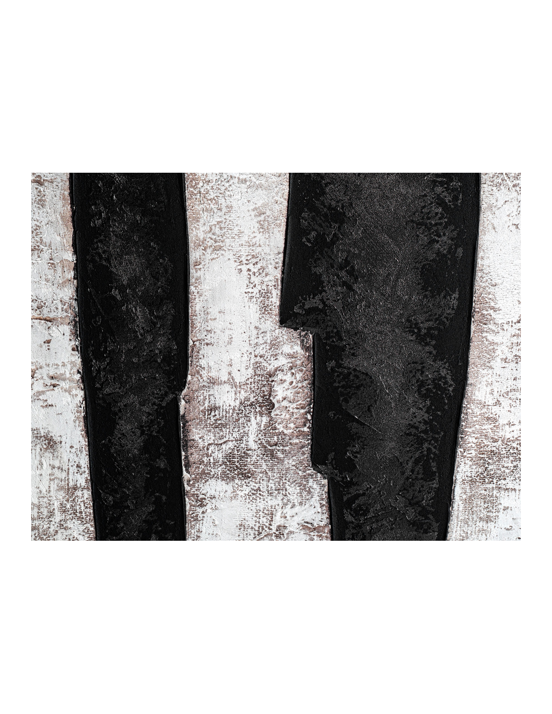 KURT Abstrakt billede med ramme udført i rustikt lysebrun fyrretræ og med motiv i canvas og tekstil i neutrale nuancer. Billedet måler 180 cm i højden og 130 x 5 cm i bredde og dybde.