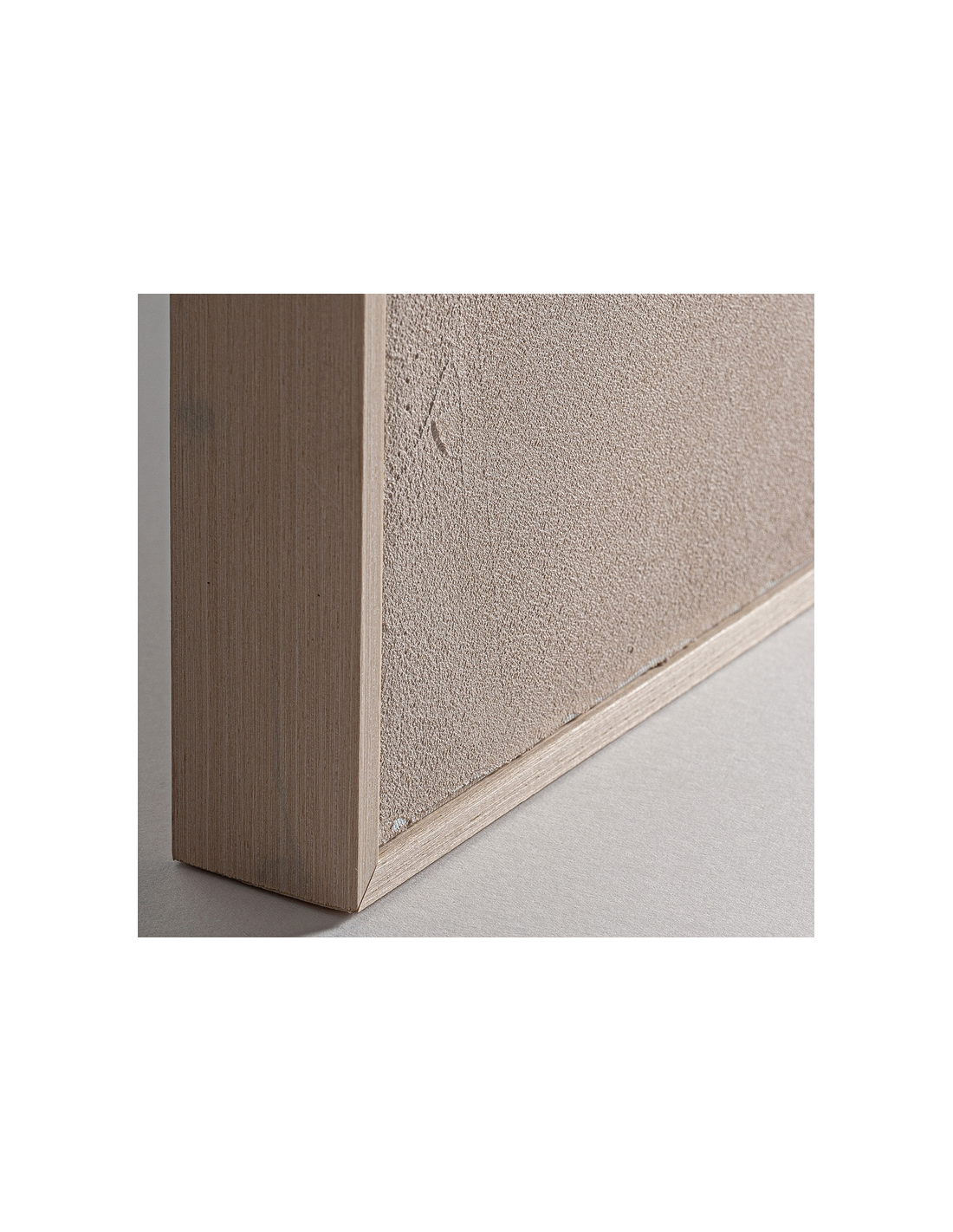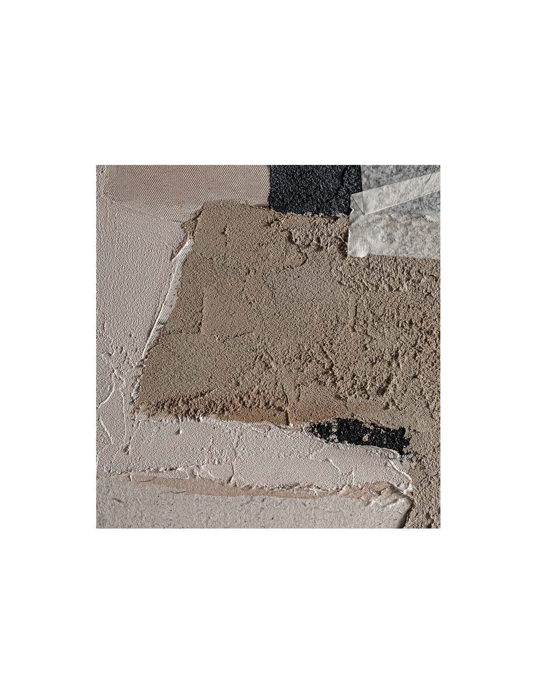 DANSO Abstrakt billede med ramme udført i rustikt lysebrun fyrretræ og med motiv i canvas og tekstil i neutrale nuancer. Billedet måler 180 cm i højden og 140 x 5 cm i bredde og dybde.