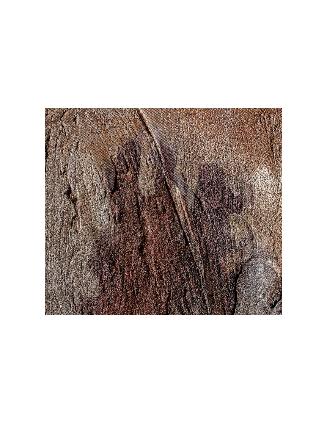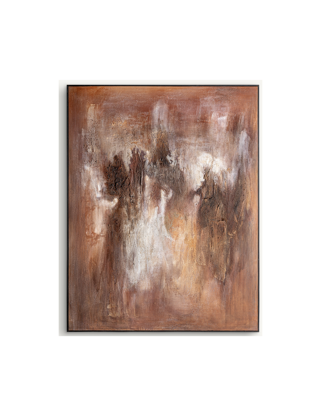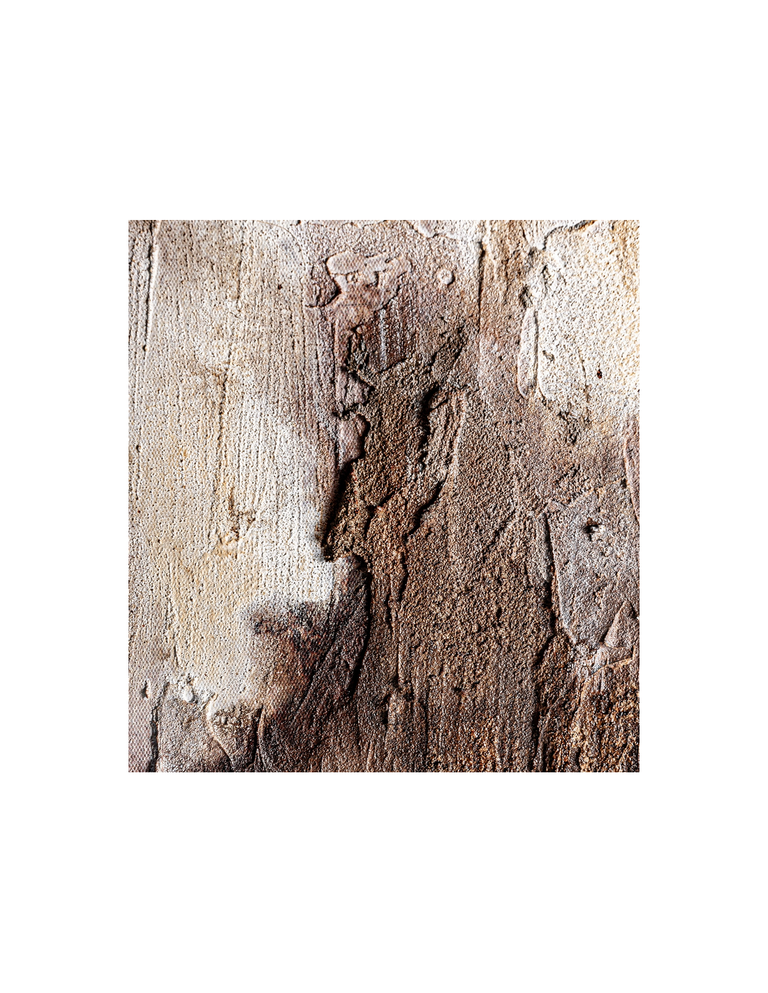 ERIC Abstrakt billede med ramme udført i rustikt brunlakeret fyrretræ og med motiv i canvas i brune farver. Billedet måler 180 cm i højden og 140 x 4 cm i bredde og dybde.