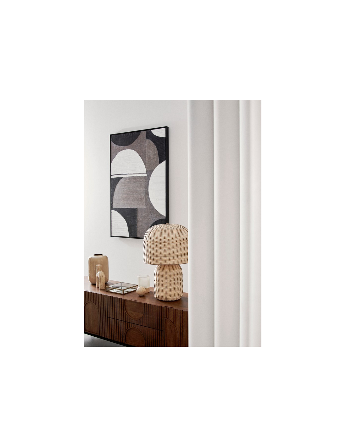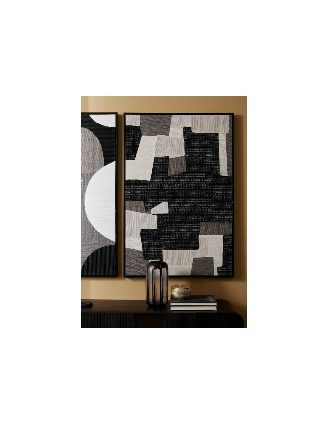 Print med tekstil med ramme H122,6 x B82,6 cm - Sorte/Mørke nuancer