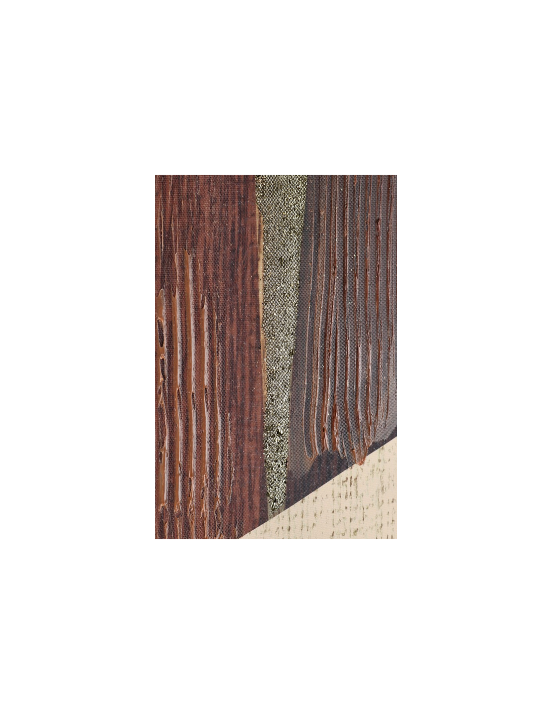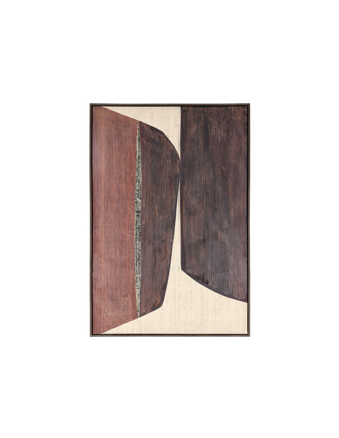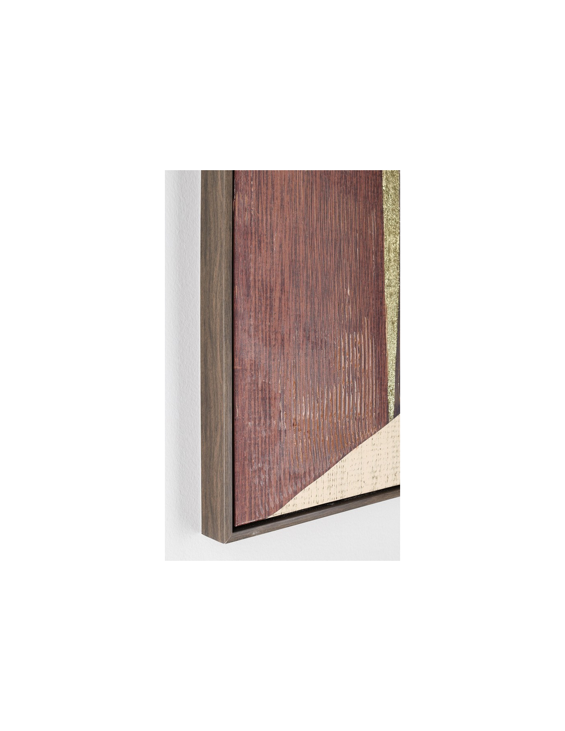 Print med ramme udført i et design af mørkebrun lakeret MDF og med motiv i canvas i brunlige nuancer. Billedet måler 122,6 cm i højden og 82,6 x 4,3 cm i bredde og dybde.