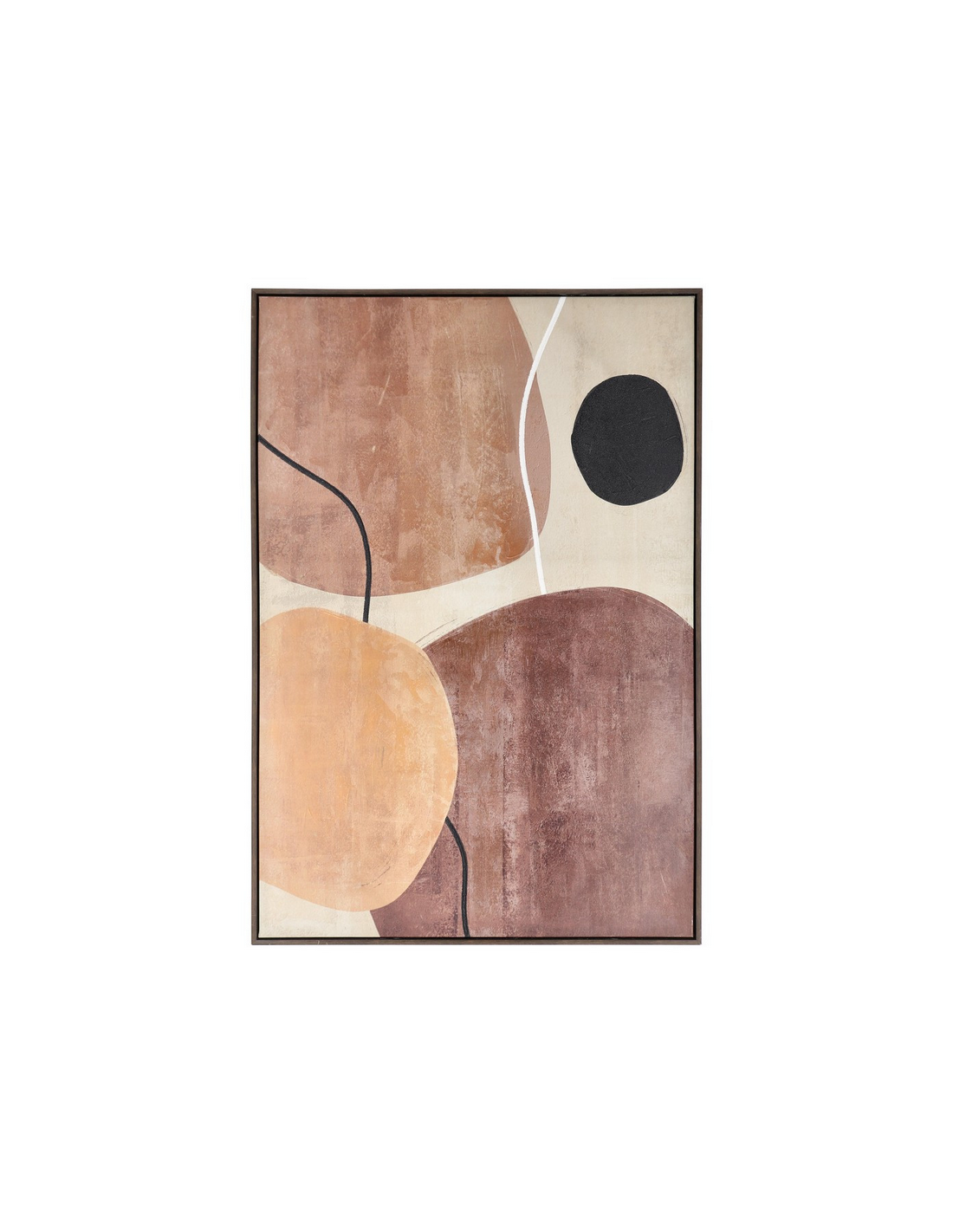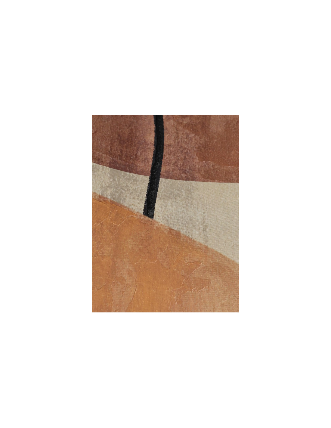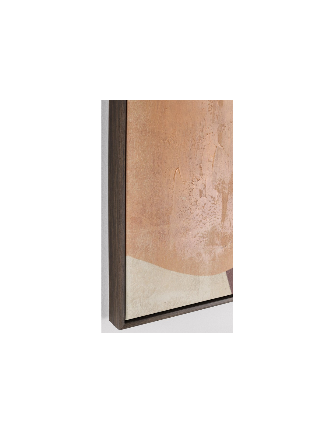 Print med ramme udført i et design af mørkebrun lakeret MDF og med motiv i canvas i brunlige nuancer. Billedet måler 122,6 cm i højden og 82,6 x 4,3 cm i bredde og dybde.