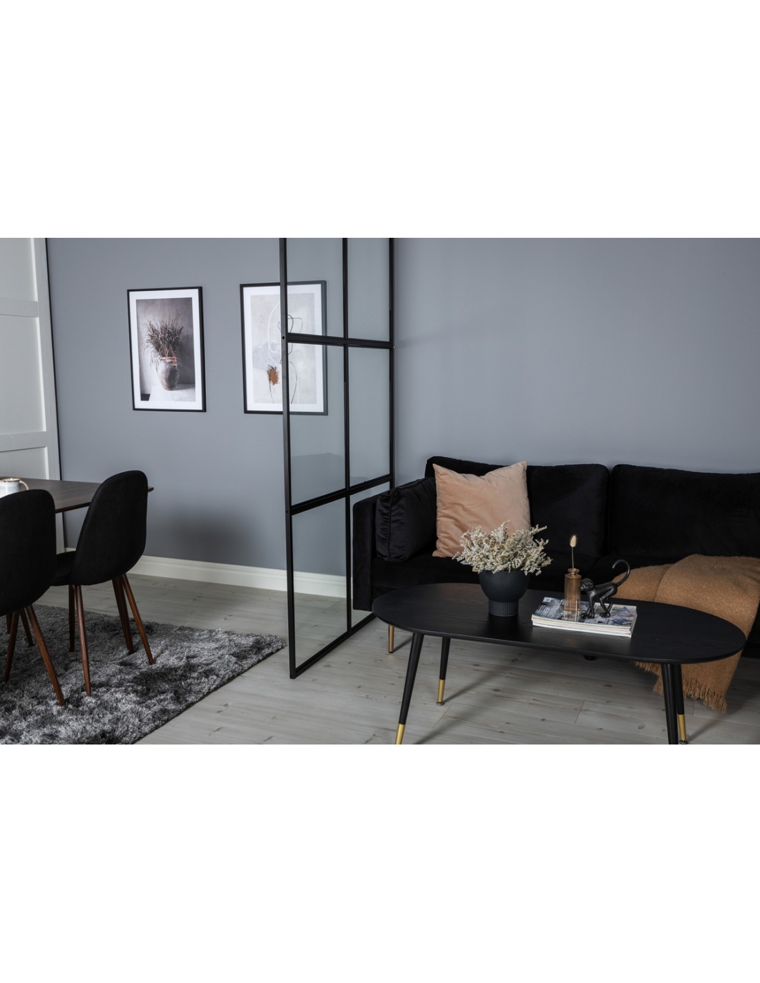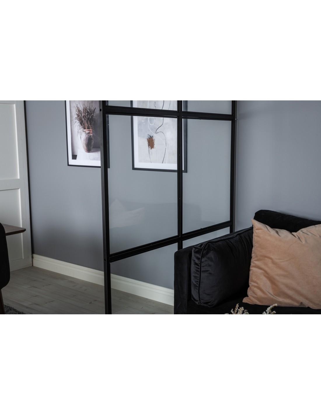 LEIF Industrivæg skillevæg i metal og glas H210 x B120 x D4 cm - Sort