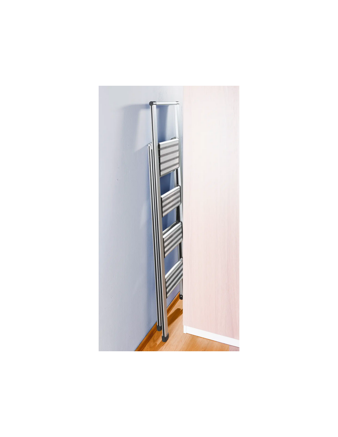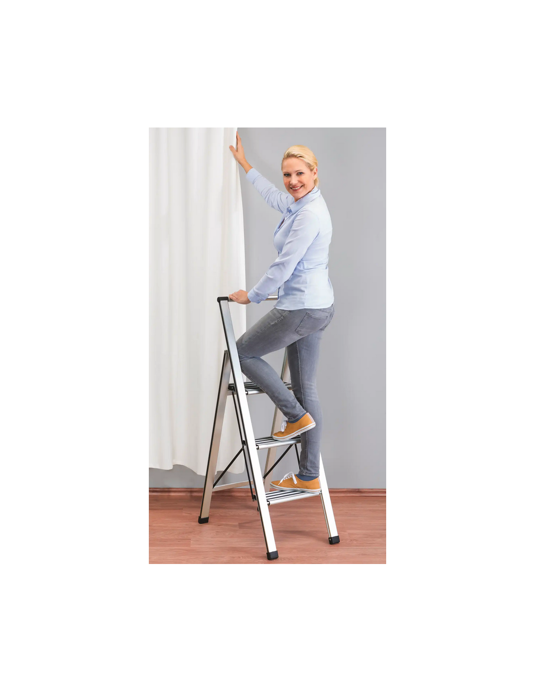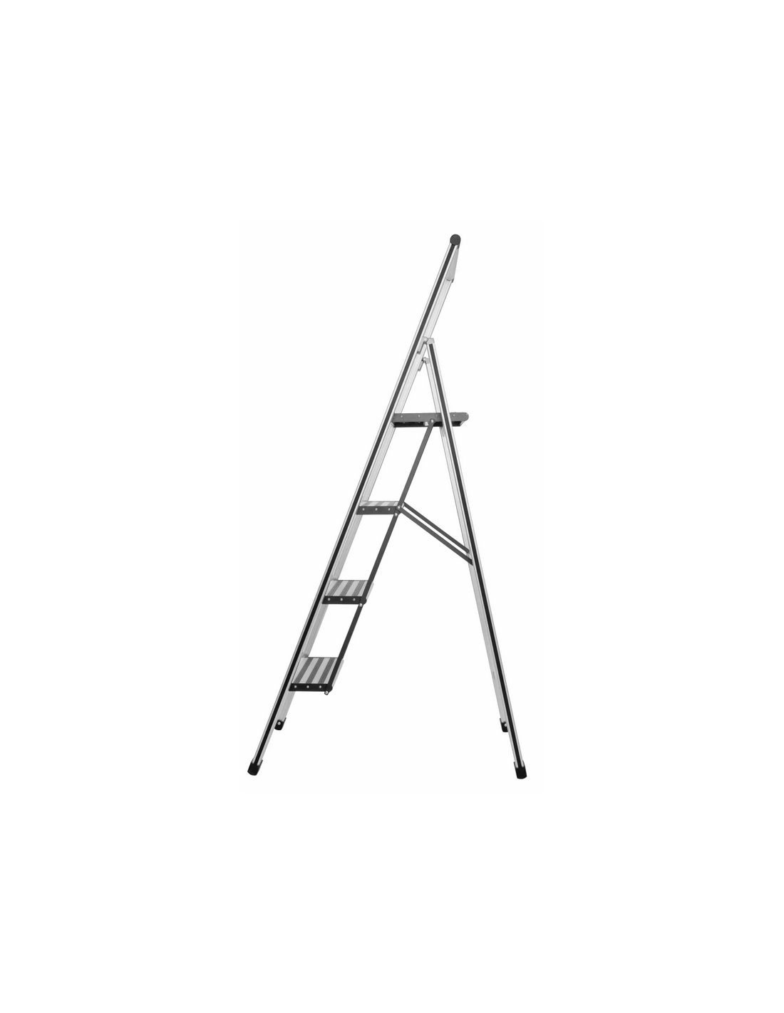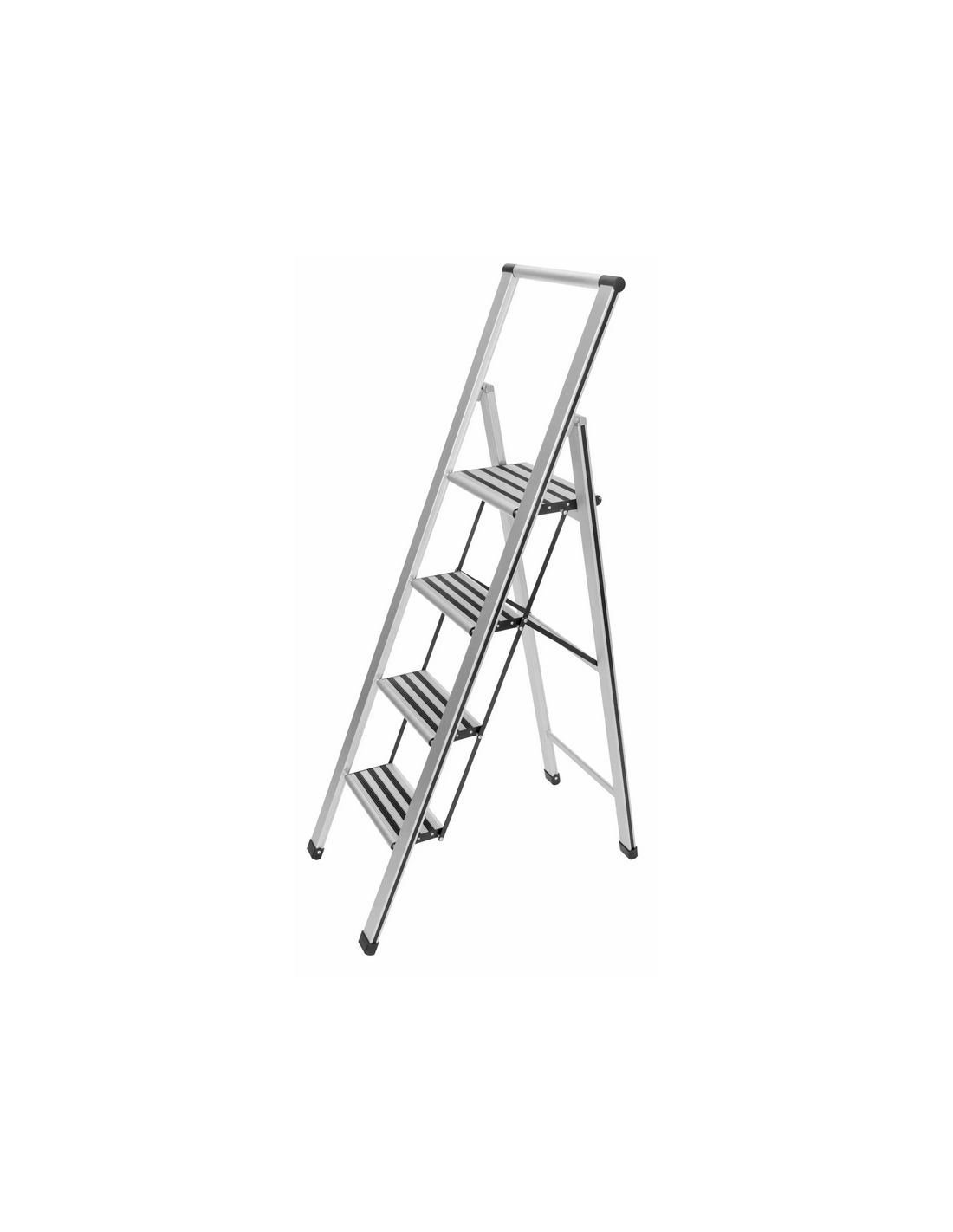 WENKO Trappestige udført i et solidt design af mat aluminium med anti-skrid. Stigen er foldbar og med trin for hver 25 cm fra gulvet. Stigen måler 153 cm i højden.