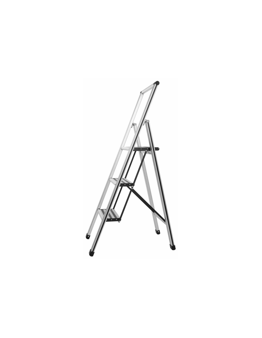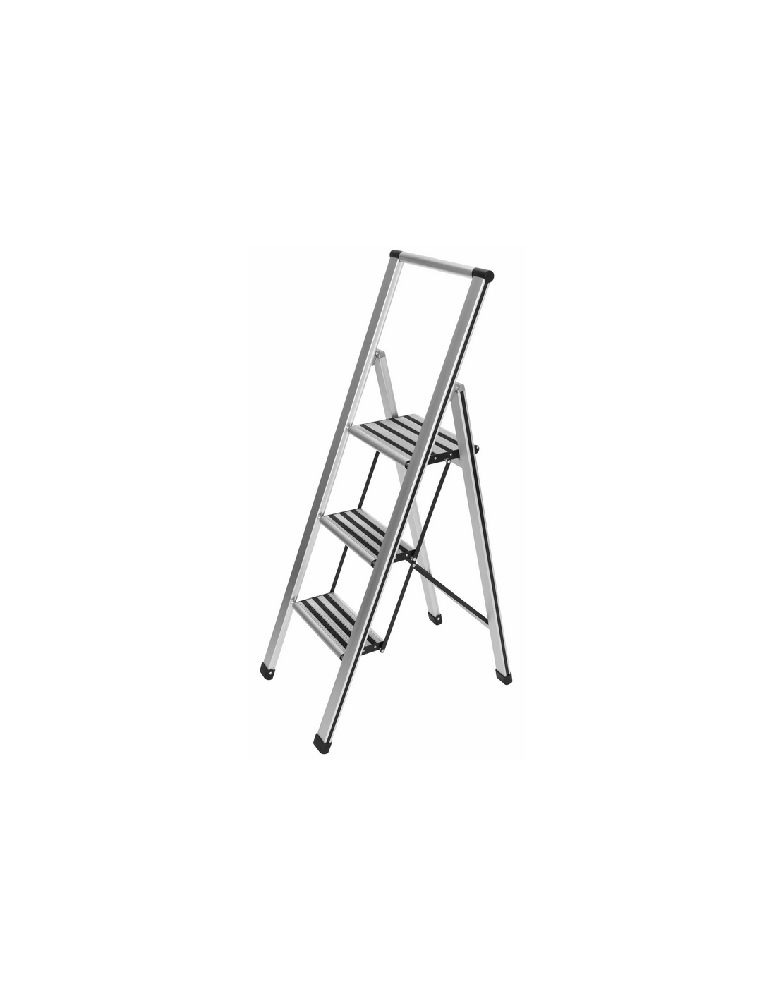 WENKO Trappestige udført i et solidt design af mat aluminium med anti-skrid. Stigen er foldbar og med trin for hver 25 cm fra gulvet. Stigen måler 127 cm i højden.