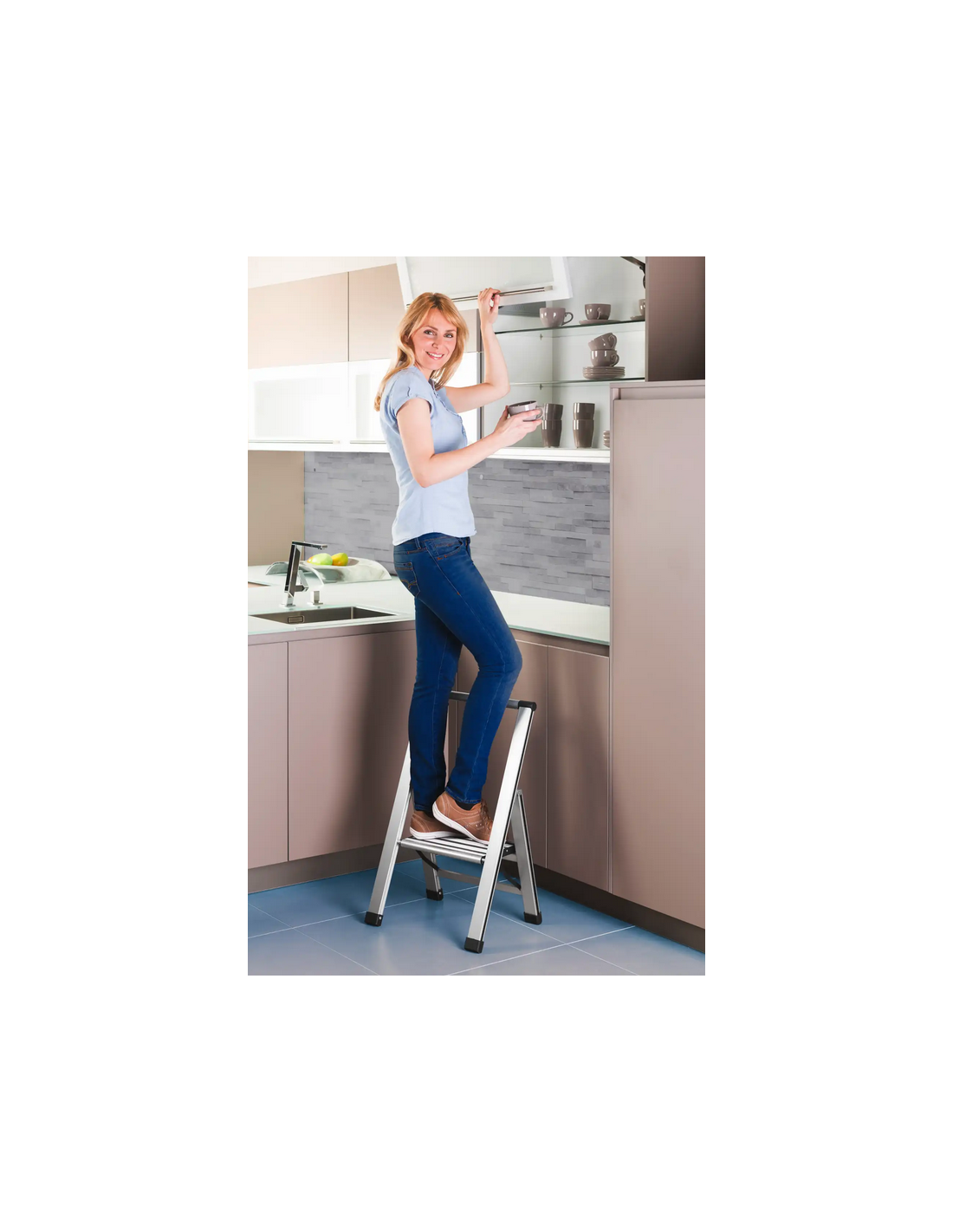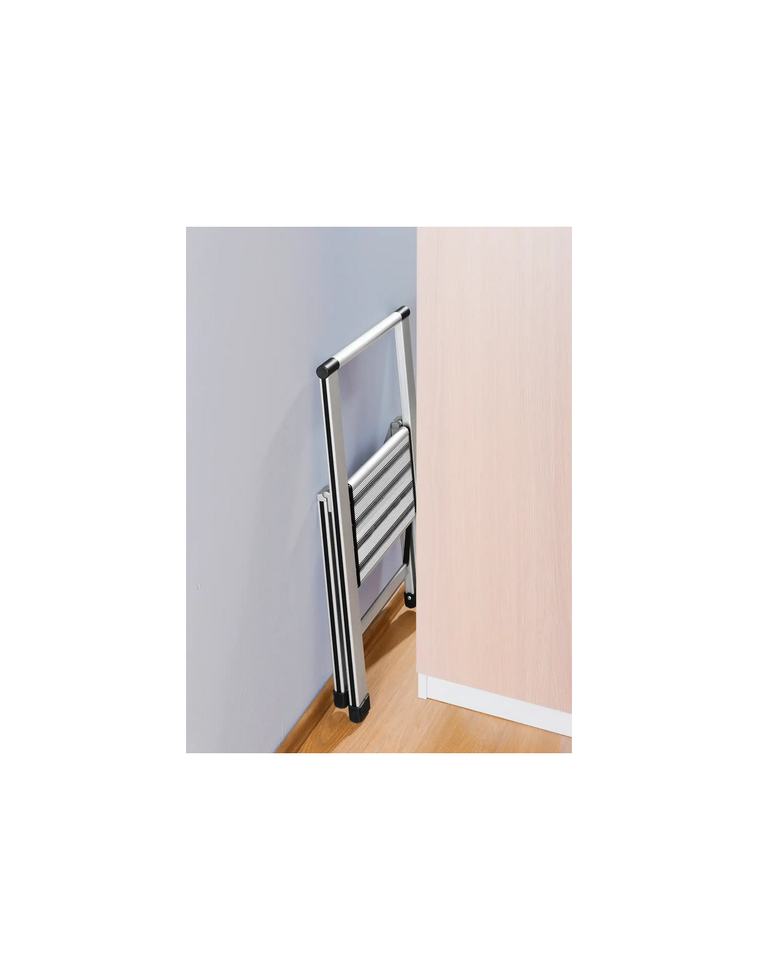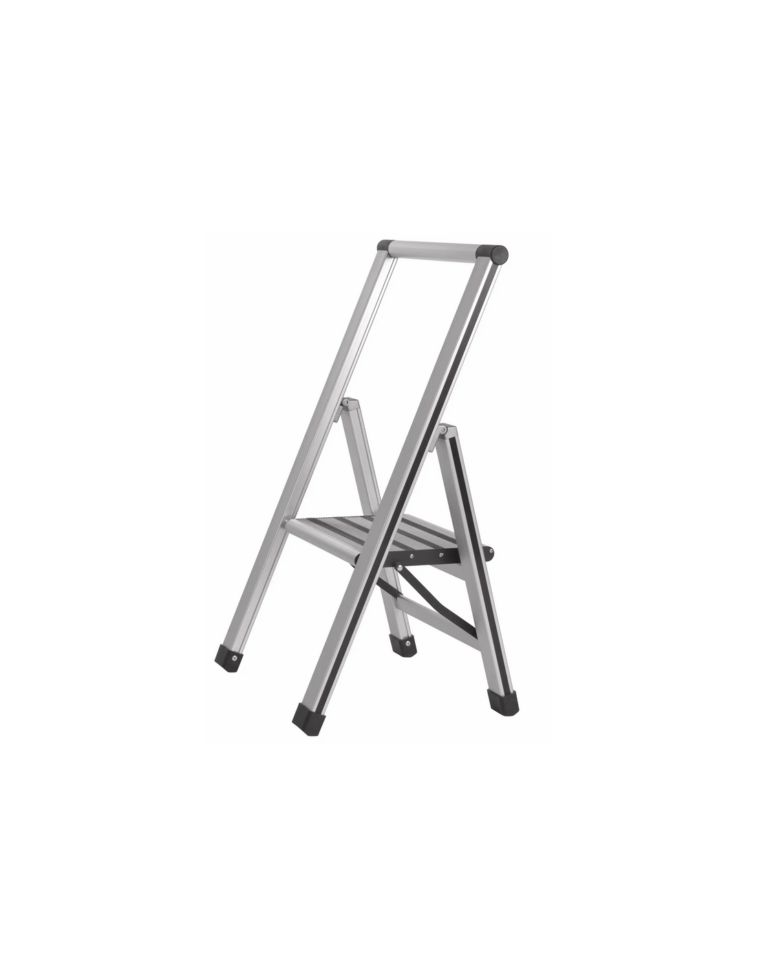 WENKO Trappestige udført i et solidt design af mat aluminium med anti-skrid. Stigen er foldbar og med trin 25 cm fra gulvet. Stigen måler 74 cm i højden.