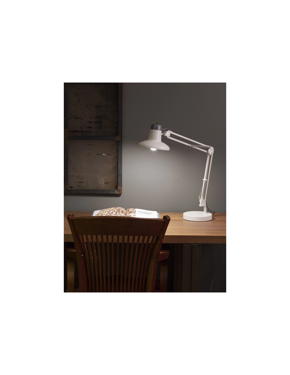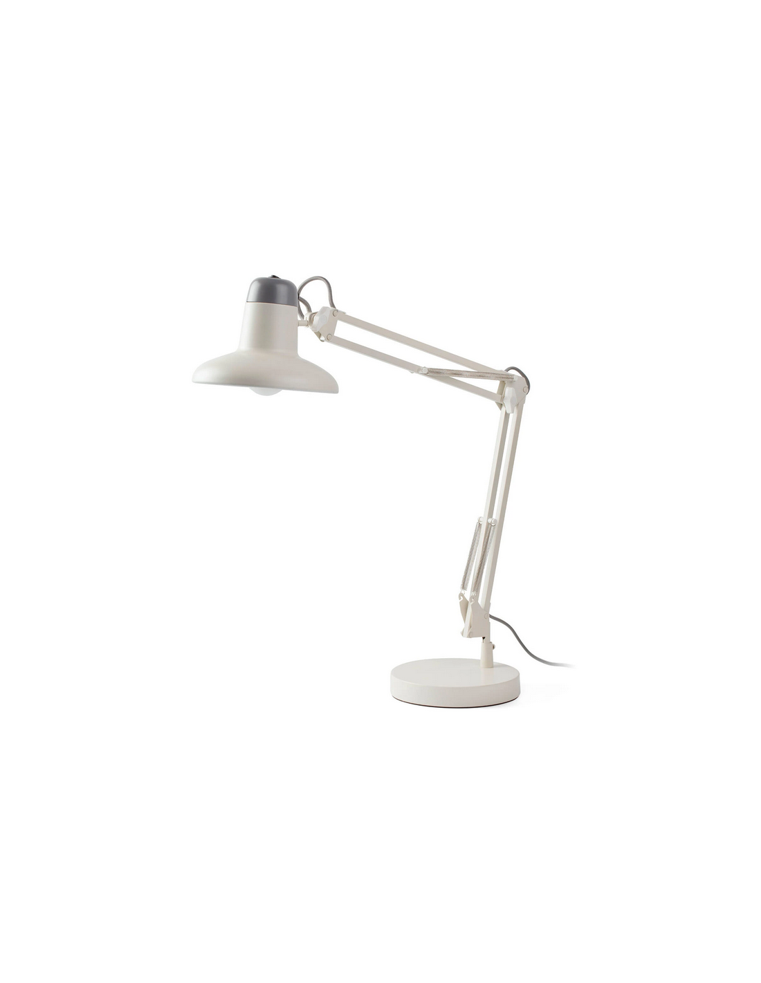 Skrivebordslampe udført i et moderne design, fremstillet i off-white lakeret metal. Lampen måler op til 57 cm i højden og anvender 1 x E14 lyskilde (Ekskl.). Lampen har 180 cm ledning.