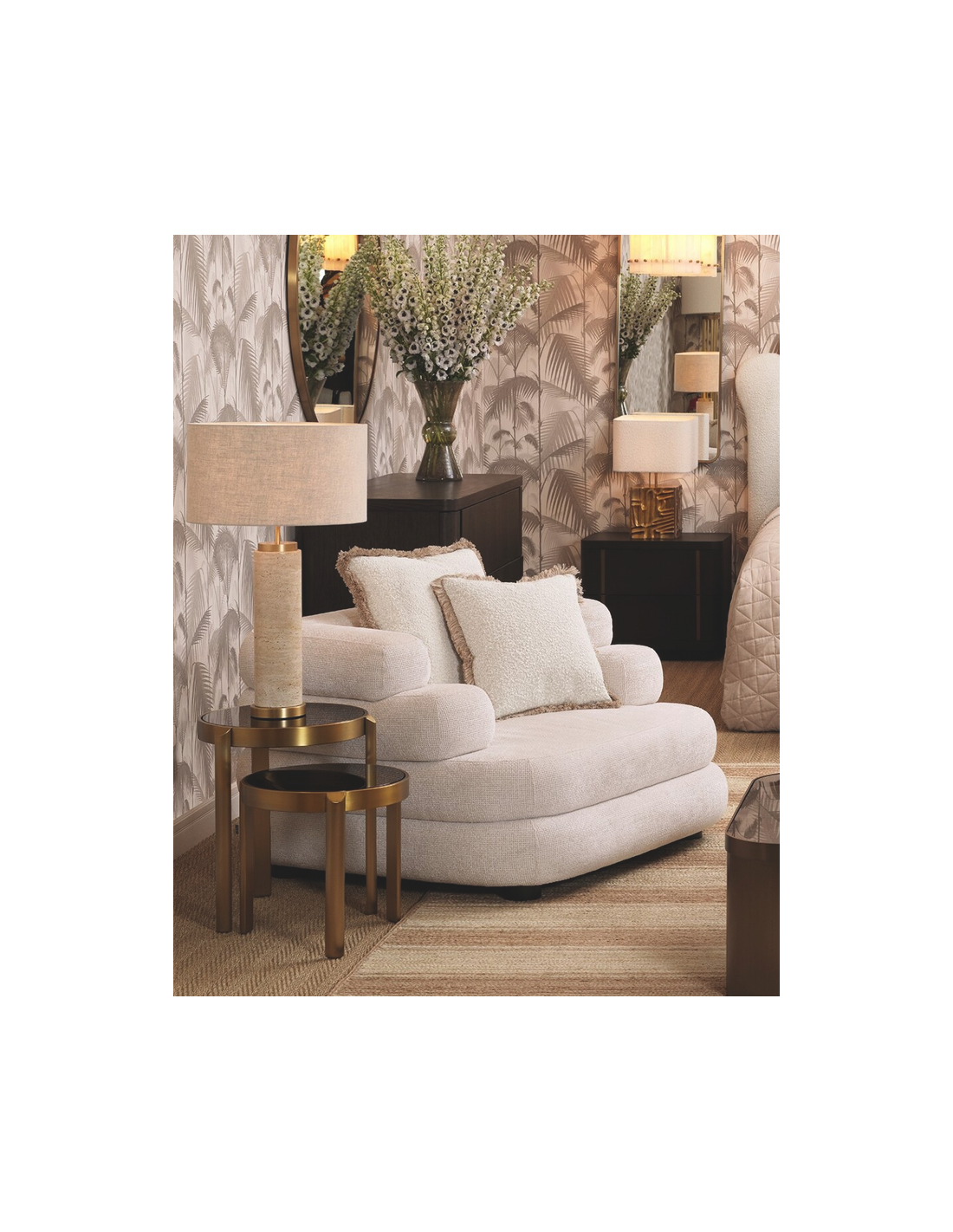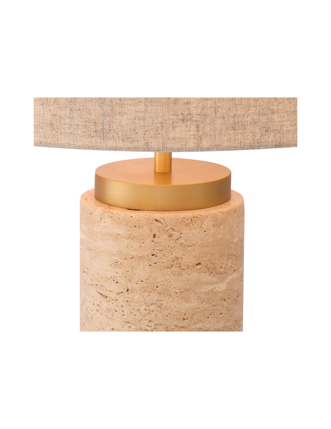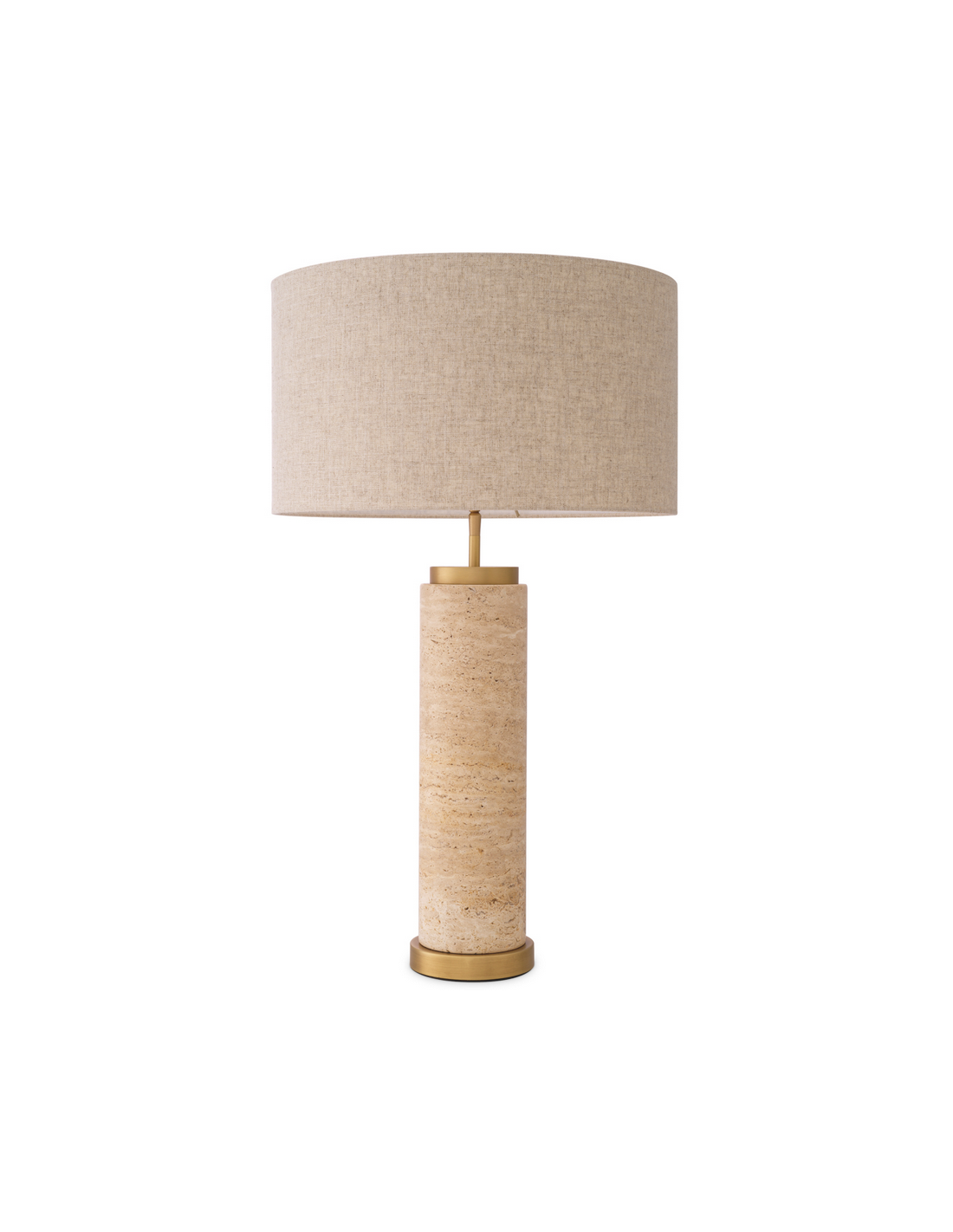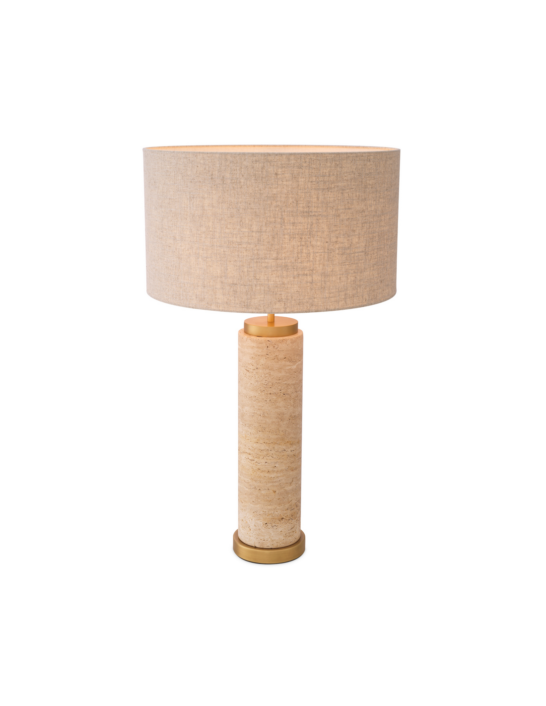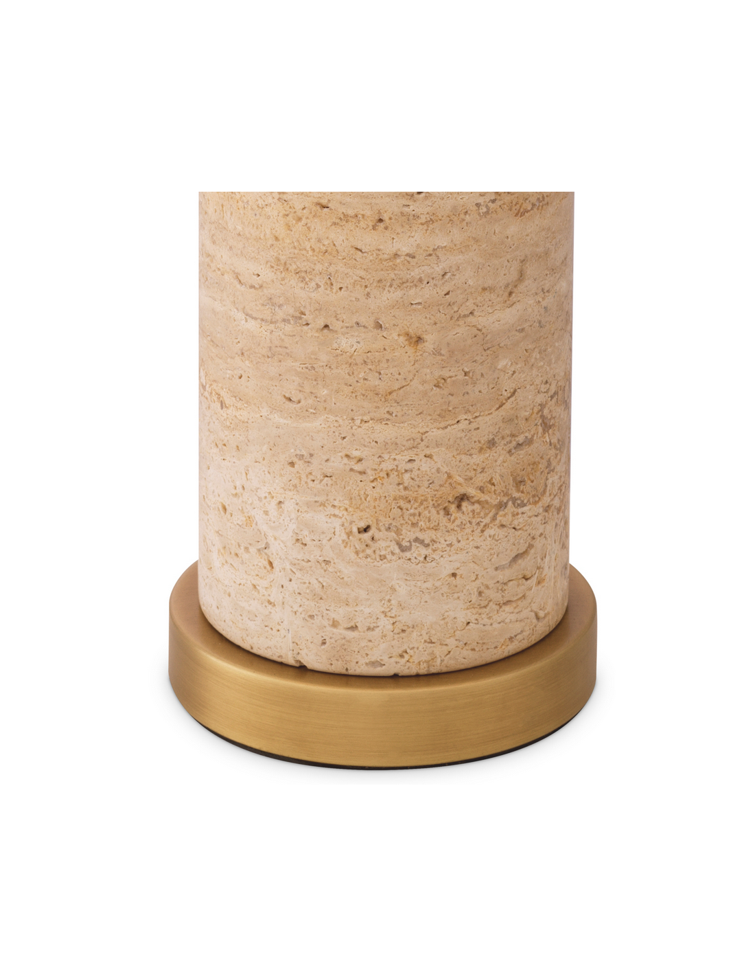 Eichholtz Lxry bordlampe i stål, travertin og polyester H75 x Ø45 cm 1 x E27 - Antik messing/Travertin/Naturbrun