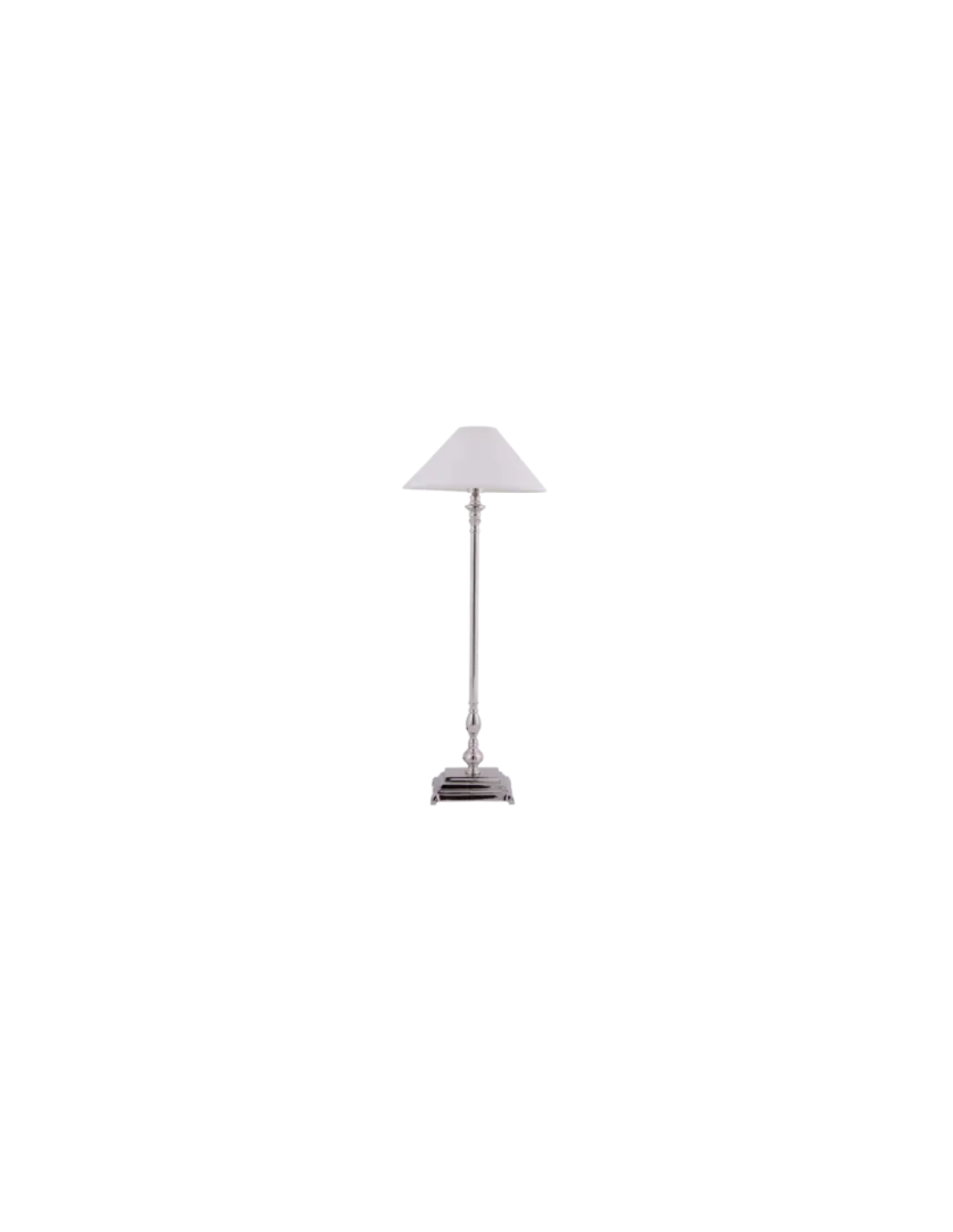 FLAMANT VINCI Bordlampe udført i et design af poleret nikkelfarvet aluminium og med skærm i off-white polyester. Bordlampen måler 70 cm i højden og anvender 1 x E27 lyskilde (Ekskl.). Skærmen måler 30 x 13 cm i bredde og dybde.
