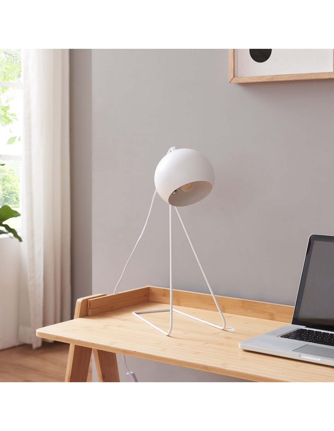 Bordlampe udført i et moderne design af hvidlakeret metal. Bordlampen måler 45 cm i højden og med ledningslængde på 180 cm.