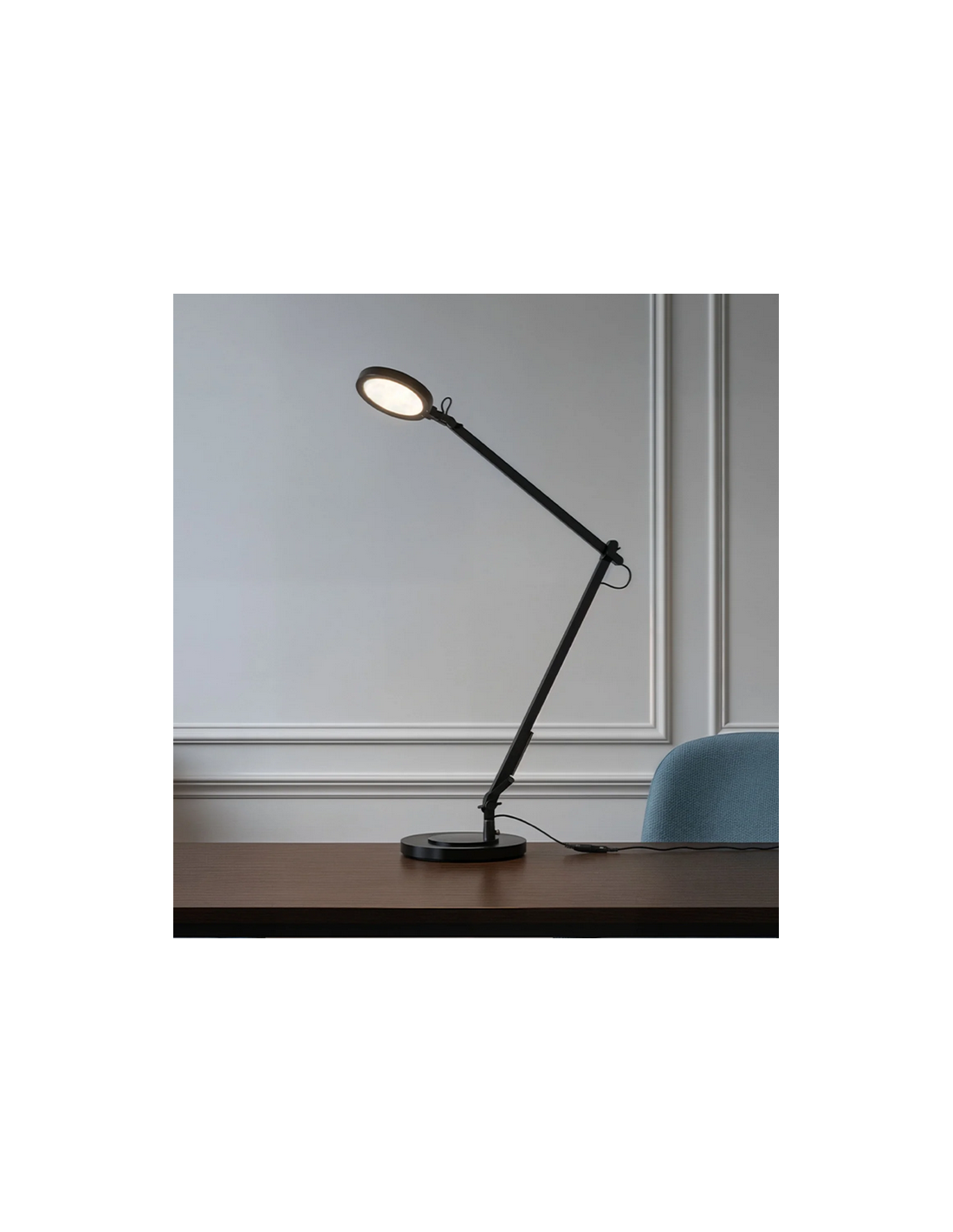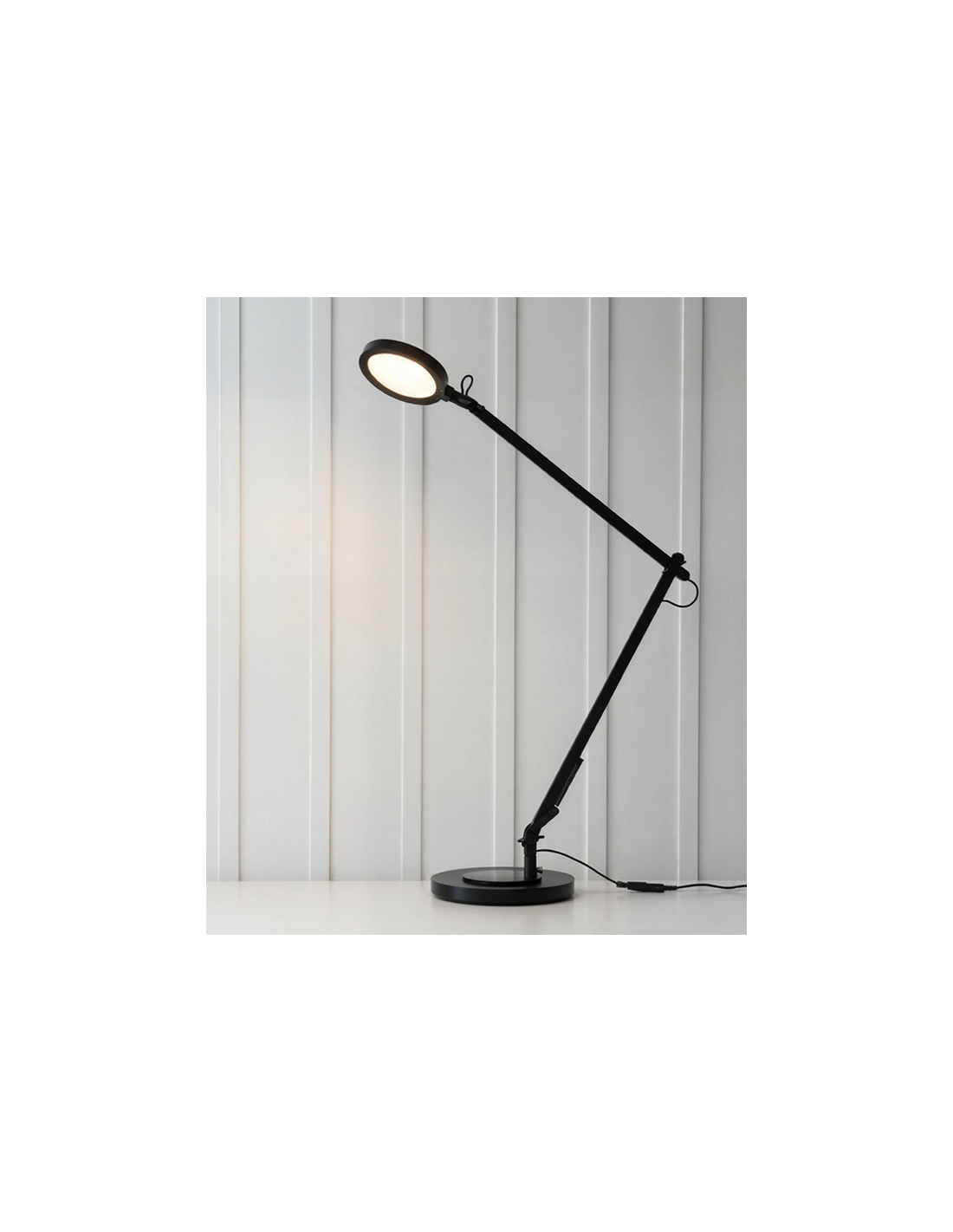 EMA Skrivebordslampe med dæmper, udført i et moderne stilrent design af sortlakeret metal og kunststof. Lampen har flexarm og anvender 10W LED lyskilde (Inkl.).