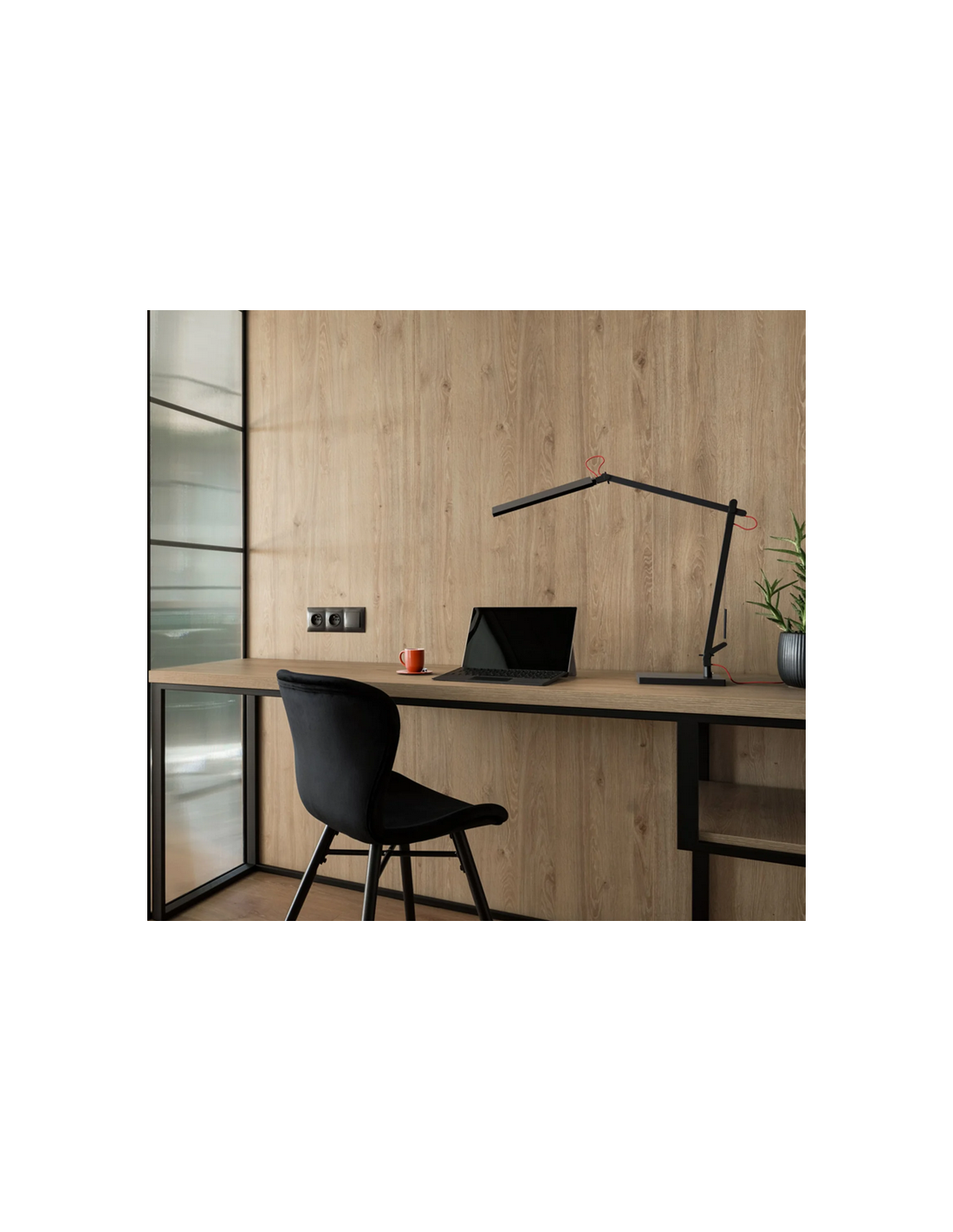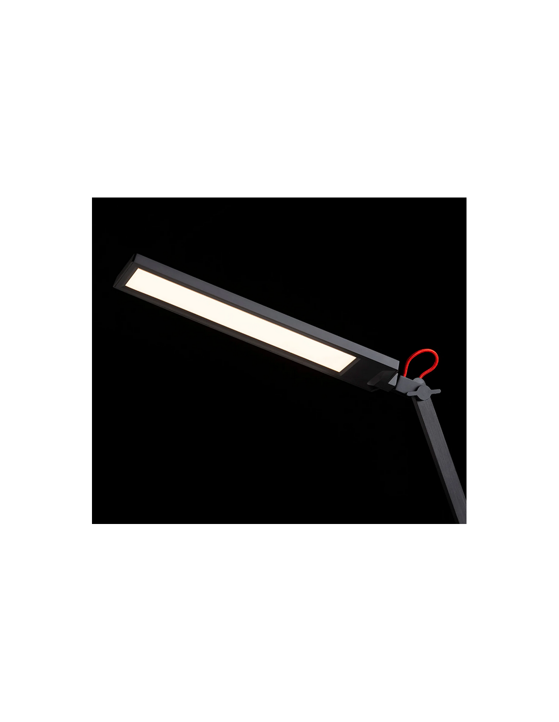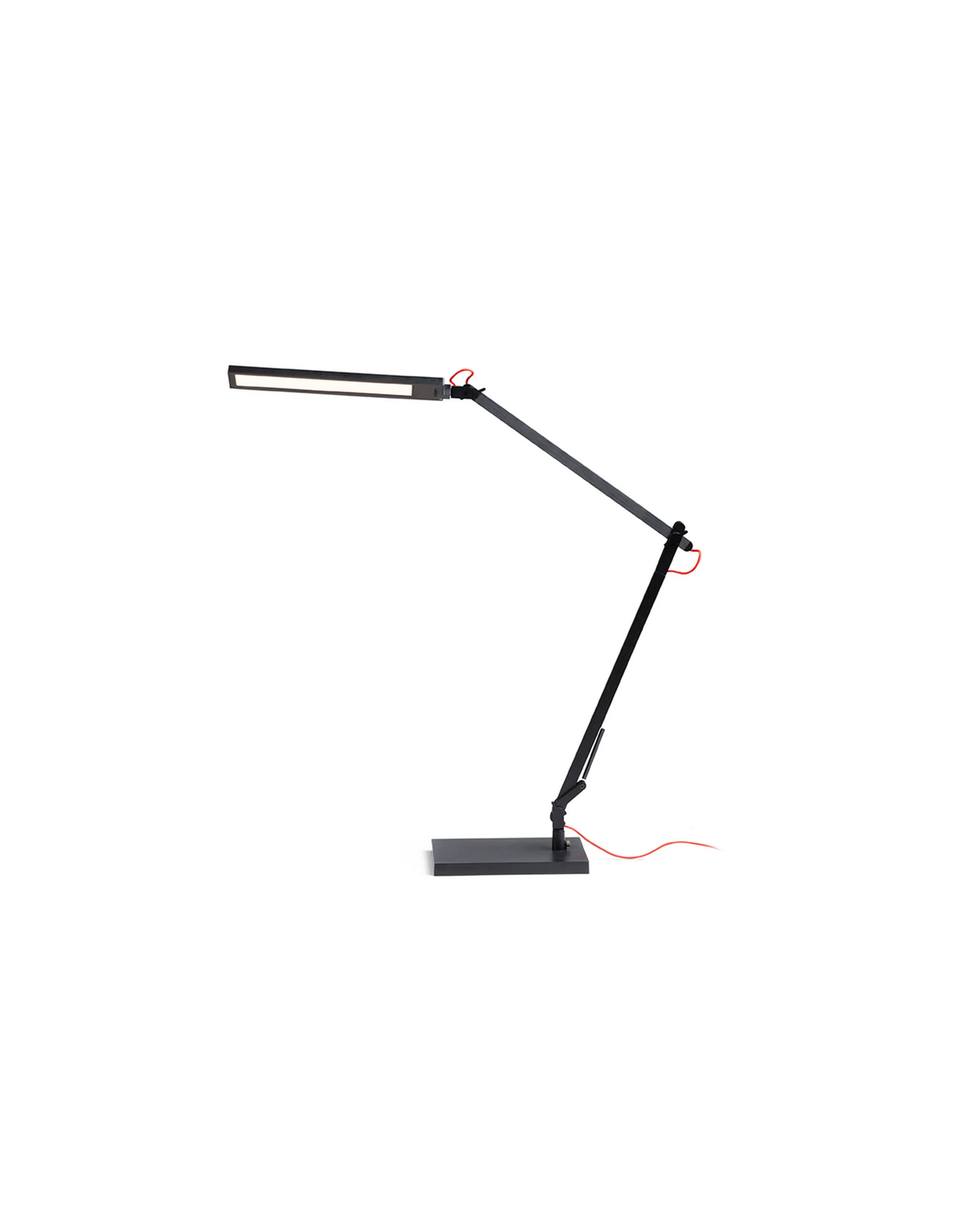 NORMA Skrivebordslampe med dæmper, udført i et moderne stilrent design af sortlakeret metal og kunststof med rødorange ledning. Lampen har flexarm og anvender 10W LED lyskilde (Inkl.).