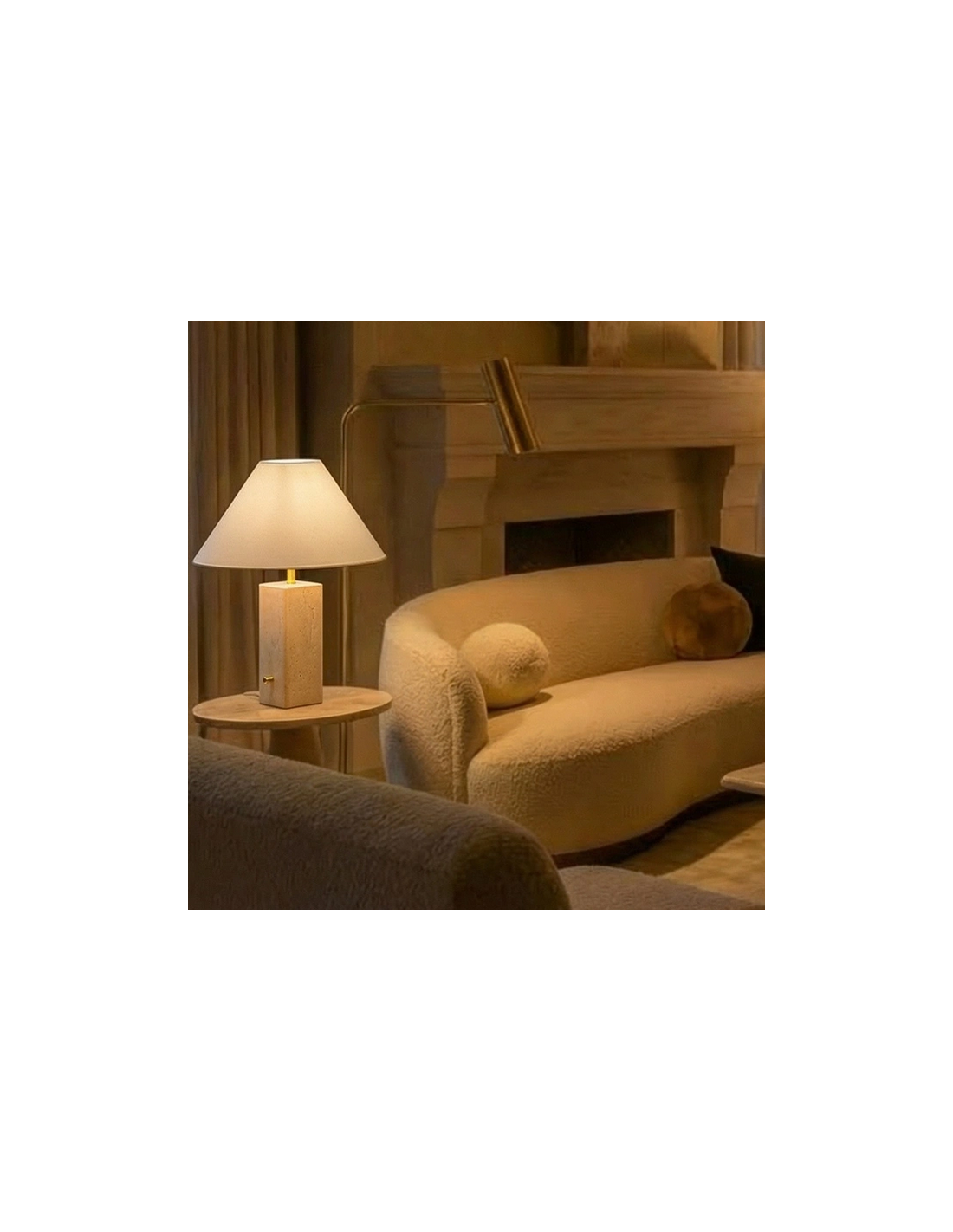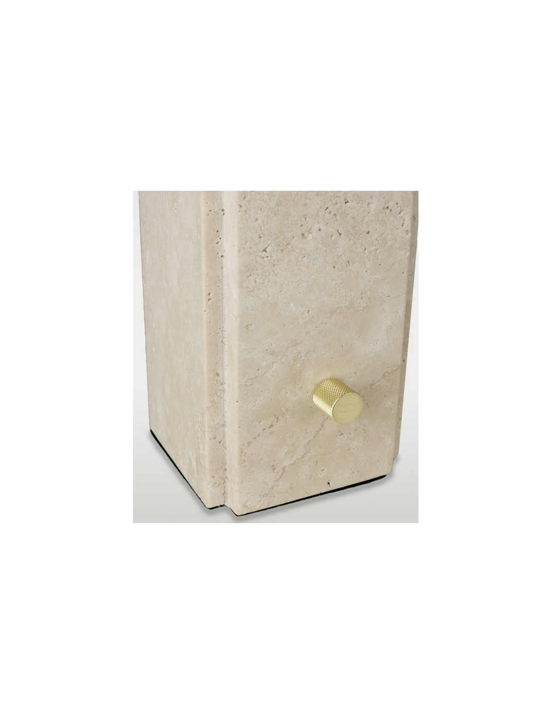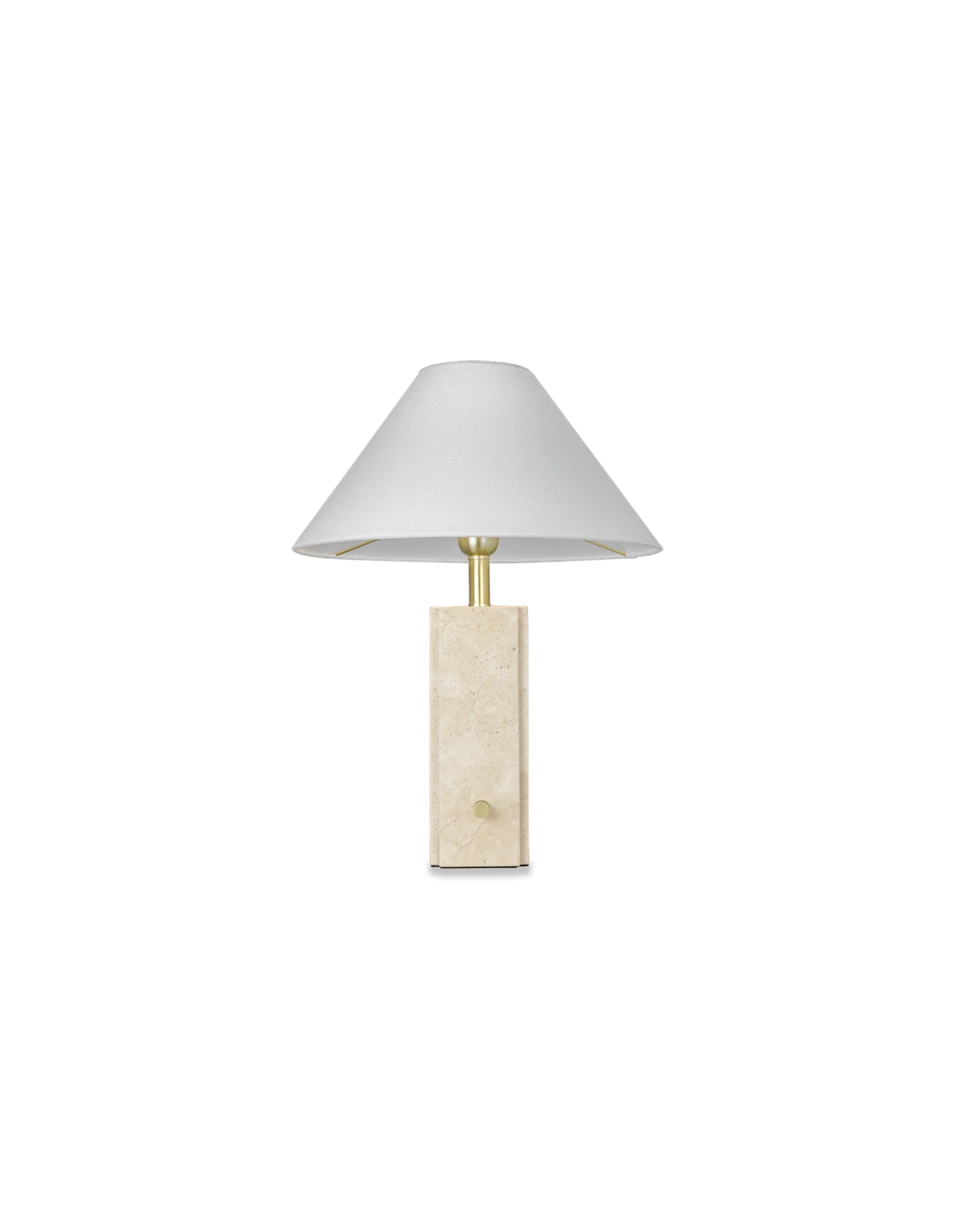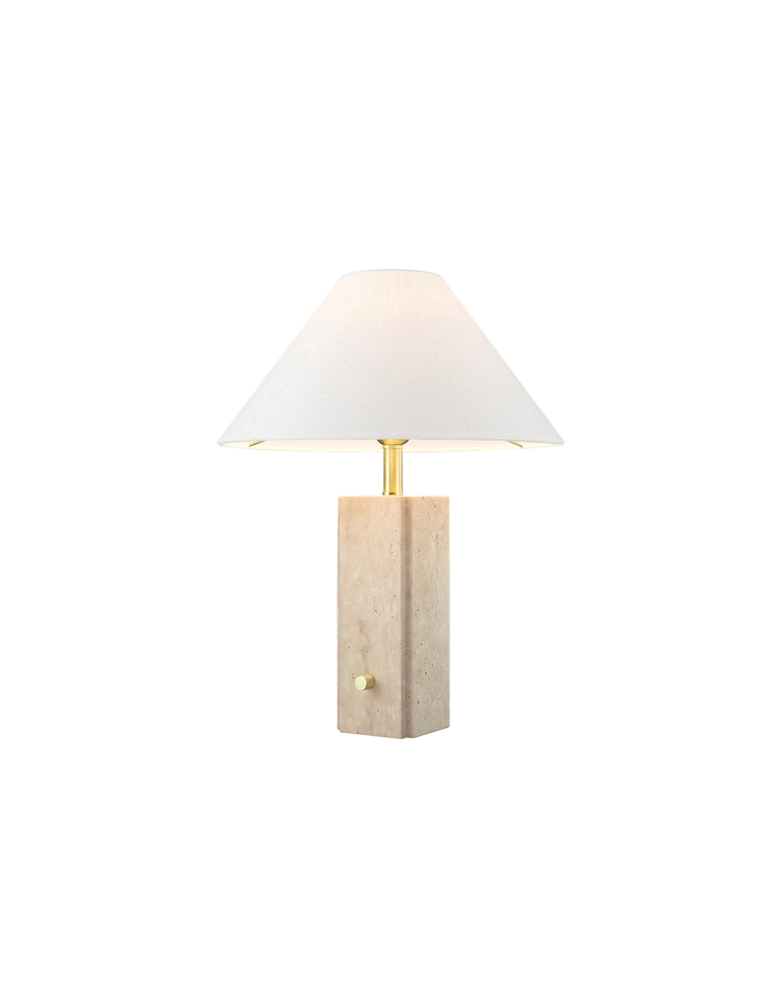 ORLEANS Bordlampe i travertin, stål og polyester H50 cm 1 x E27 - Travertin/Børstet messing/Hvid