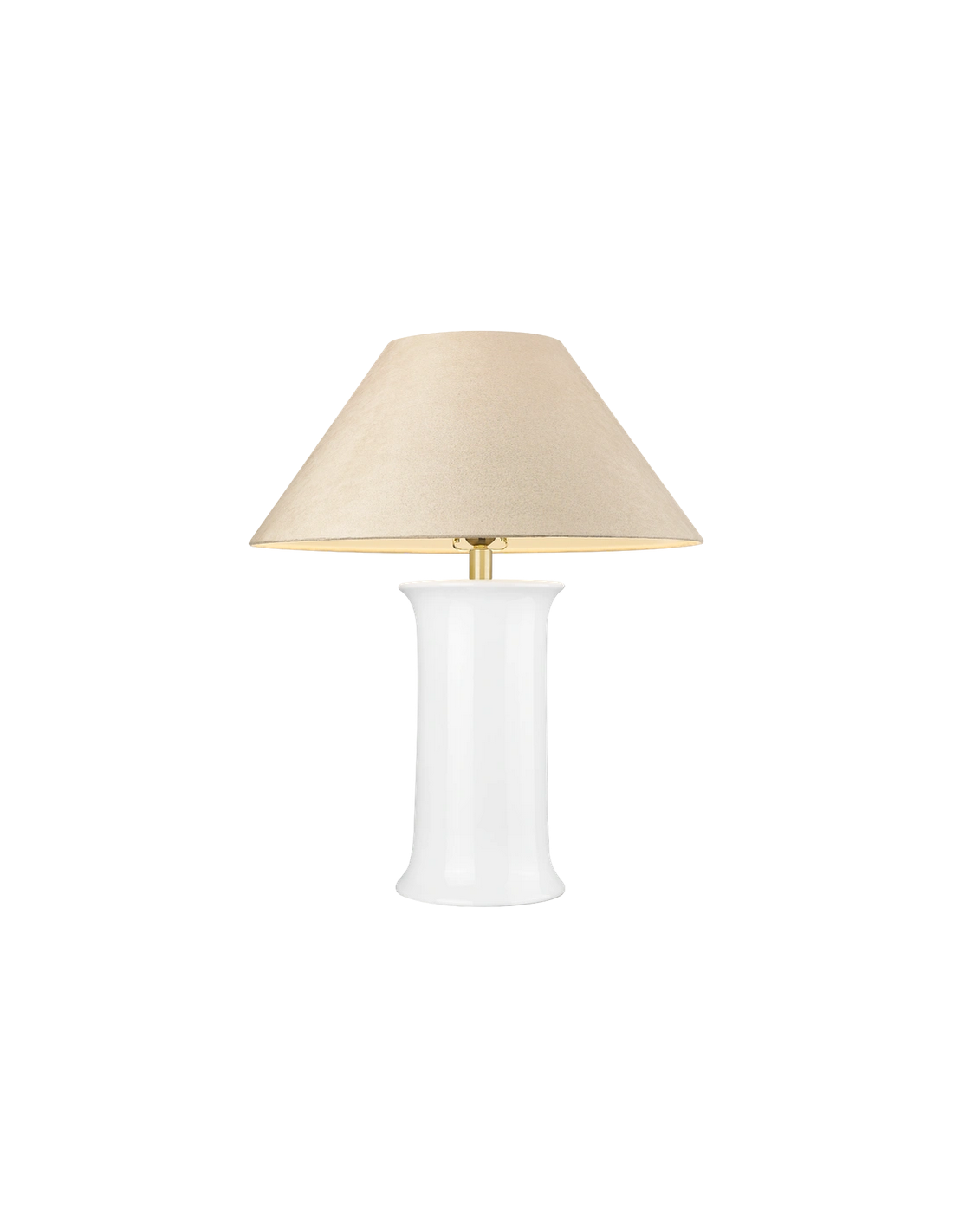 MONROE Bordlampe i keramik, stål og polyester H65 cm 1 x E27 - Hvid/Børstet messing/Taupe